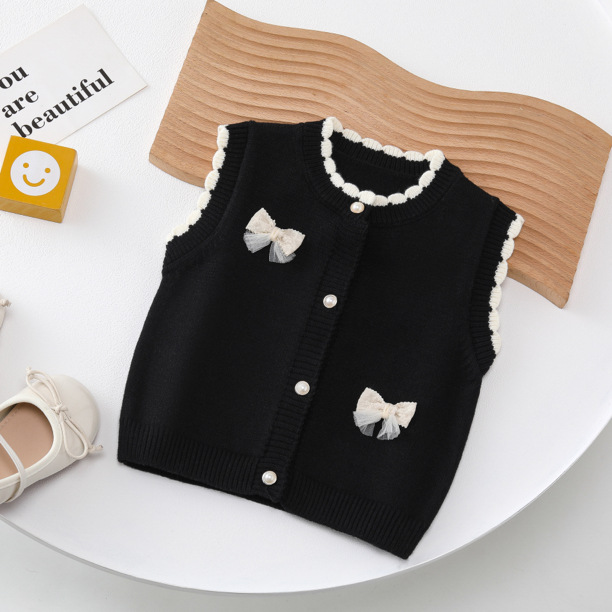 5531 프랑스 스타일 아기 소녀 봄, 가을 민소매 다목적 스웨터 니트 조끼 카디건 아동 스웨터 조끼 유행스토어 가기