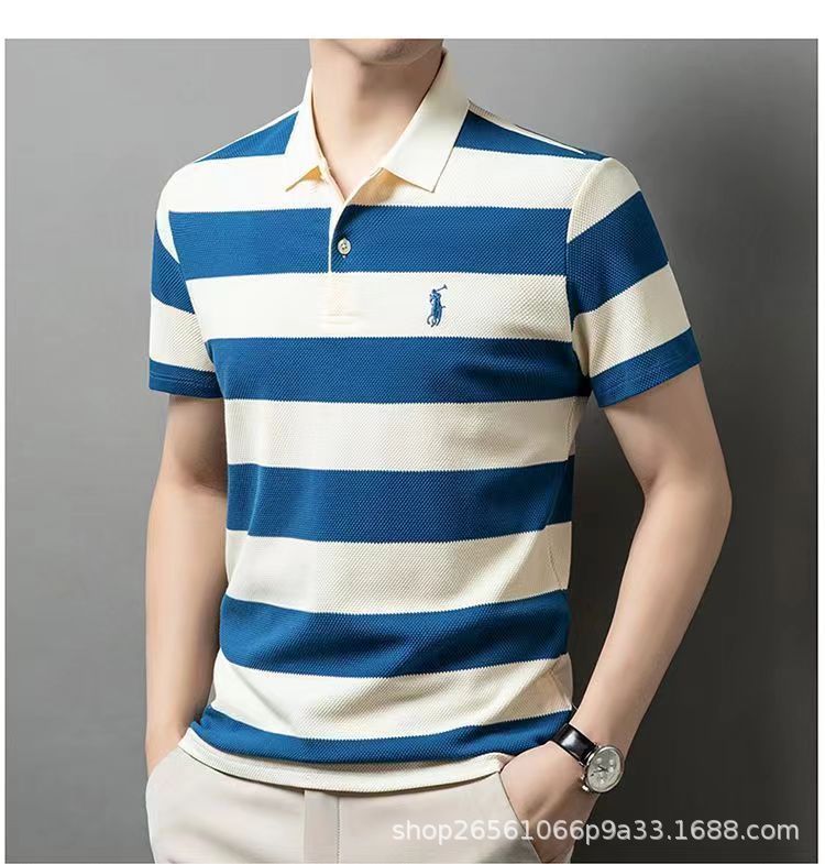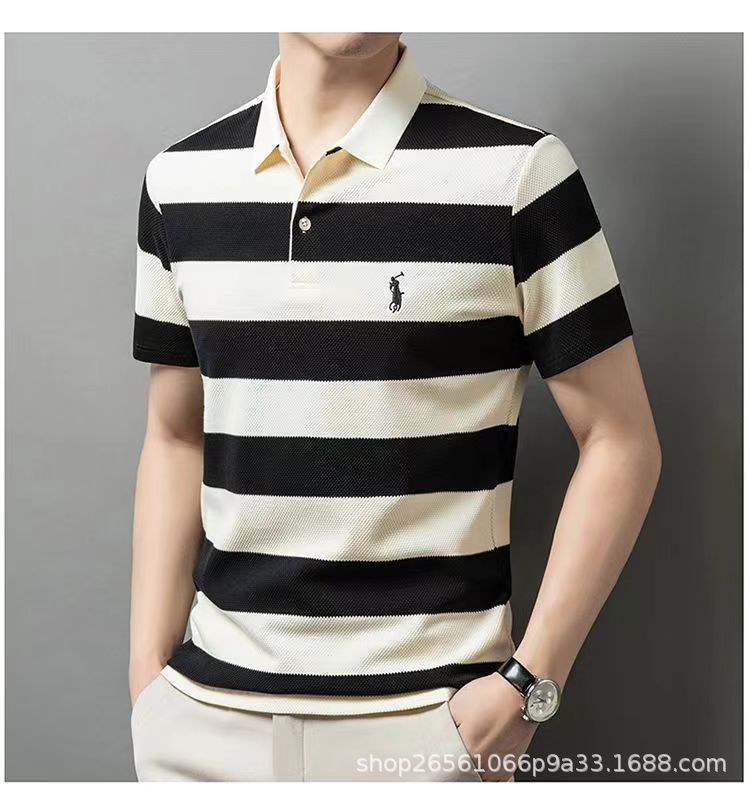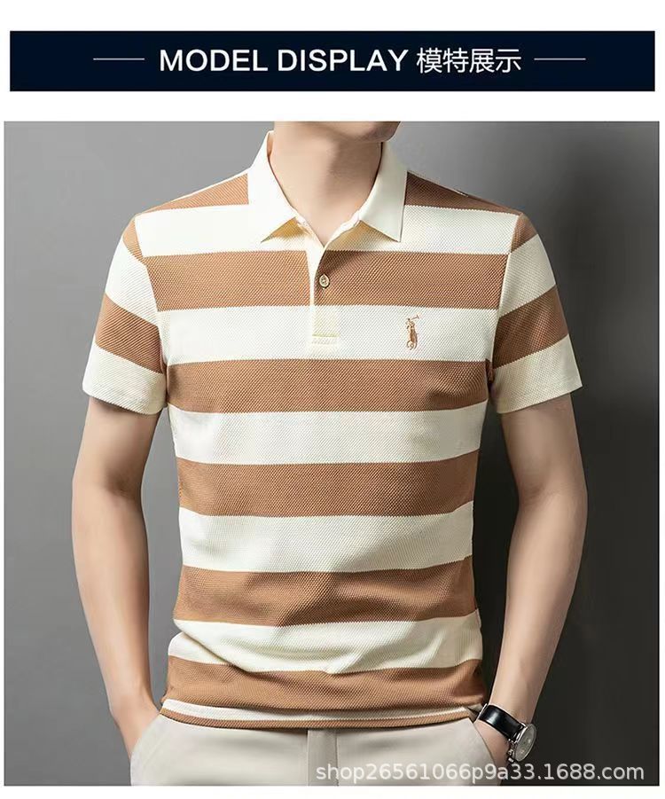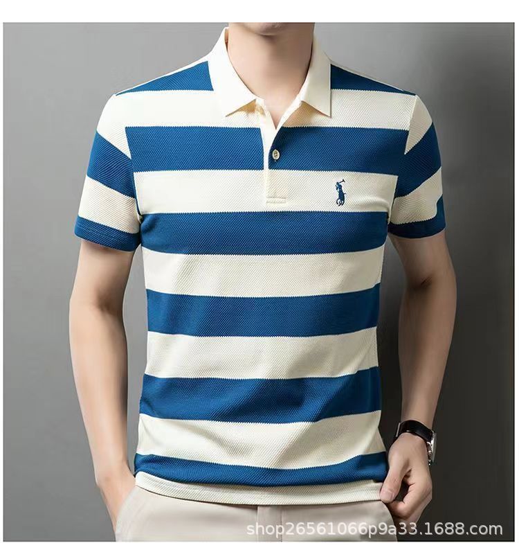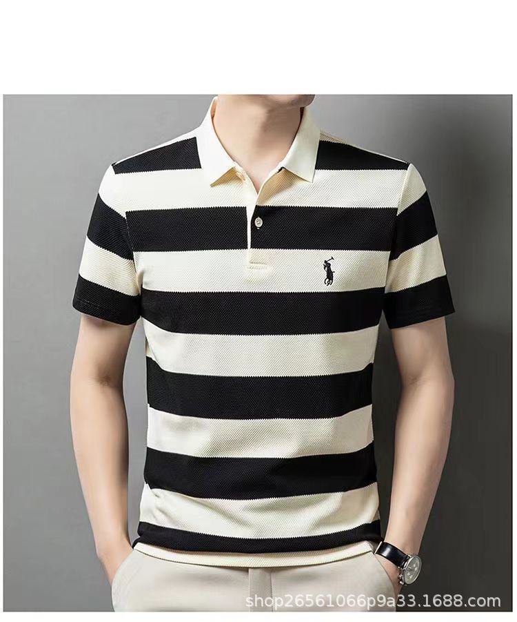 POLO 셔츠 남자 여름 새로운 반팔 티셔츠 스트라이프 캐주얼 올 매치 탑 젊은 및 중년 패션 쇼트 T 남성