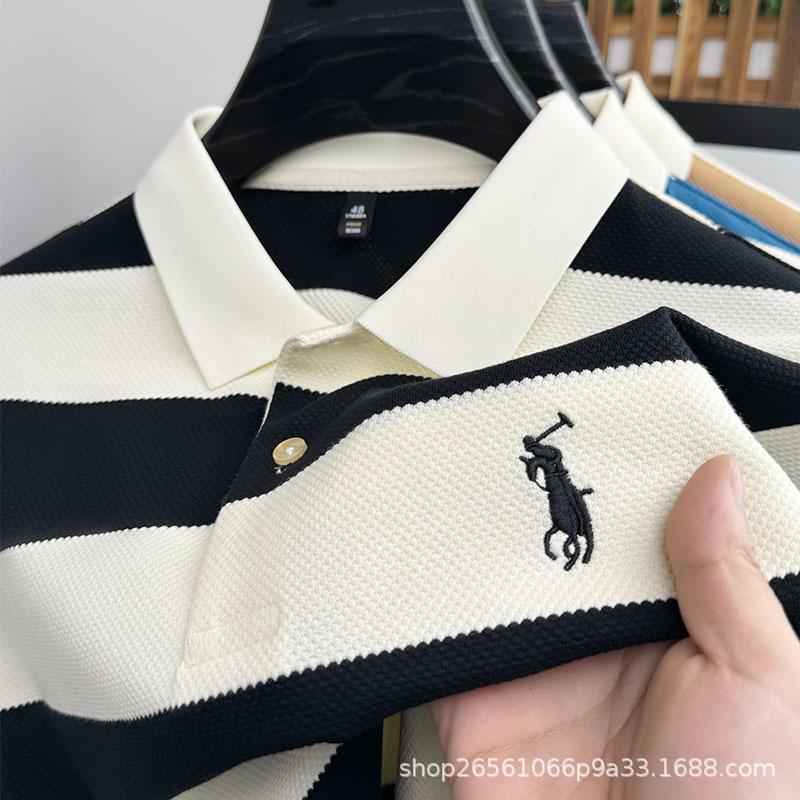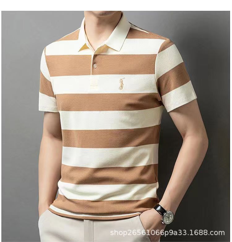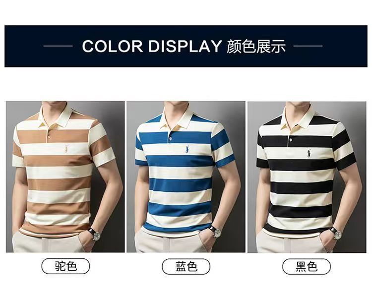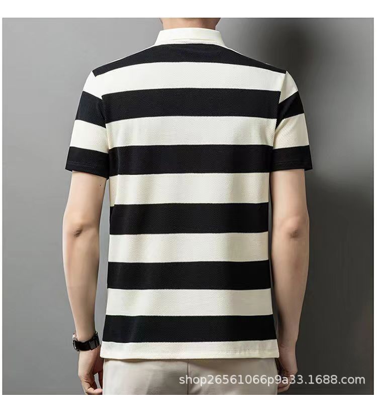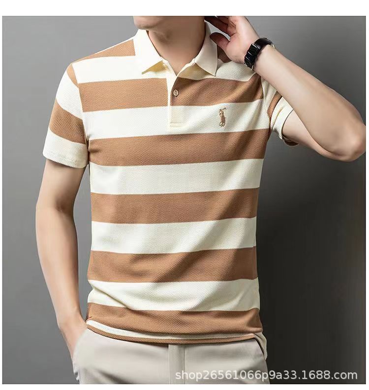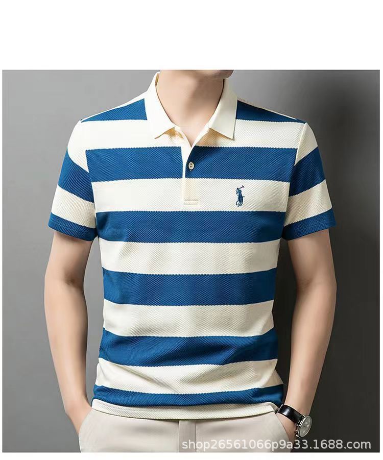 POLO 셔츠 남자 여름 새로운 반팔 티셔츠 스트라이프 캐주얼 올 매치 탑 젊은 및 중년 패션 쇼트 T 남성
