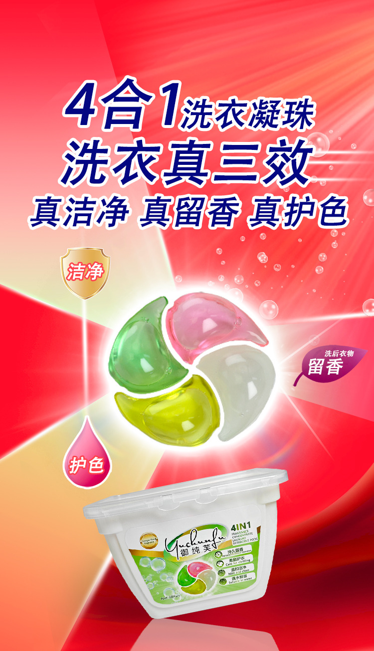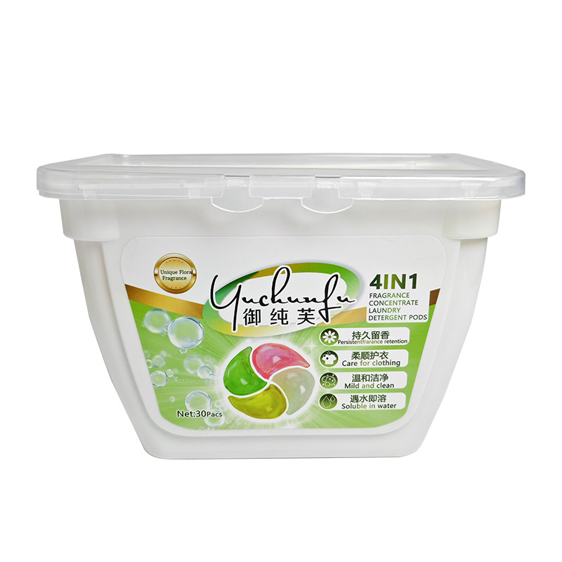 Yuchunfu 농축 4 챔버 세탁 비즈는 청소, 오염 제거 및 향기 유지를 제공합니다. 국경 간 영어 버전 4-in-1 세탁 비즈 제조업체