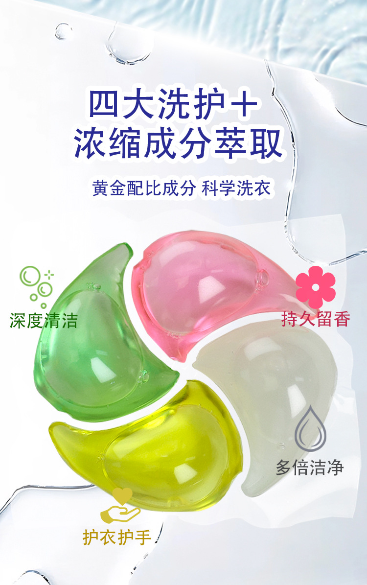 Yuchunfu 농축 4 챔버 세탁 비즈는 청소, 오염 제거 및 향기 유지를 제공합니다. 국경 간 영어 버전 4-in-1 세탁 비즈 제조업체스토어 가기