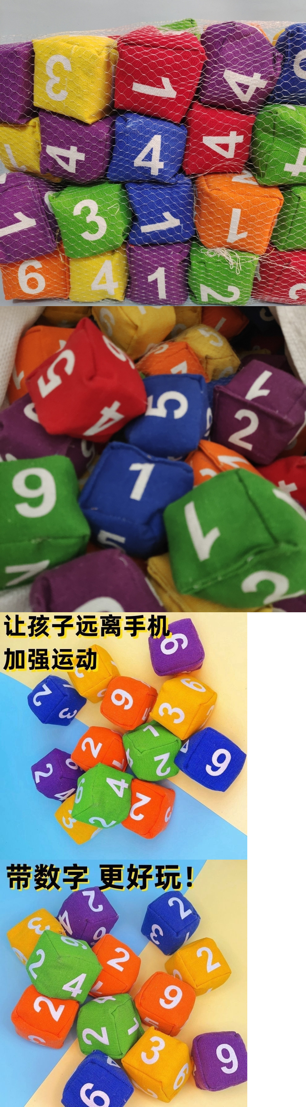 • 색상 혼합 및 일치 6.5* 6.5cm - 로프 샌드백이 없는 40개 숫자로 구성된 대형 가방 2개