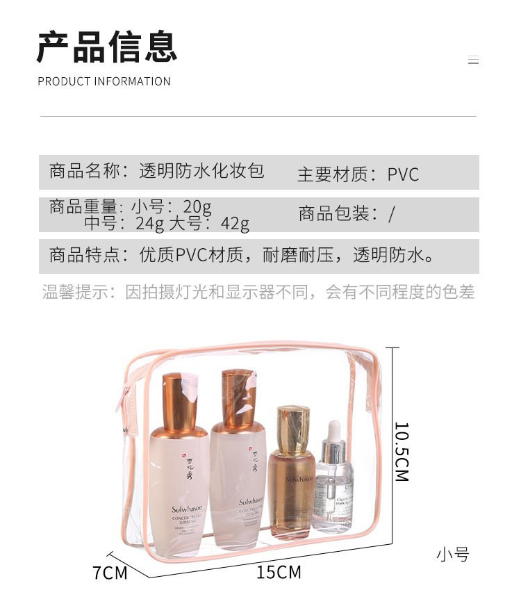 재고 PVC 대용량 방수 여행 화장실 가방 화장품 가방 휴대용 지퍼 3 조각 보관 가방스토어 가기