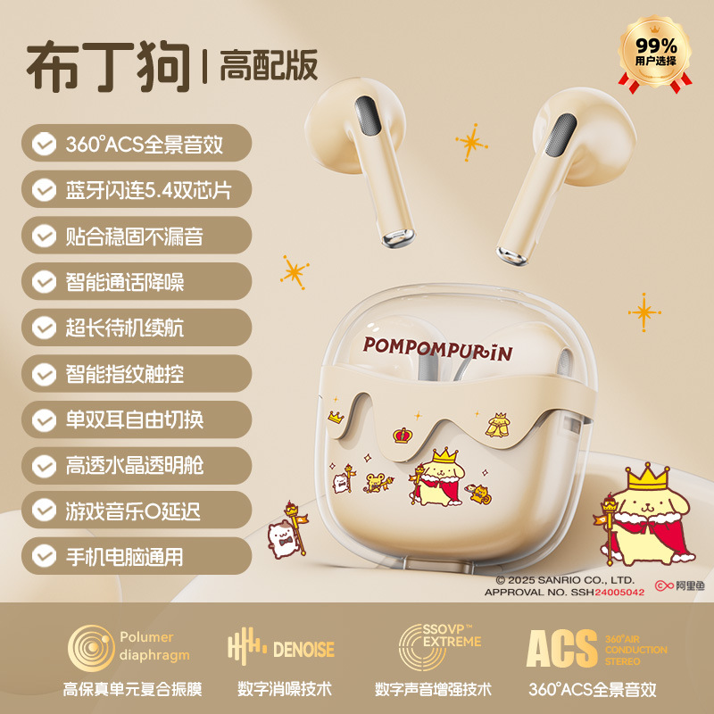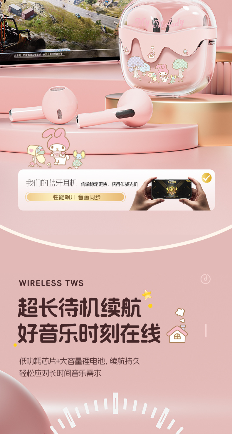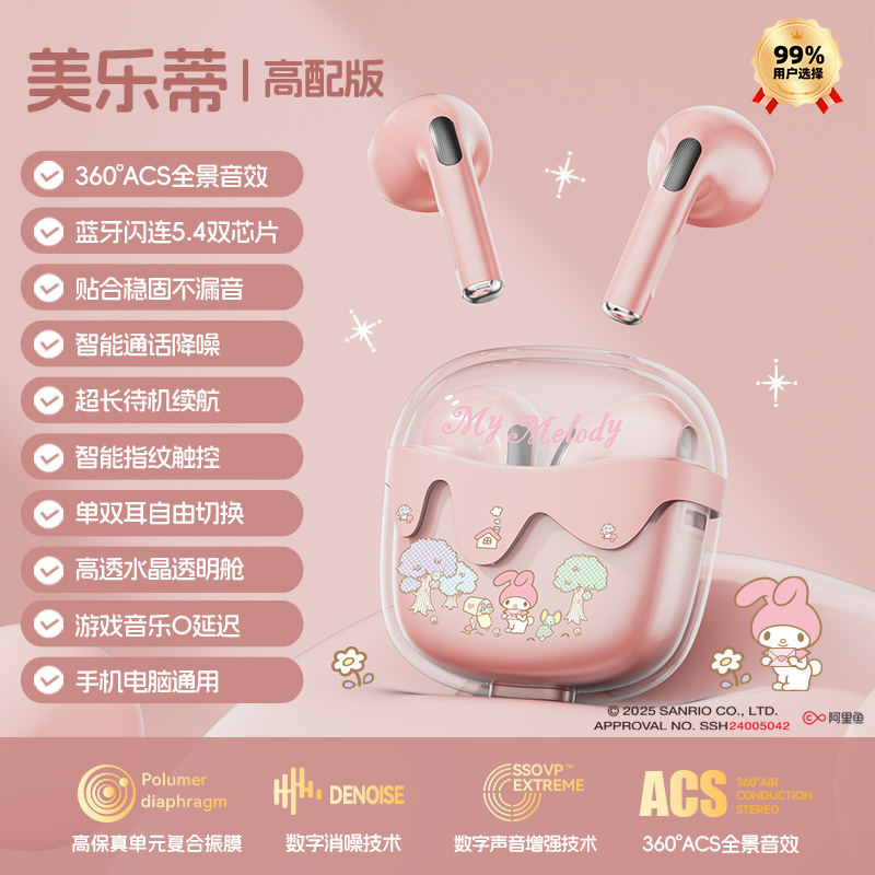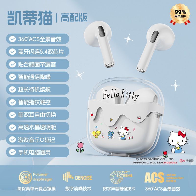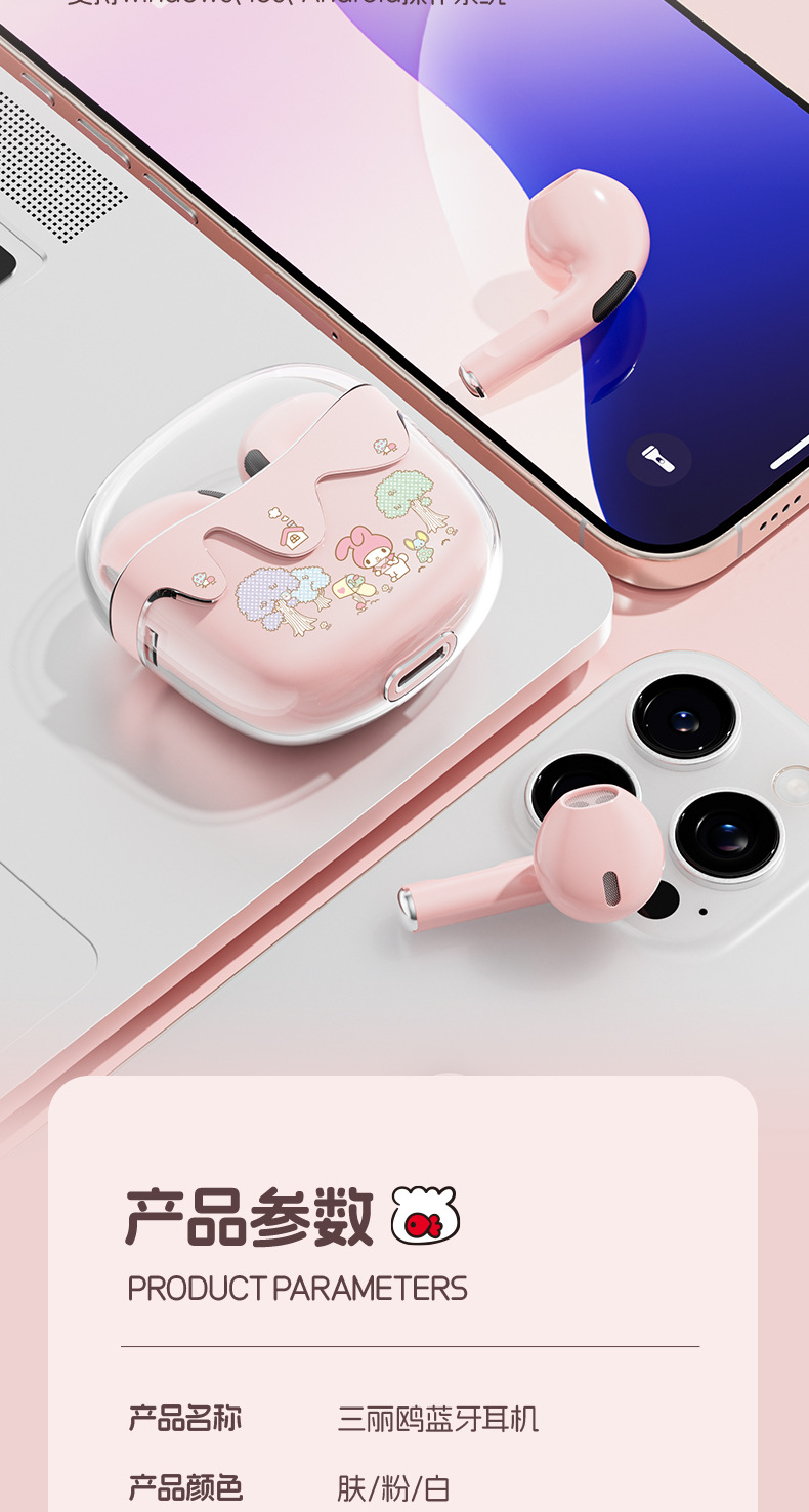 새로운 산리오 무선 블루투스 헤드셋 투명 Cang 귀여운 만화 소녀 높은 가치의 장수 G07 선물스토어 가기