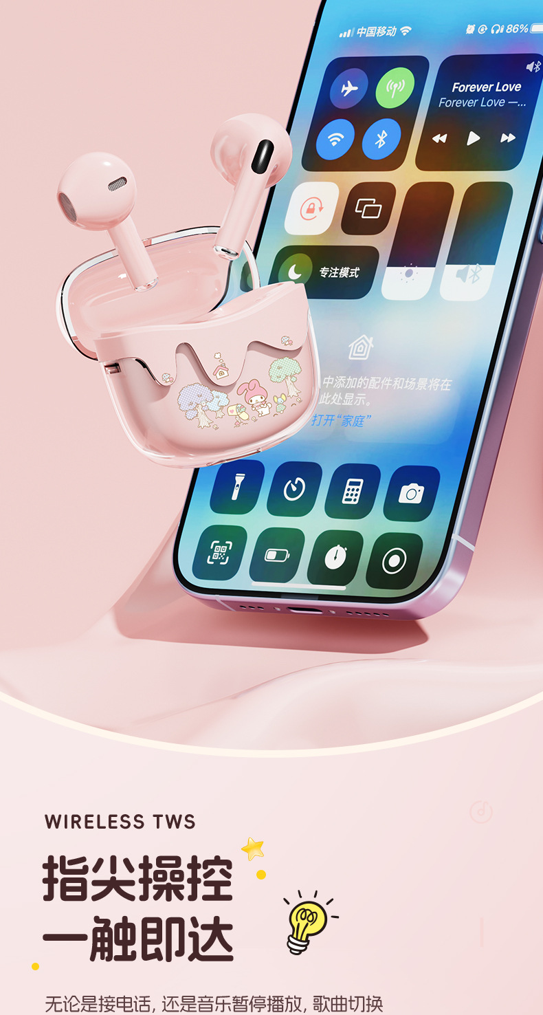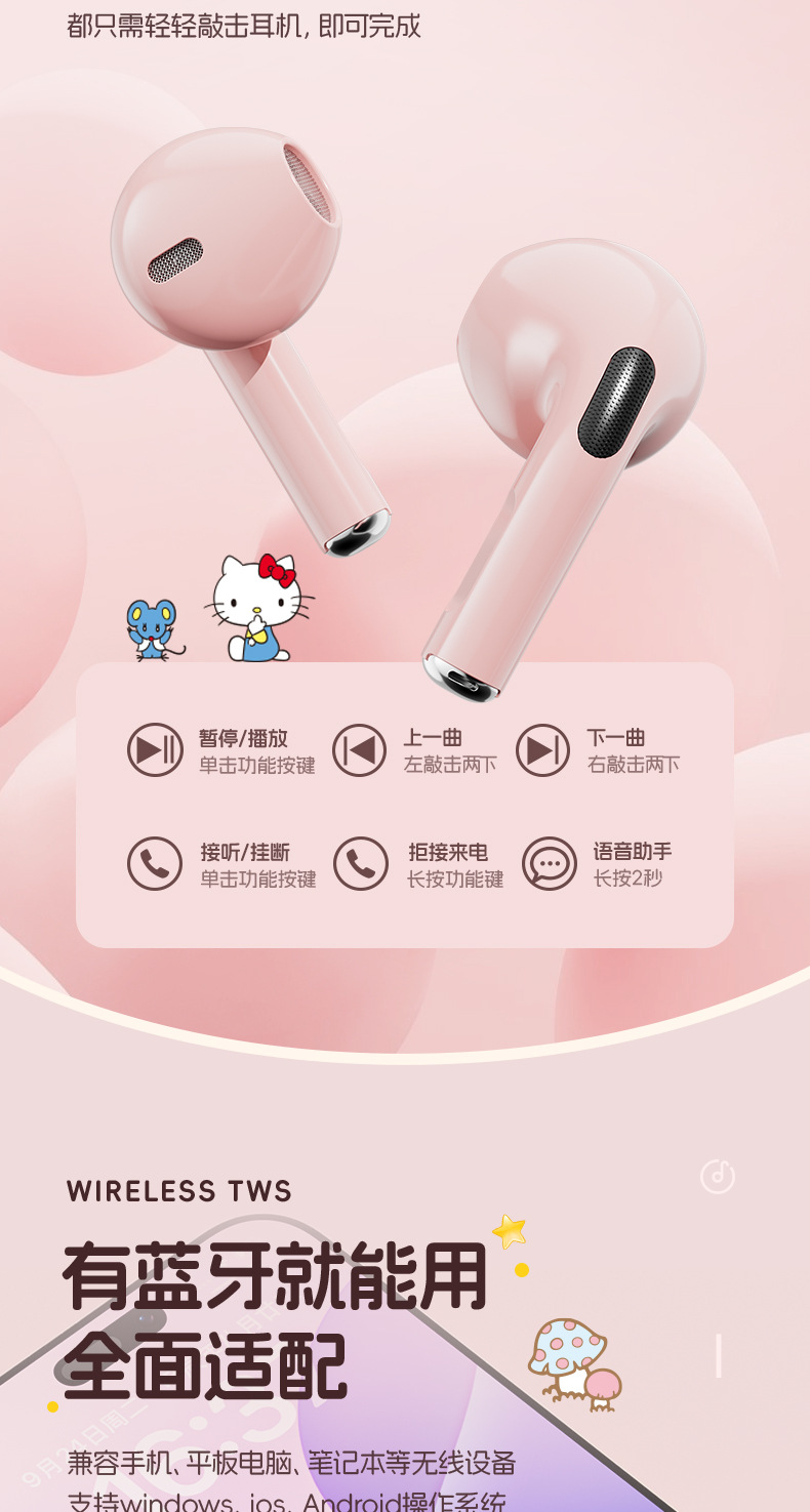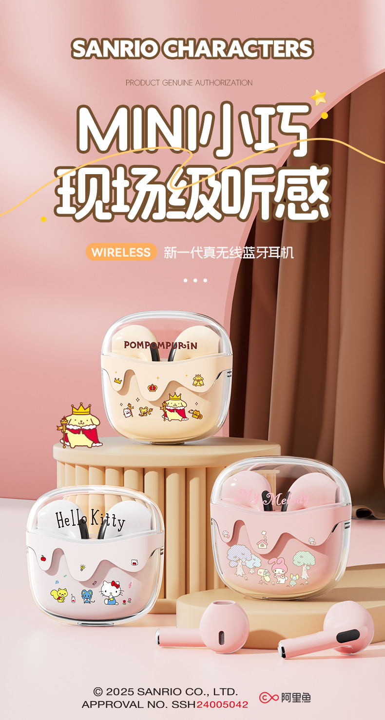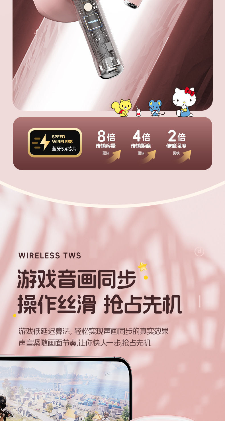 새로운 산리오 무선 블루투스 헤드셋 투명 Cang 귀여운 만화 소녀 높은 가치의 장수 G07 선물스토어 가기