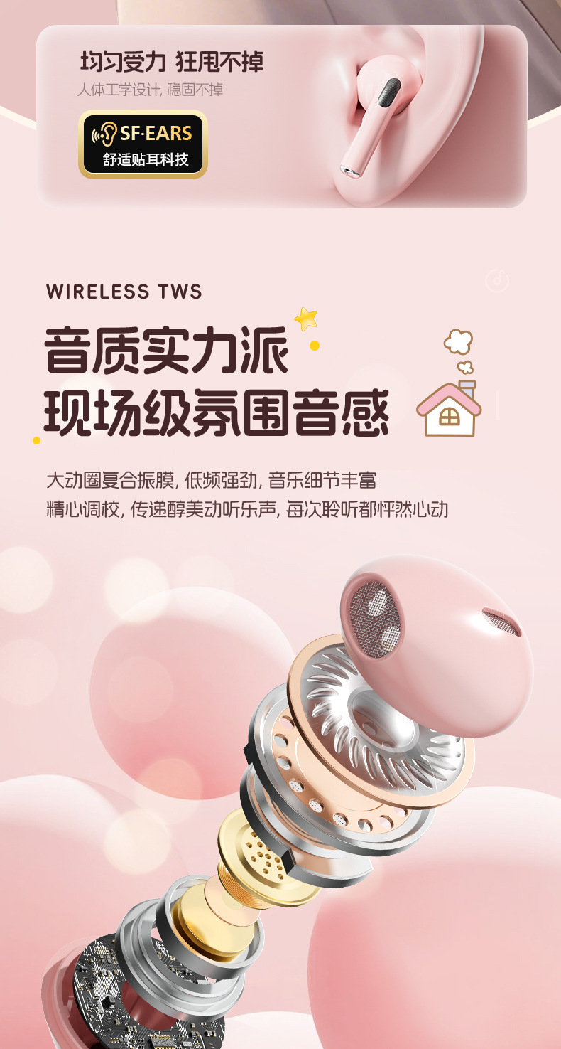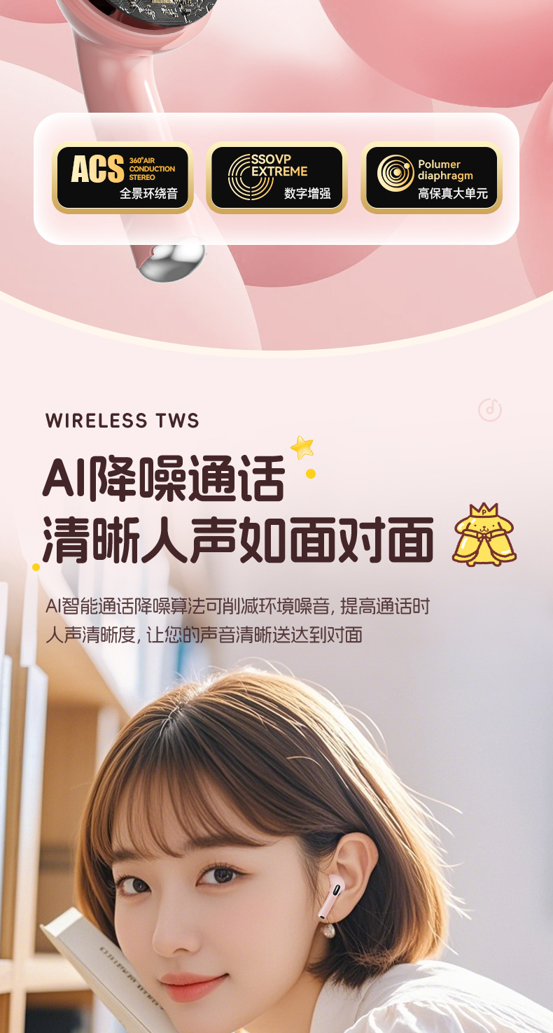 새로운 산리오 무선 블루투스 헤드셋 투명 Cang 귀여운 만화 소녀 높은 가치의 장수 G07 선물