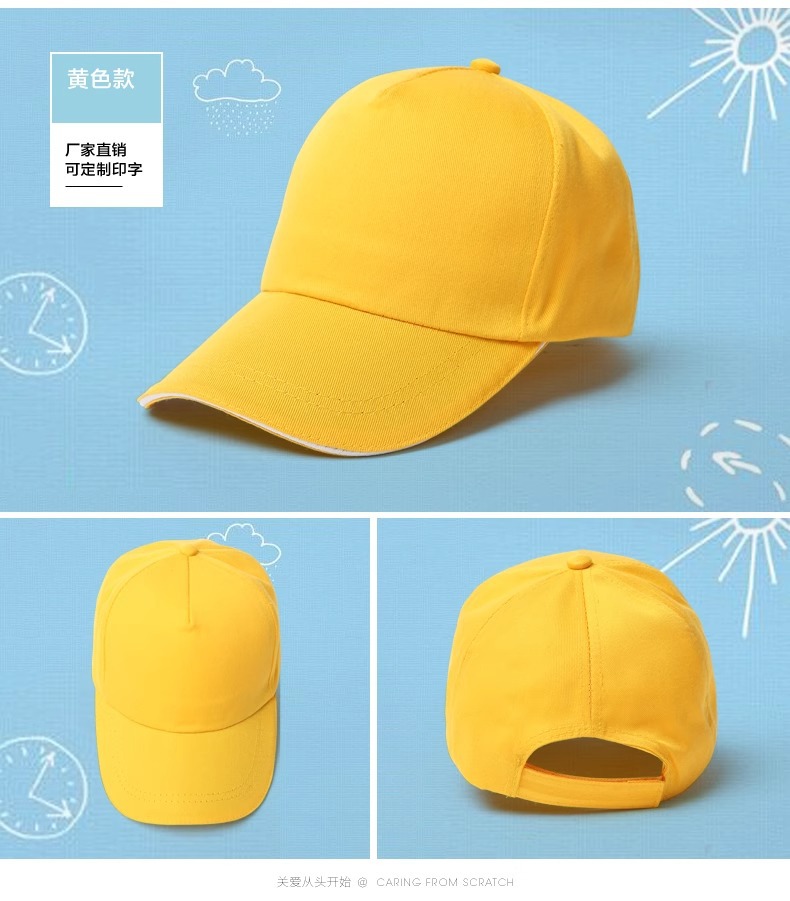 어린이 작은 노란색 모자 맞춤형 로고 피크 캡 초등학교 클래스 그룹 모자 인쇄 유치원 야구 메쉬 모자스토어 가기