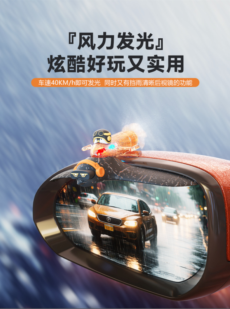风力发光雨眉后视镜挡雨眉汽车防雨神器倒车镜反光遮雨板用品通用