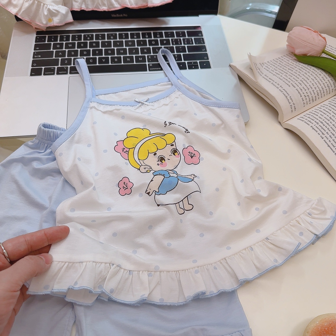 아기 어린이 여름 슬링 세트 Lyocell Tens 레이스 걸스 귀여운 공주 잠옷
