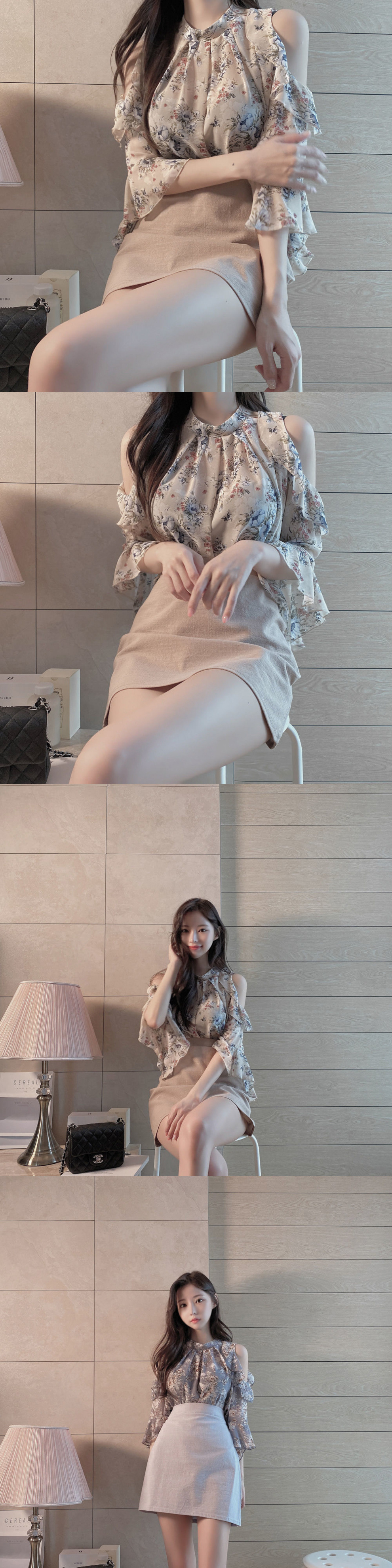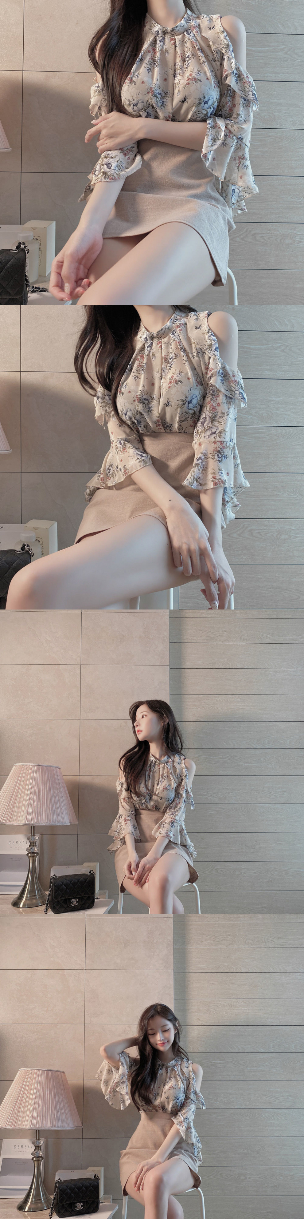 뚱뚱한 여자를 위한 플러스 사이즈 여름 프렌치 플로럴 러플 오프 숄더 쉬폰 셔츠, 루즈하고 활용도가 높은 오프 숄더 셔츠스토어 가기