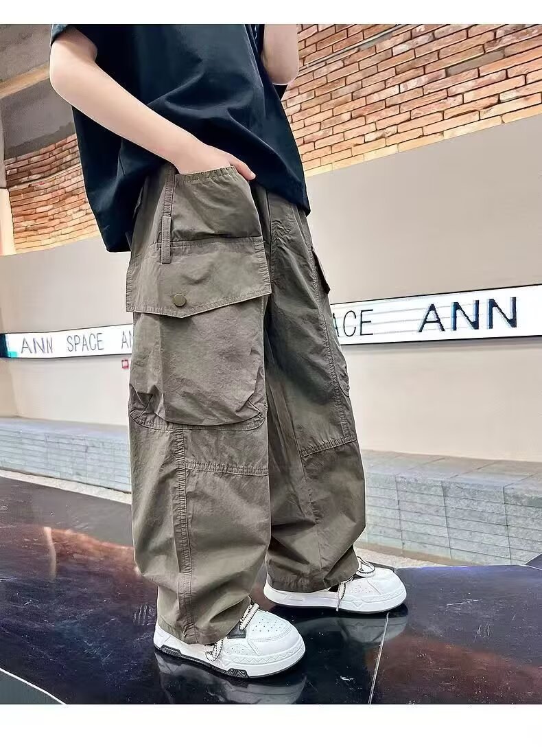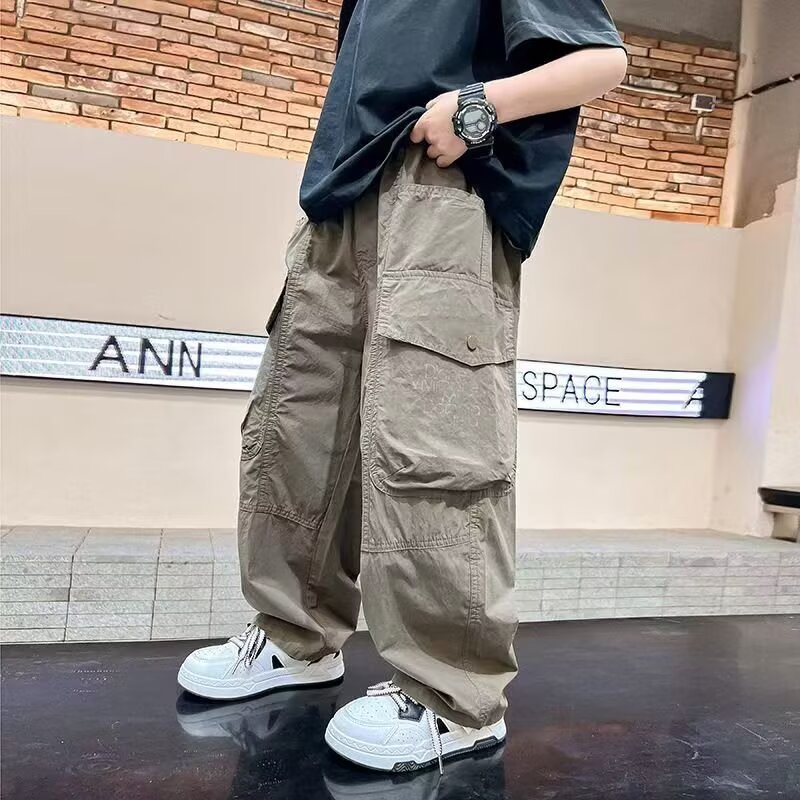 소년 여름 스트레이트 와이드 레그 오버올 2025 새로운 느슨한 바지 어린이 여름 얼음 실크 얇은 바지 유행스토어 가기