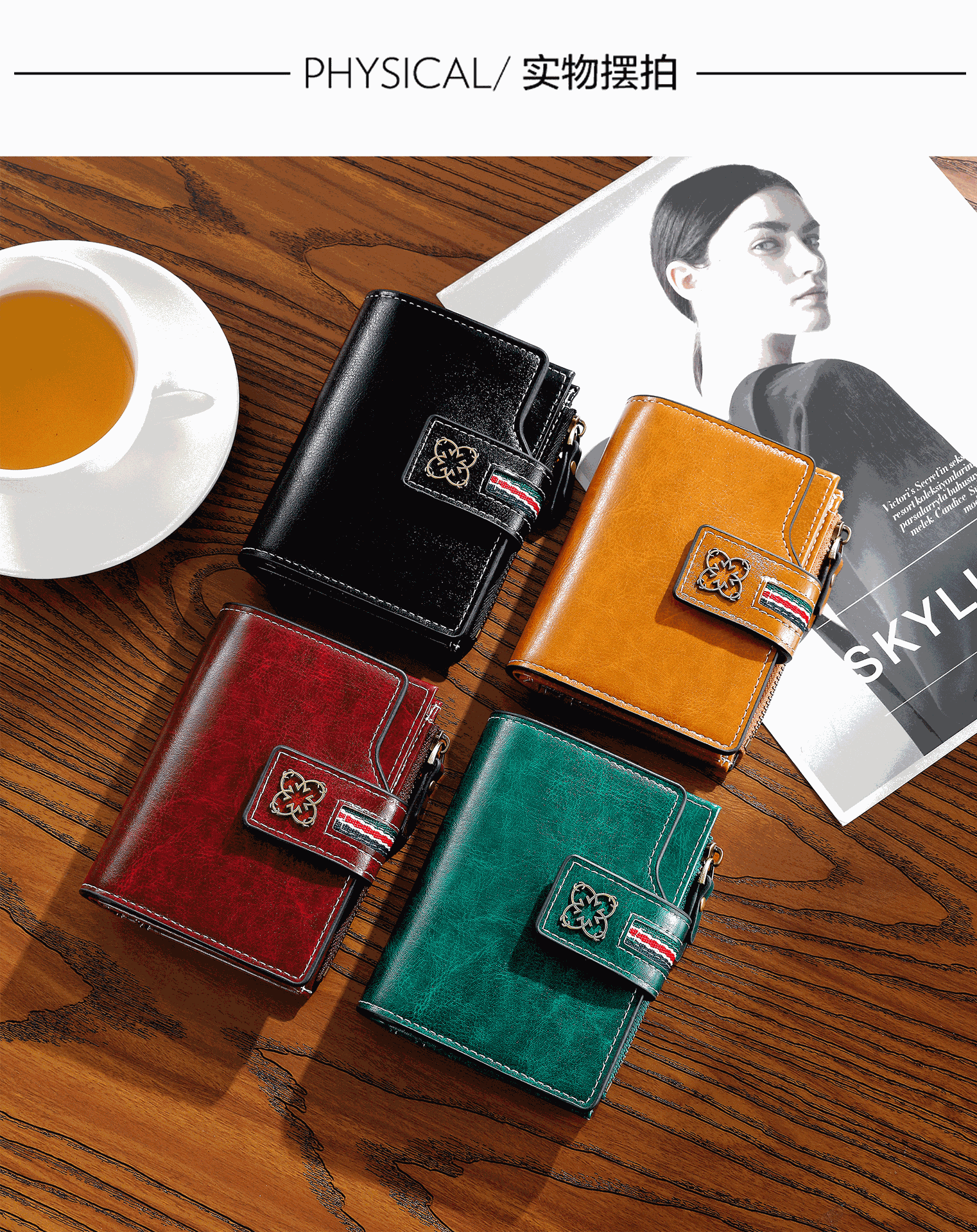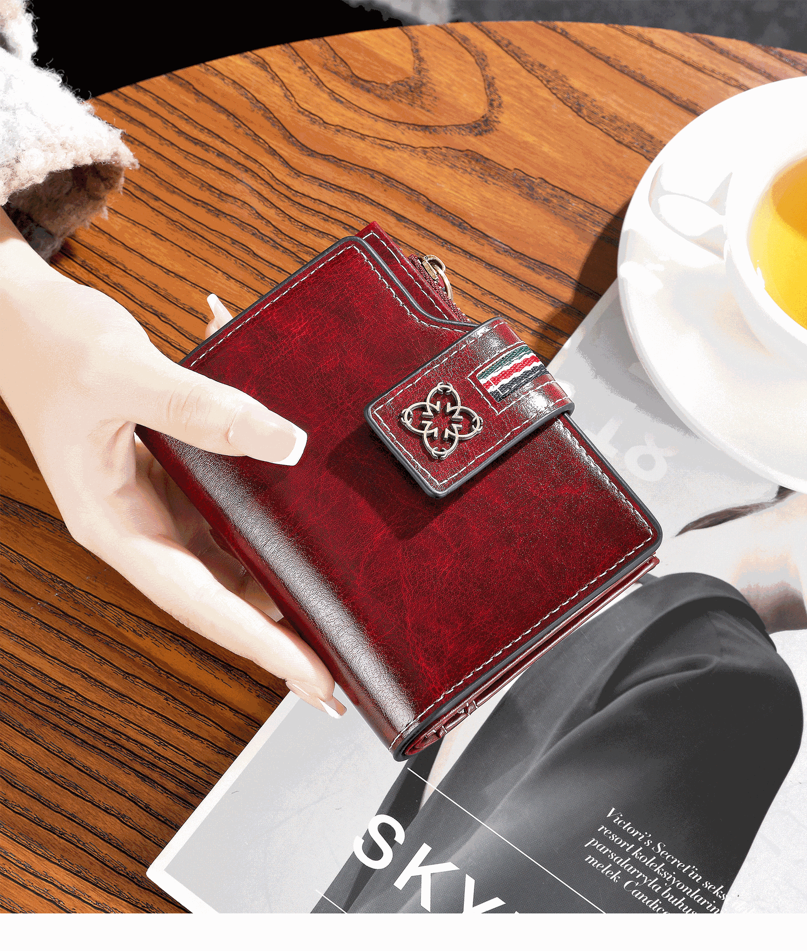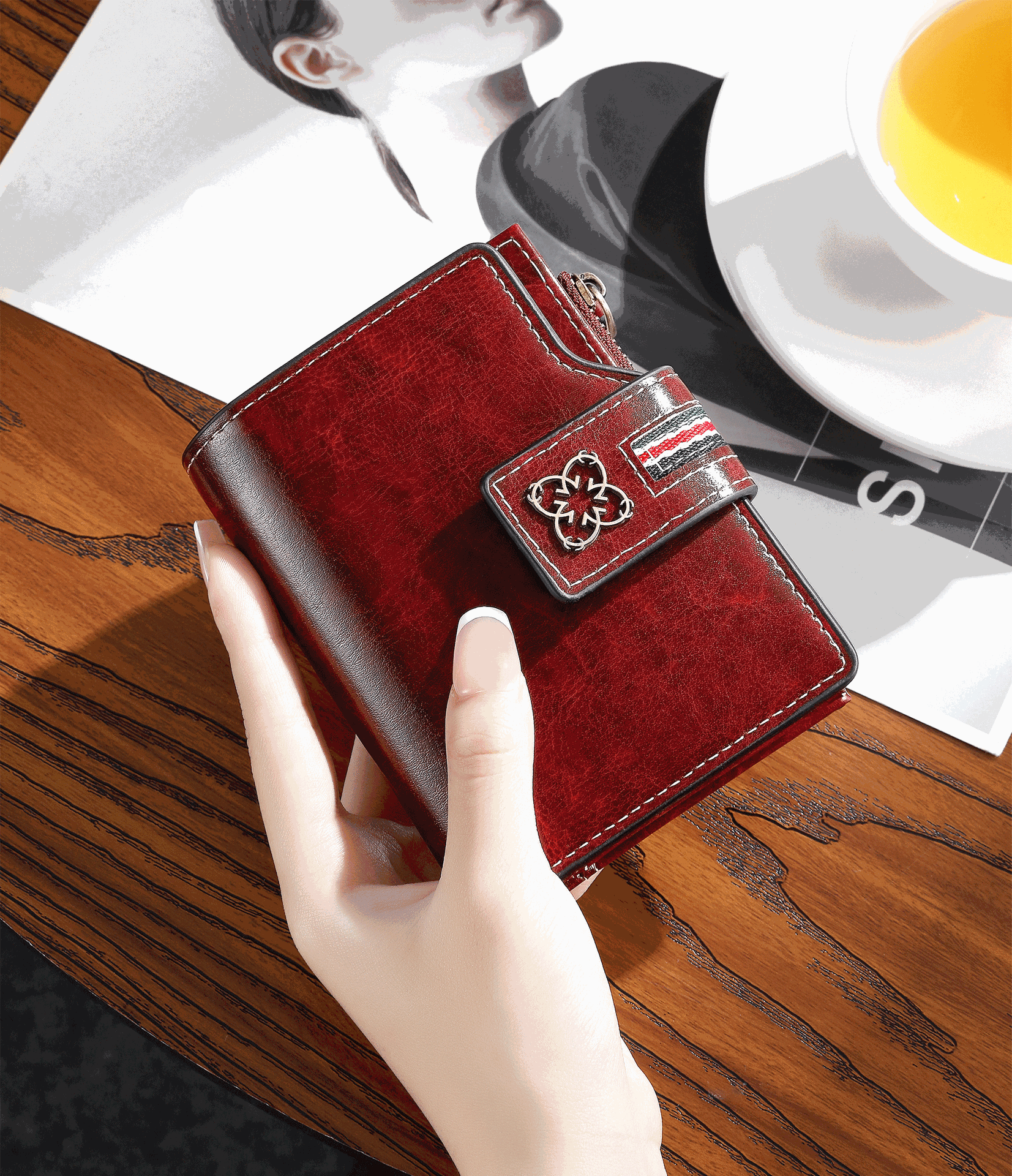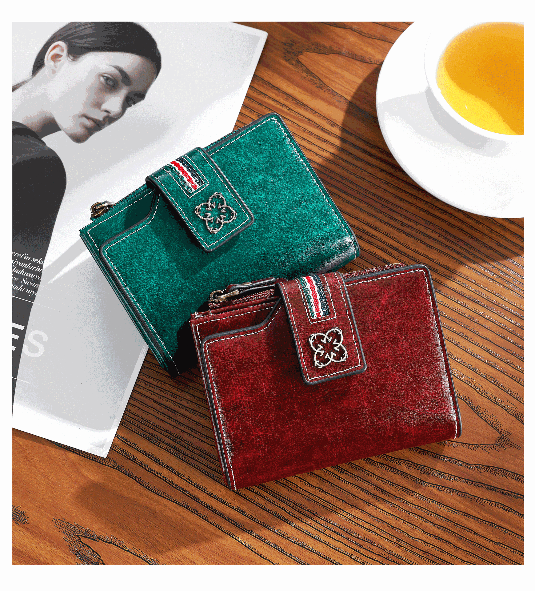 2025 새로운 여성 짧은 지갑 유럽과 미국의 복고풍 오일 왁스 가죽 지갑 얇은 지갑 크로스 보더 여성 지갑스토어 가기