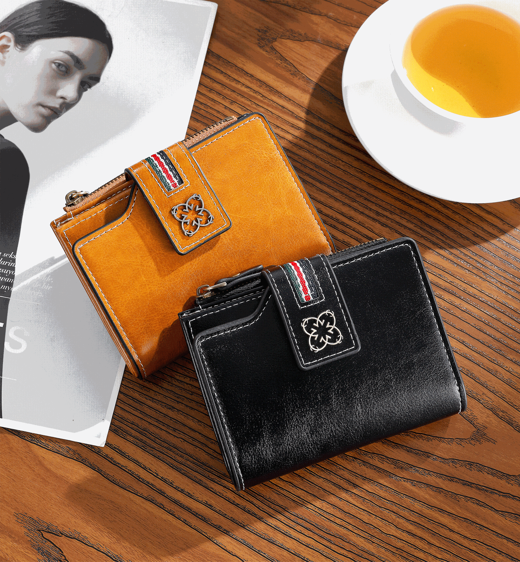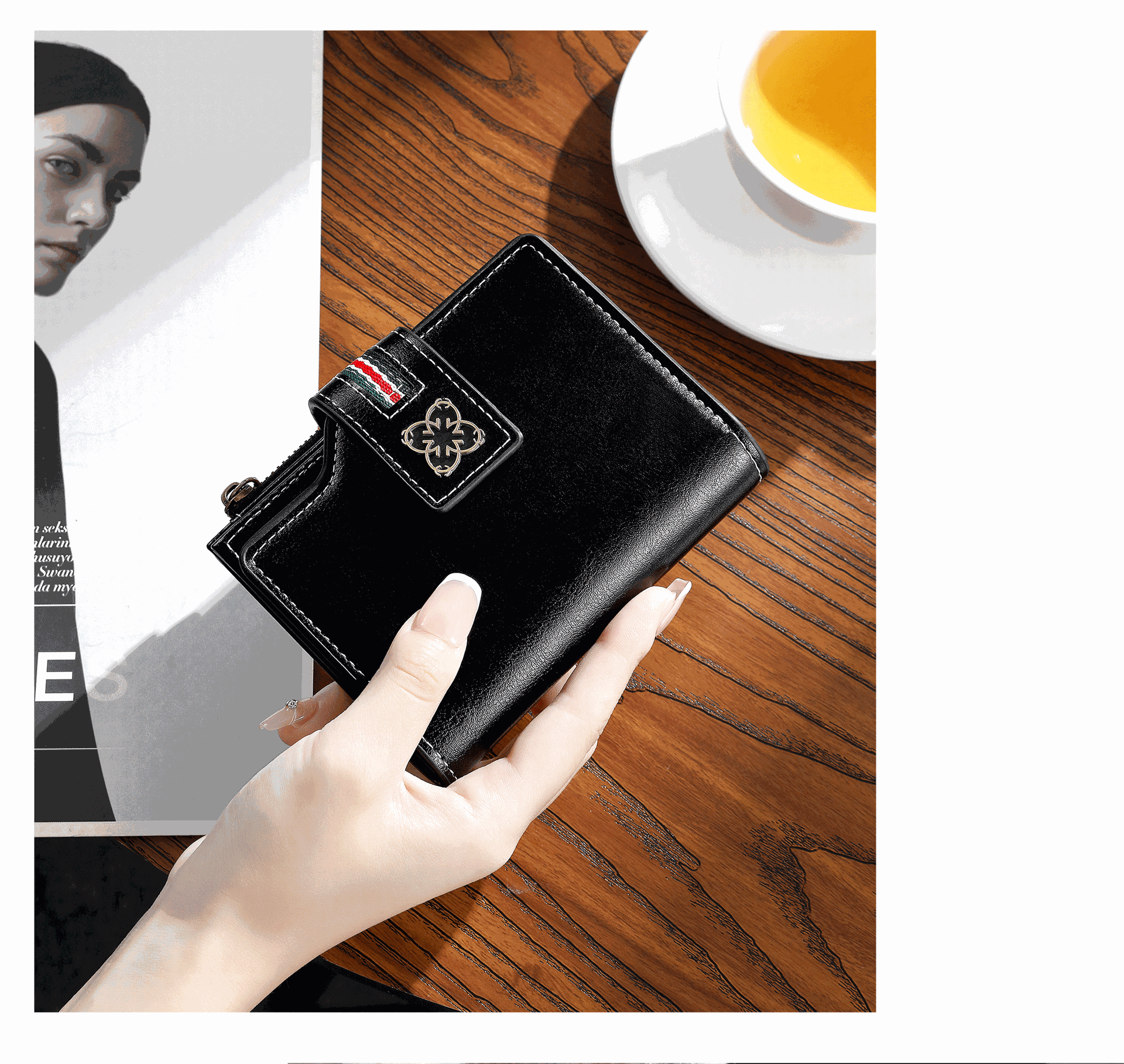 2025 새로운 여성 짧은 지갑 유럽과 미국의 복고풍 오일 왁스 가죽 지갑 얇은 지갑 크로스 보더 여성 지갑
