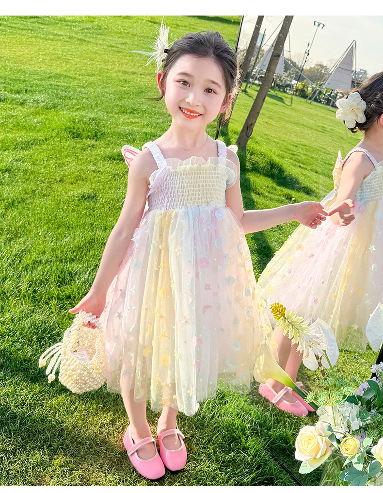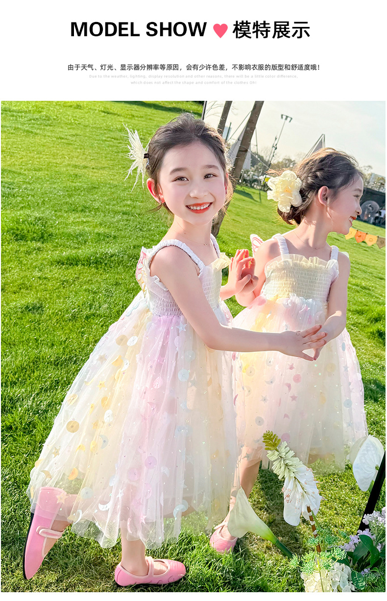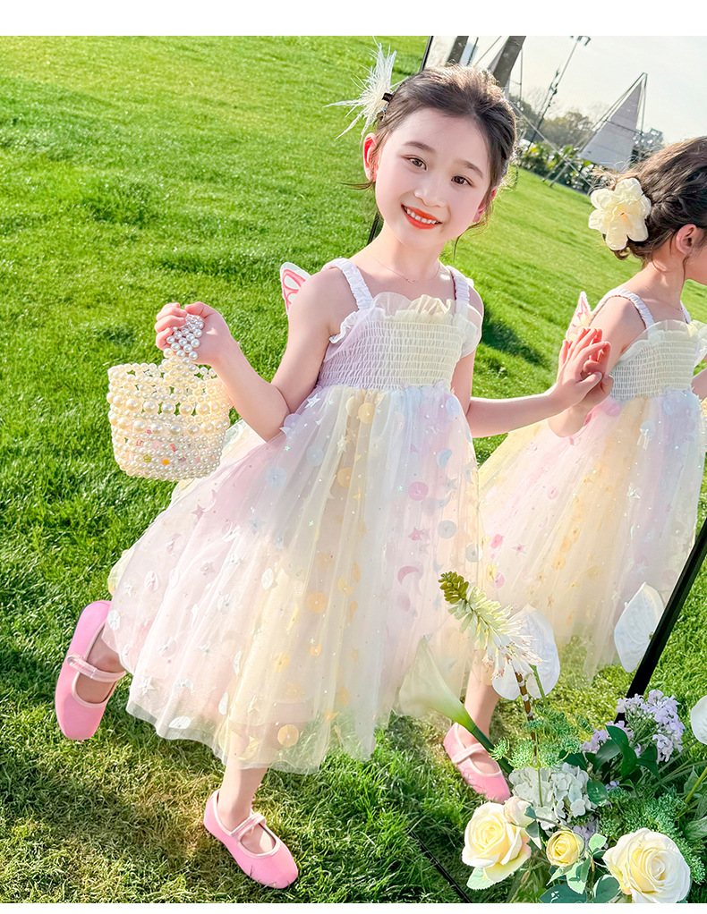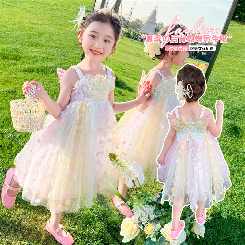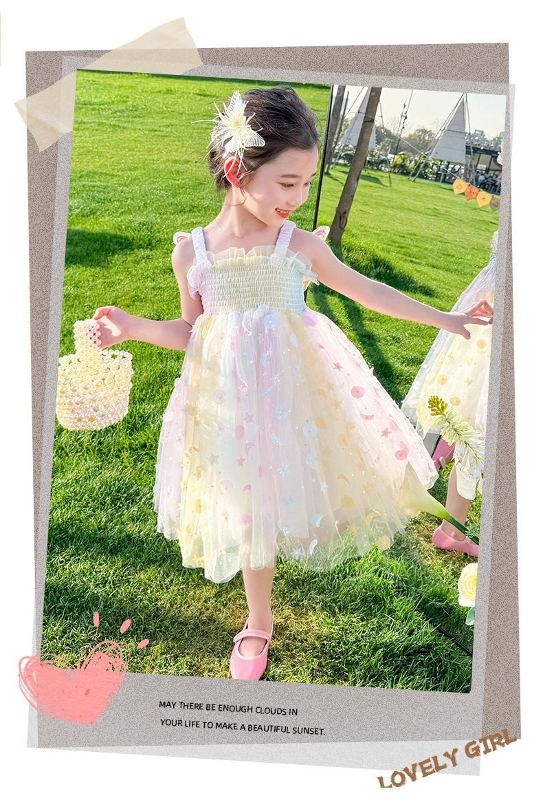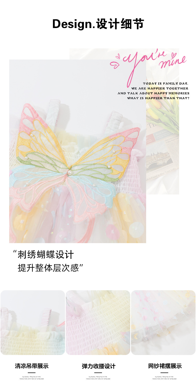 여자 여름 드레스 2025 새로운 스타일 어린이 무지개 공주 드레스 여자 여름 거즈 스커트 서스펜더 스커트스토어 가기