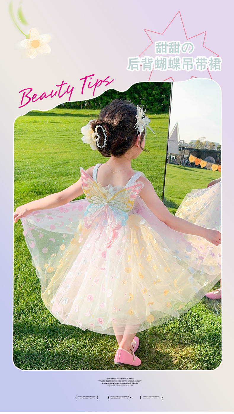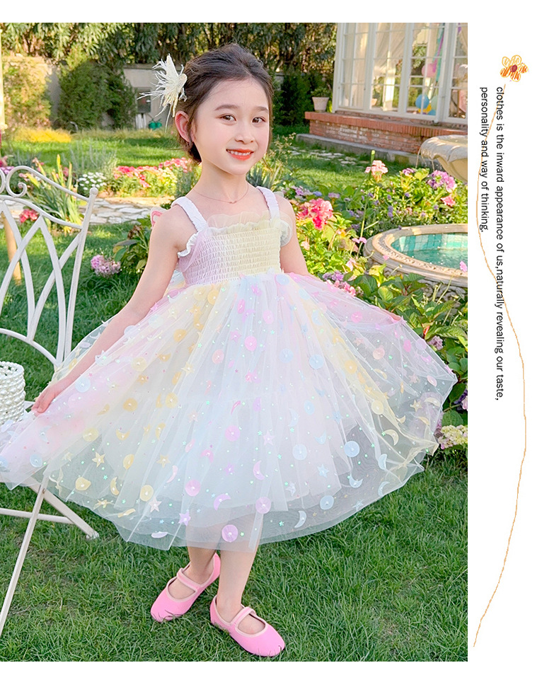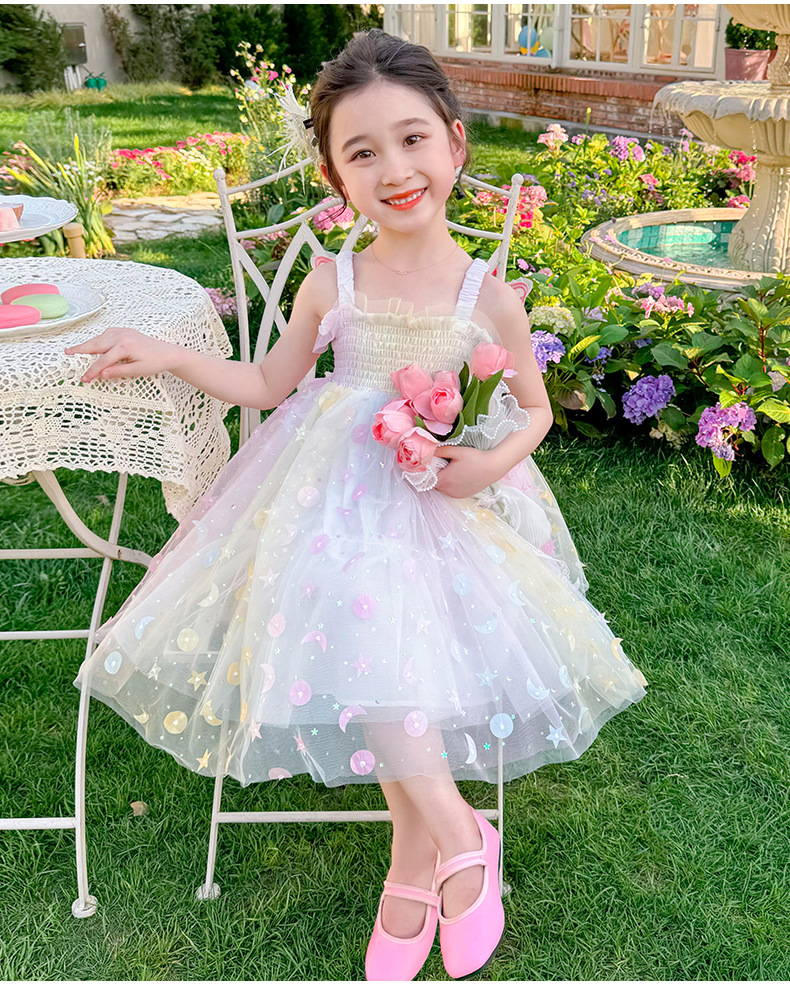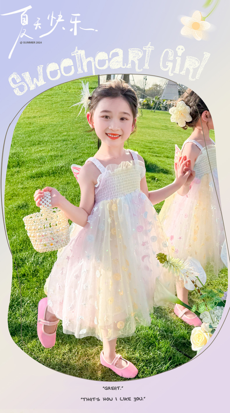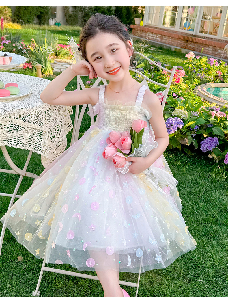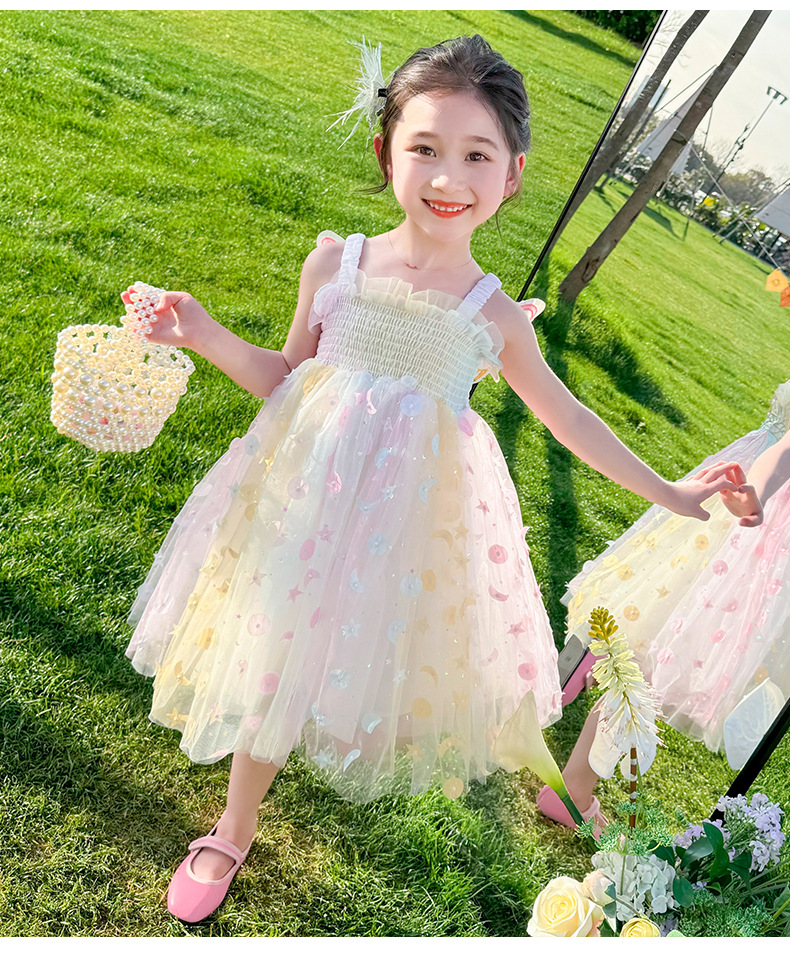 여자 여름 드레스 2025 새로운 스타일 어린이 무지개 공주 드레스 여자 여름 거즈 스커트 서스펜더 스커트스토어 가기