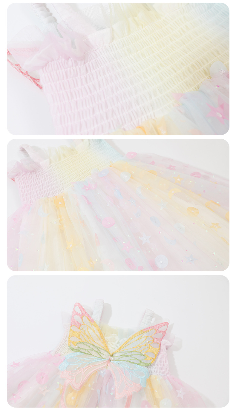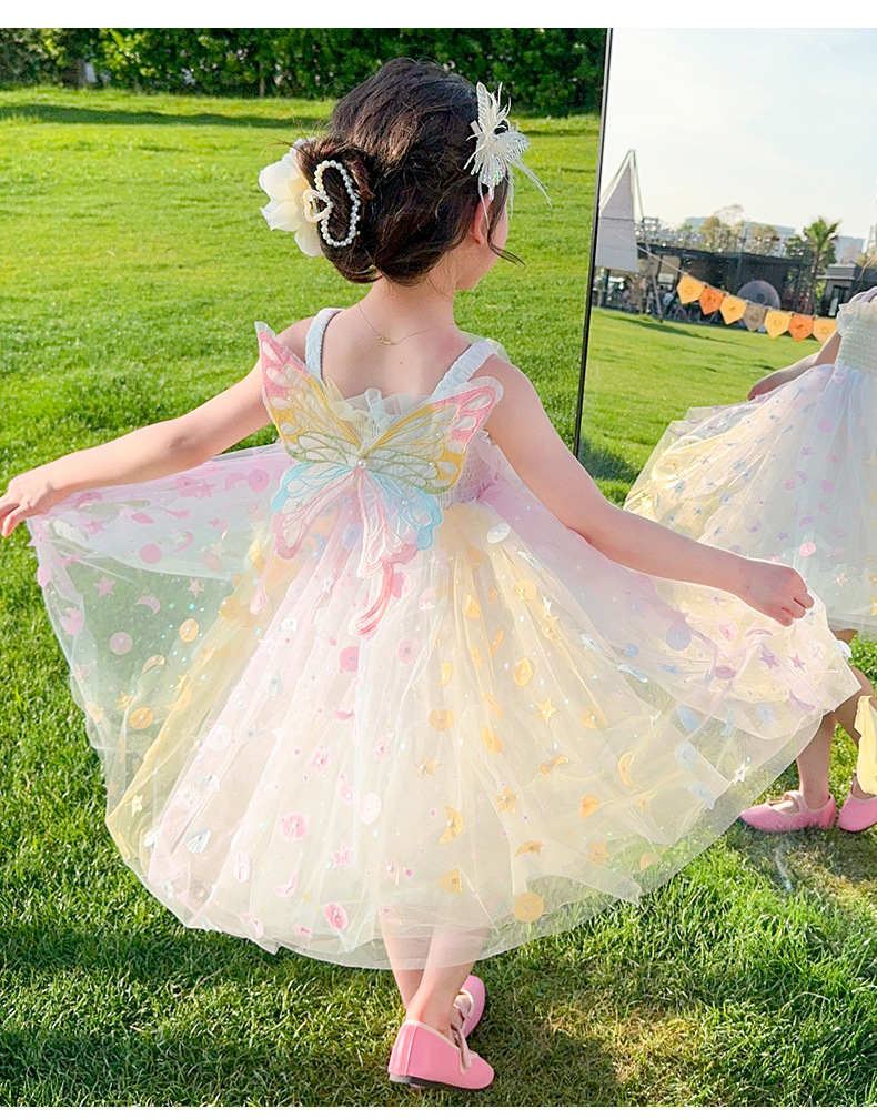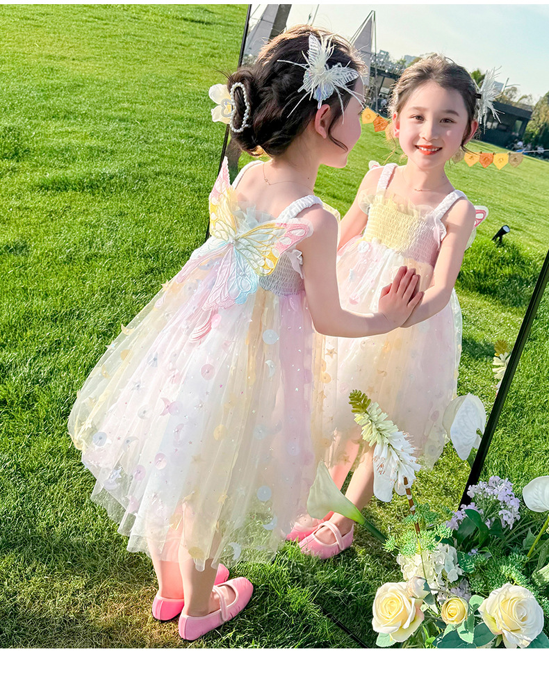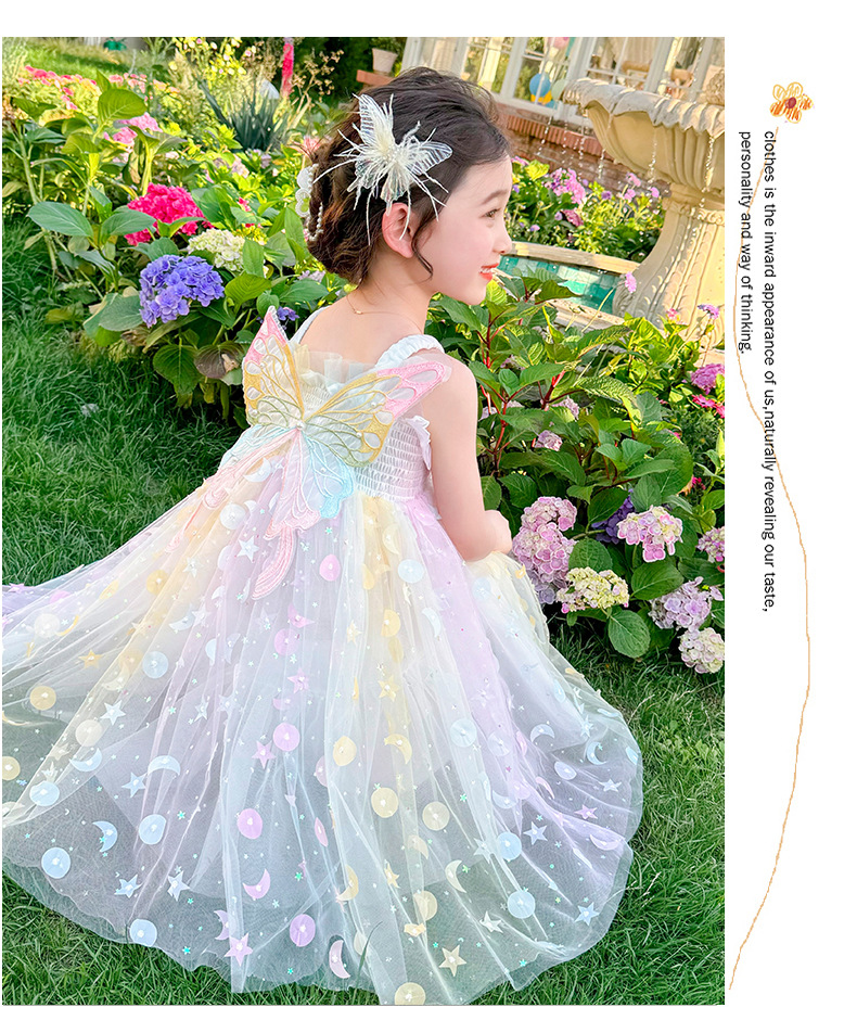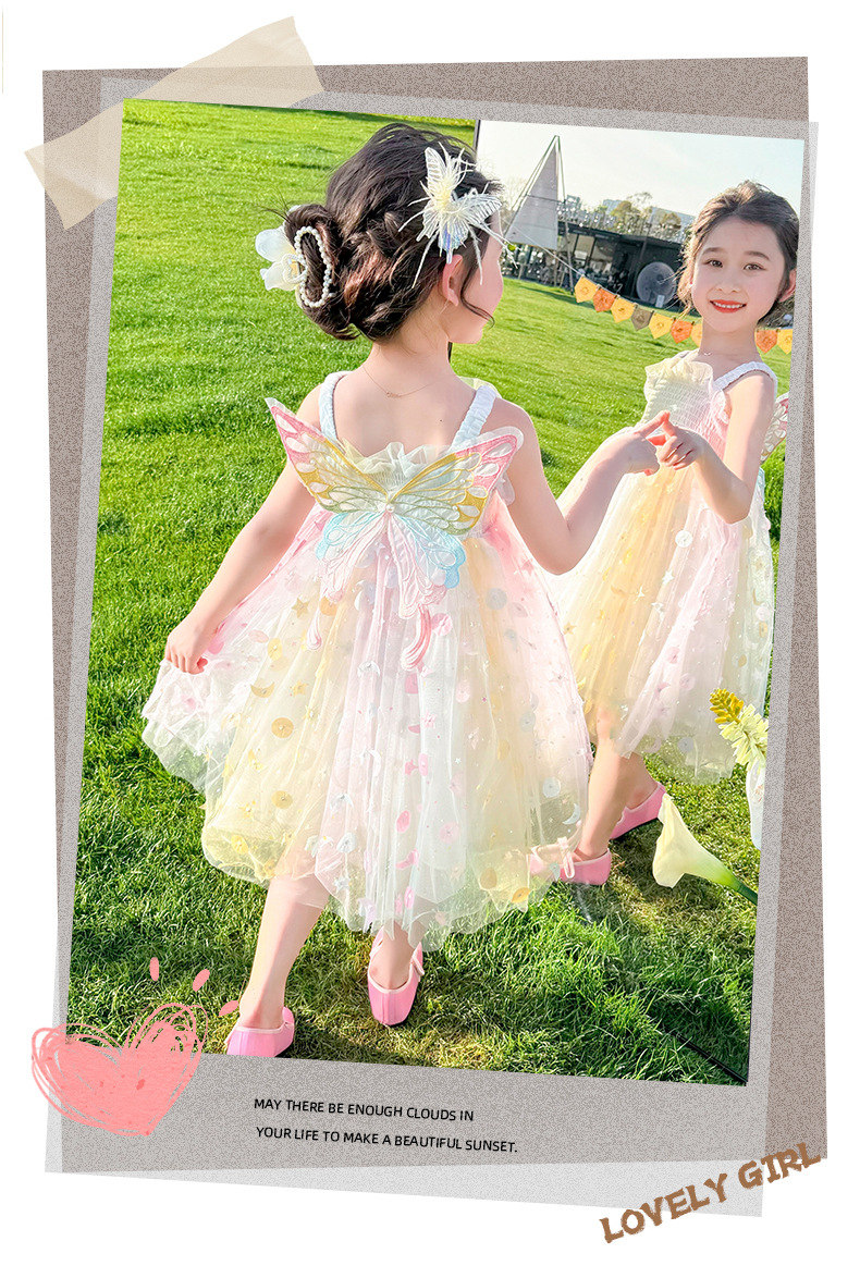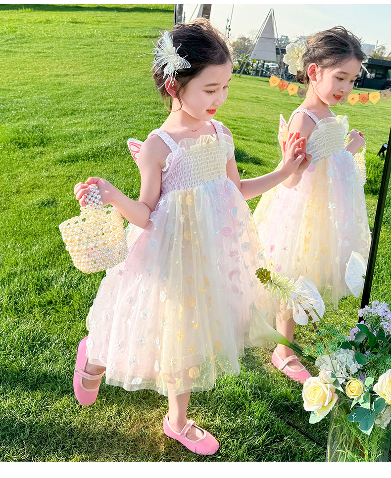 여자 여름 드레스 2025 새로운 스타일 어린이 무지개 공주 드레스 여자 여름 거즈 스커트 서스펜더 스커트스토어 가기