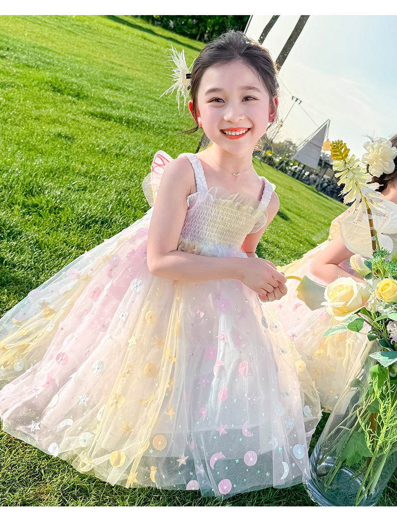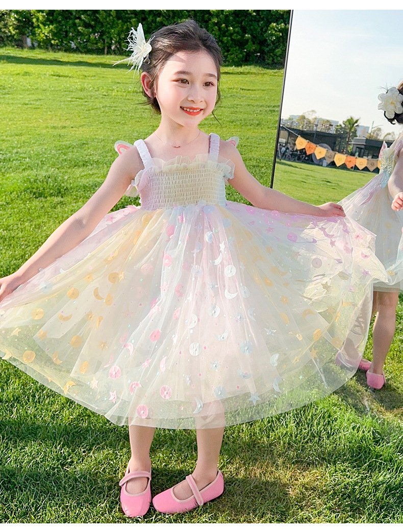 여자 여름 드레스 2025 새로운 스타일 어린이 무지개 공주 드레스 여자 여름 거즈 스커트 서스펜더 스커트