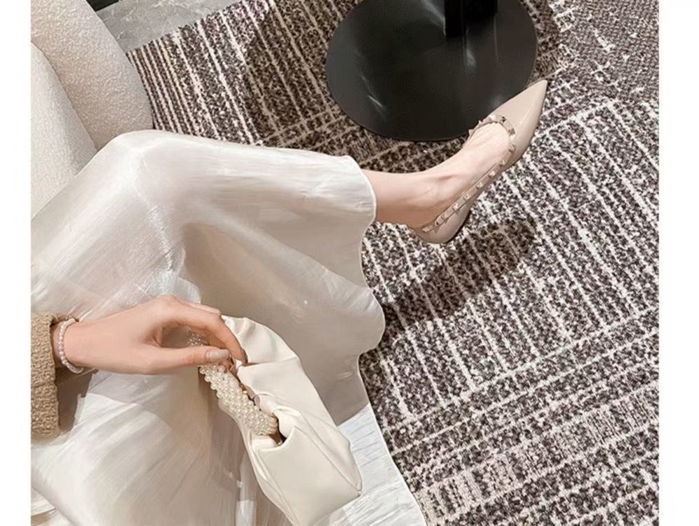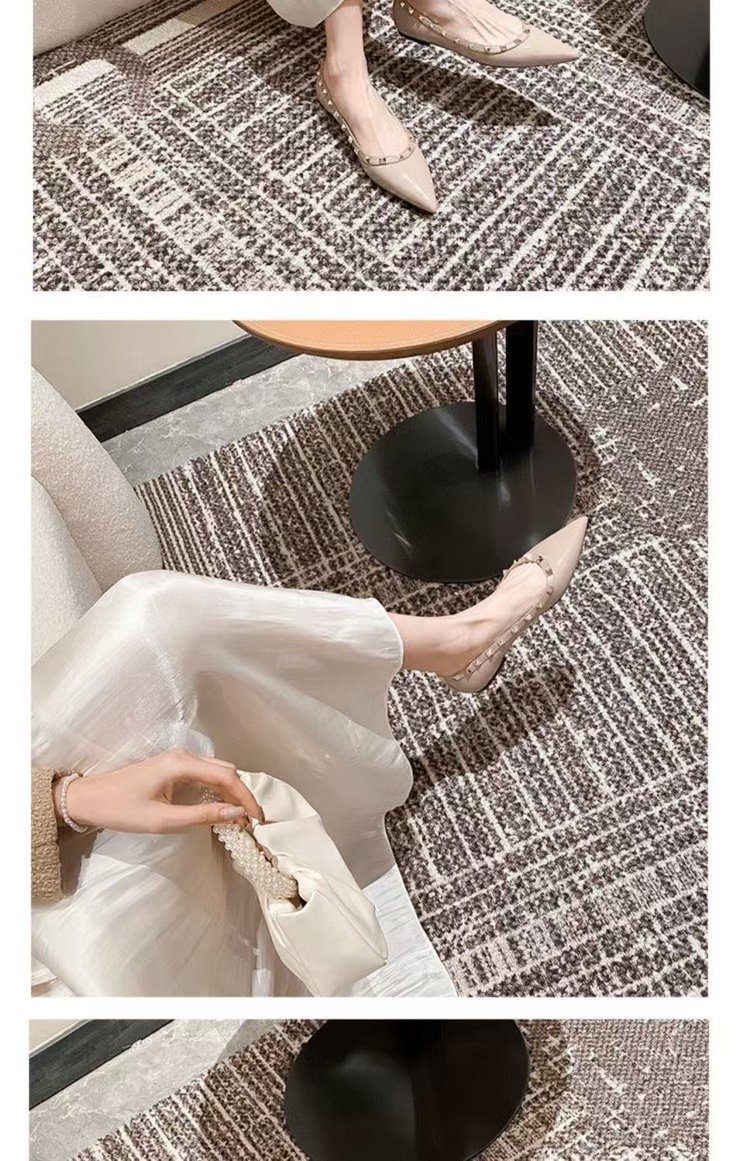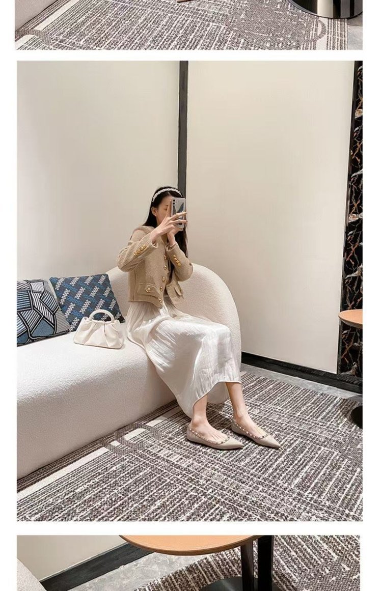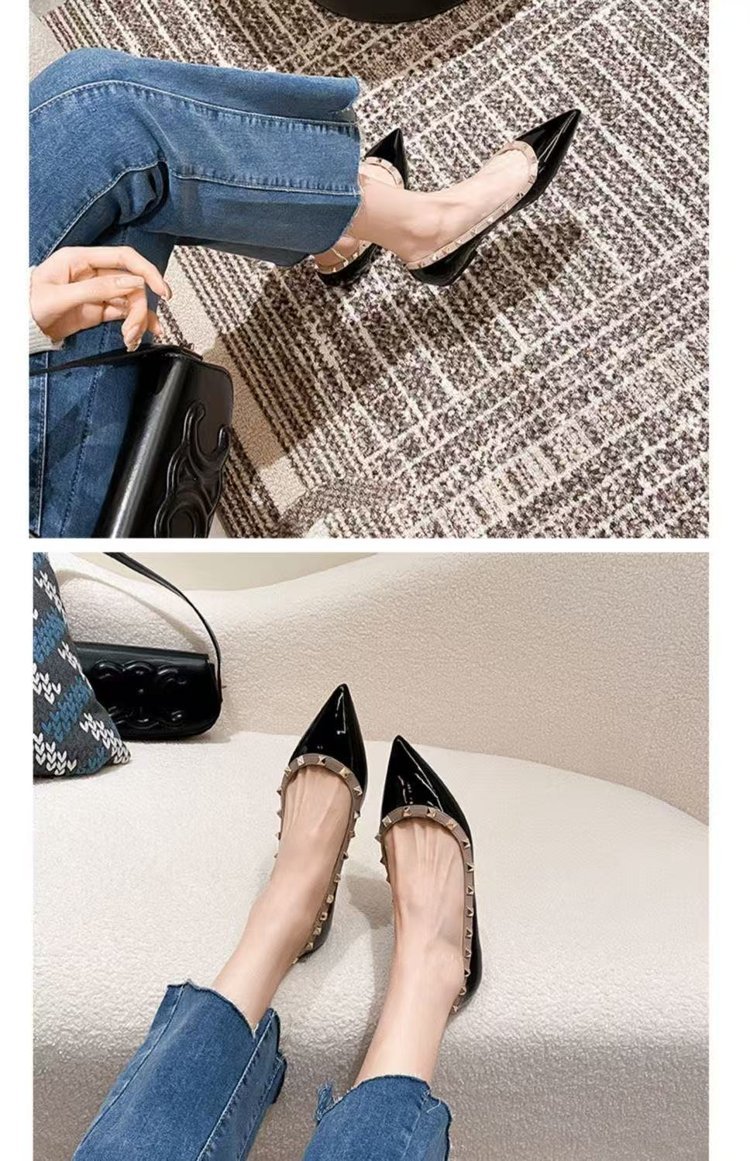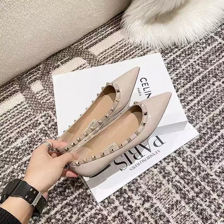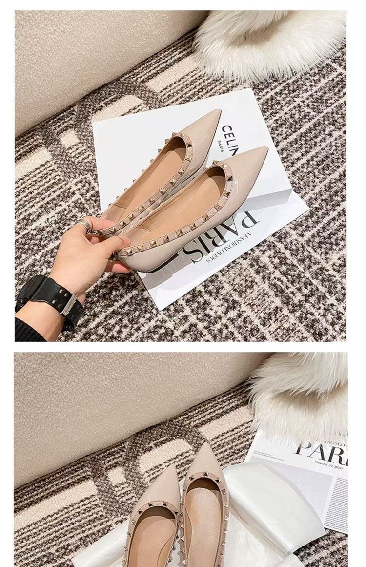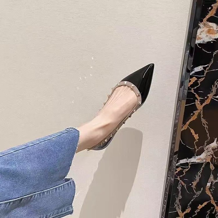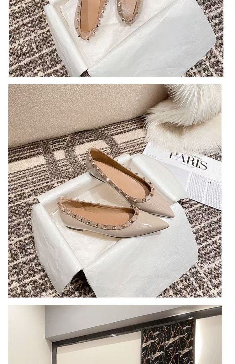 부드러운 가죽 프랑스 스타일 우아한 포인팅 신발 여성 얕은 탑 여성 리벳 특허 가죽 늦은 저녁 부드러운 부드러운 바닥 플랫 신발스토어 가기