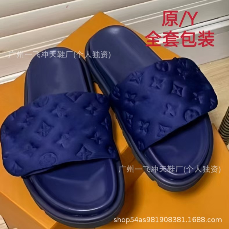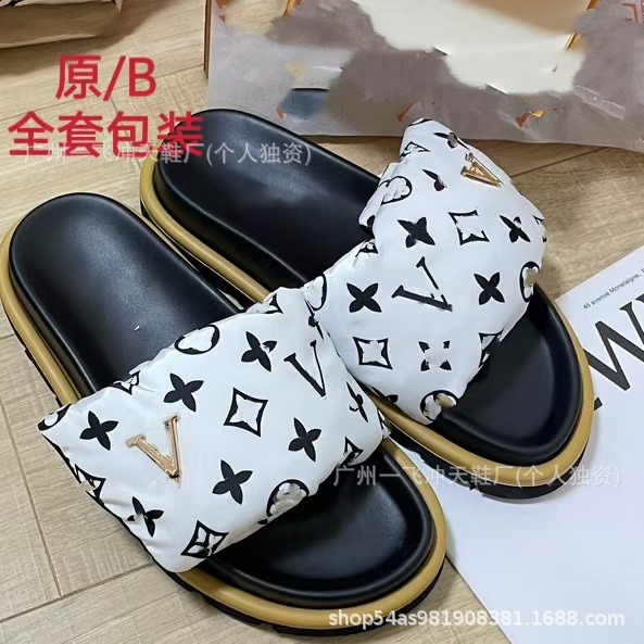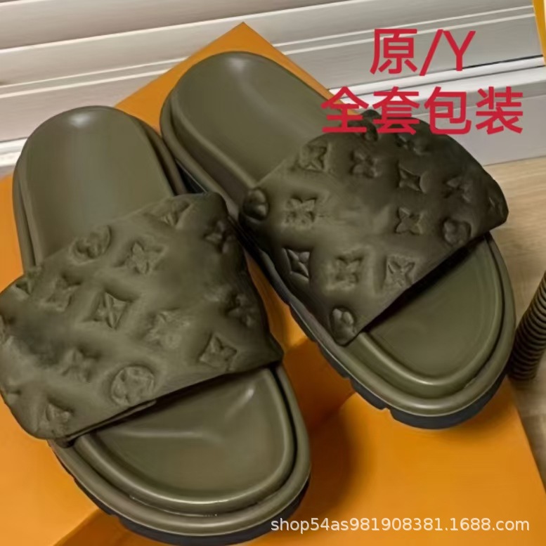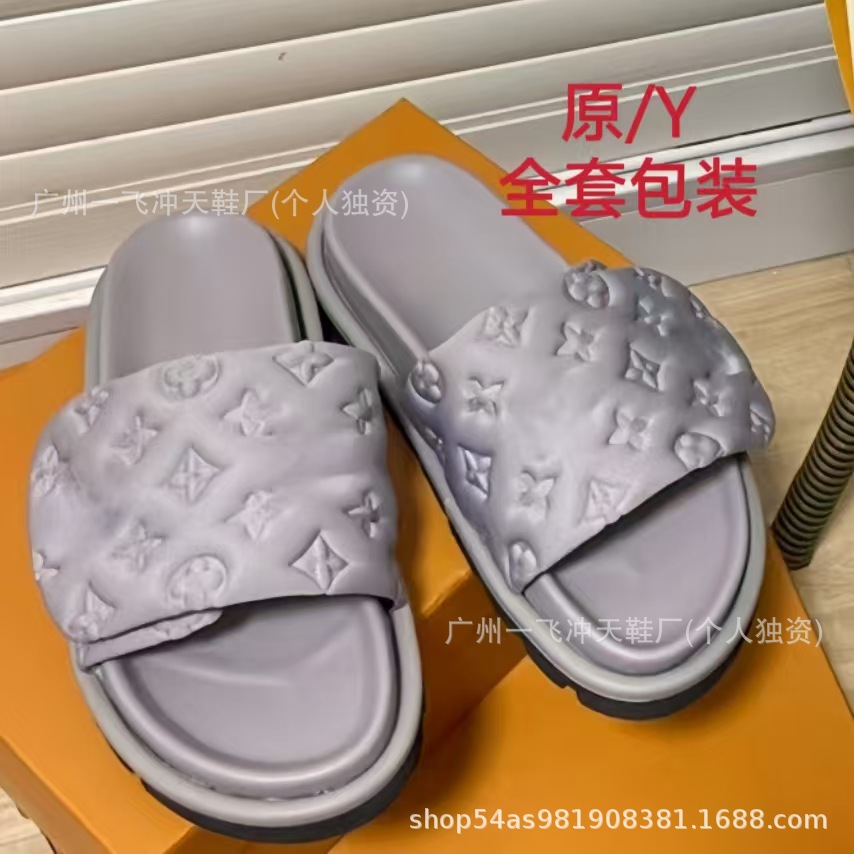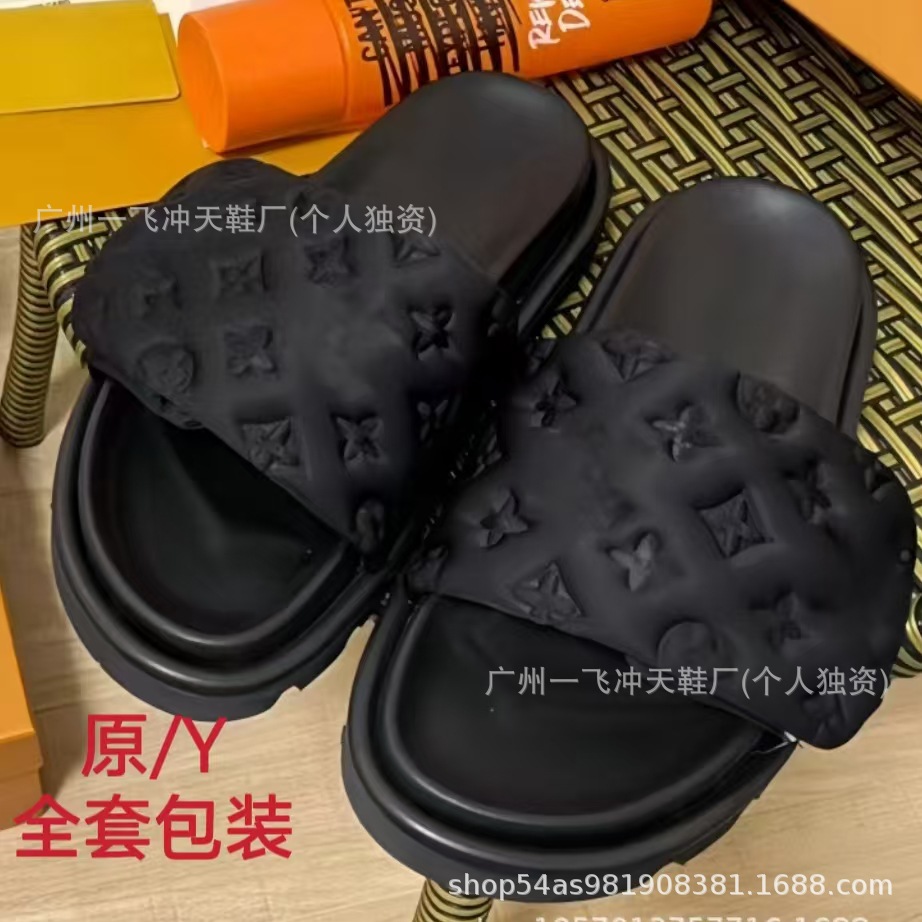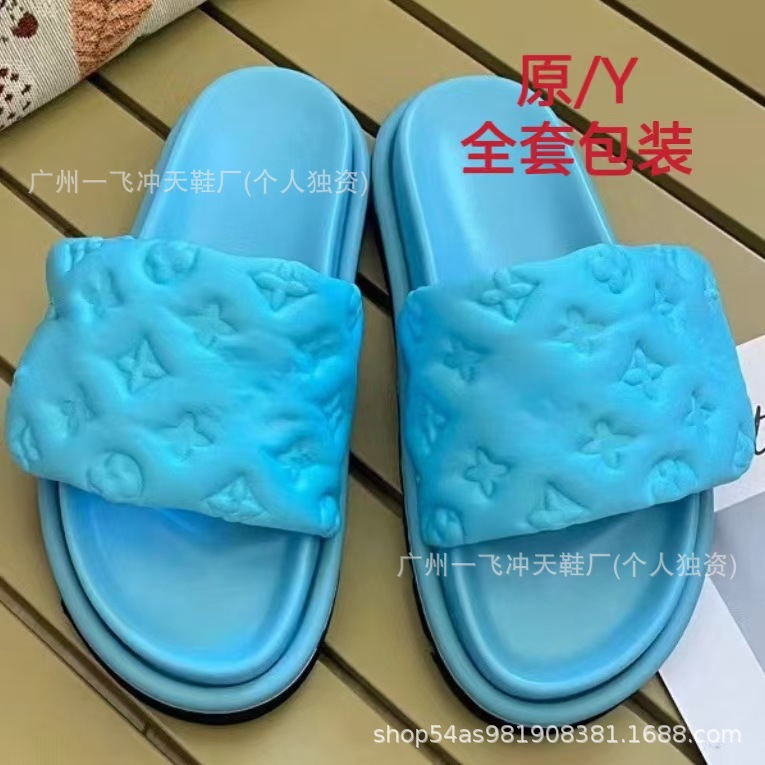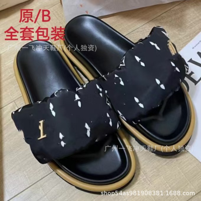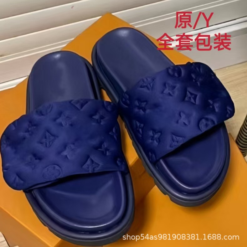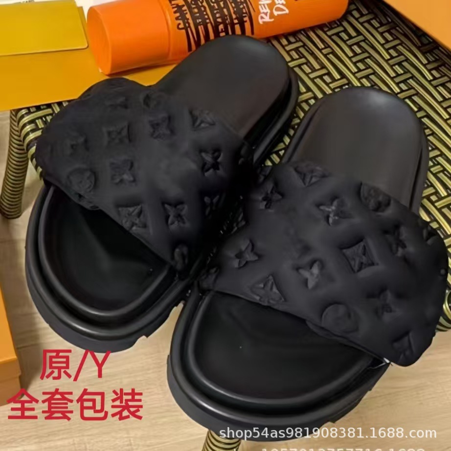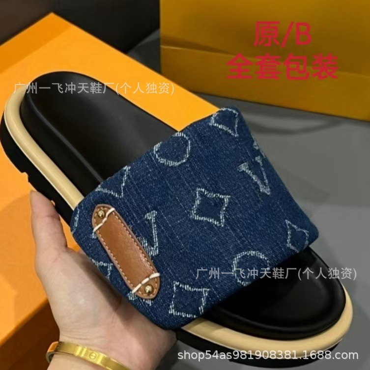 V 가족 두꺼운 바닥 벨크로 슬리퍼 여성의 2024 캐주얼 의상 유행 비 슬립 데님 편지 여성 신발스토어 가기