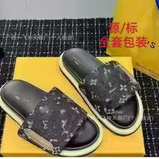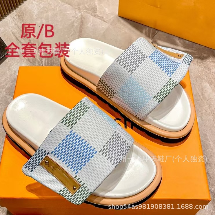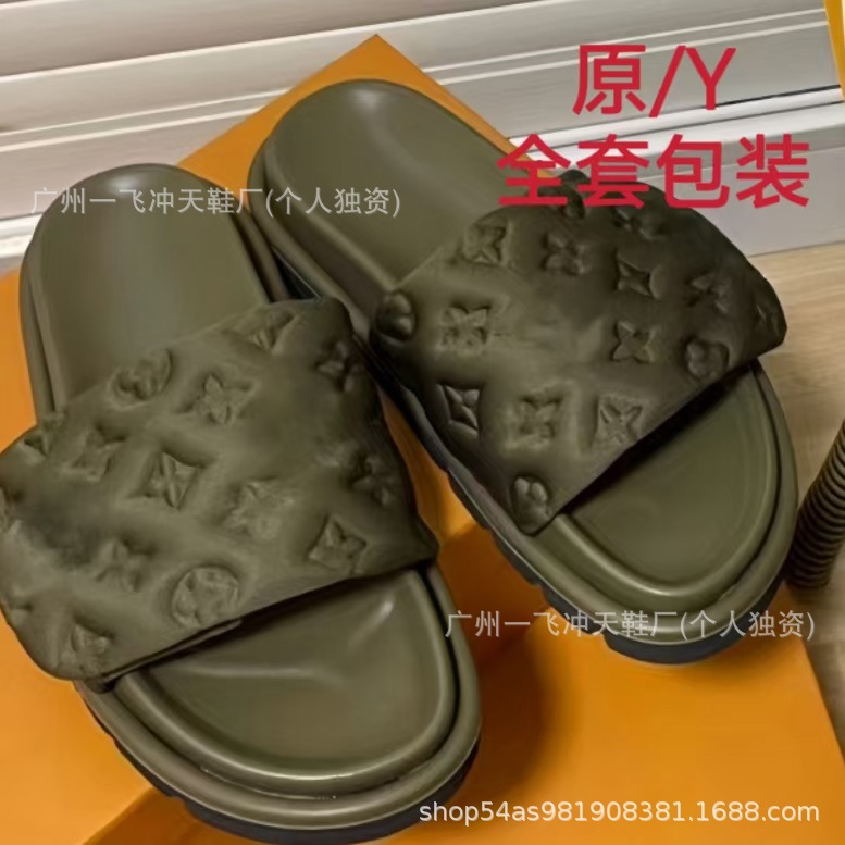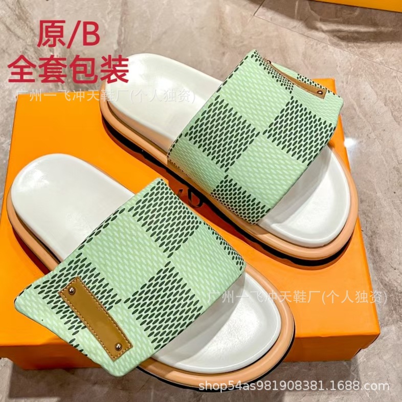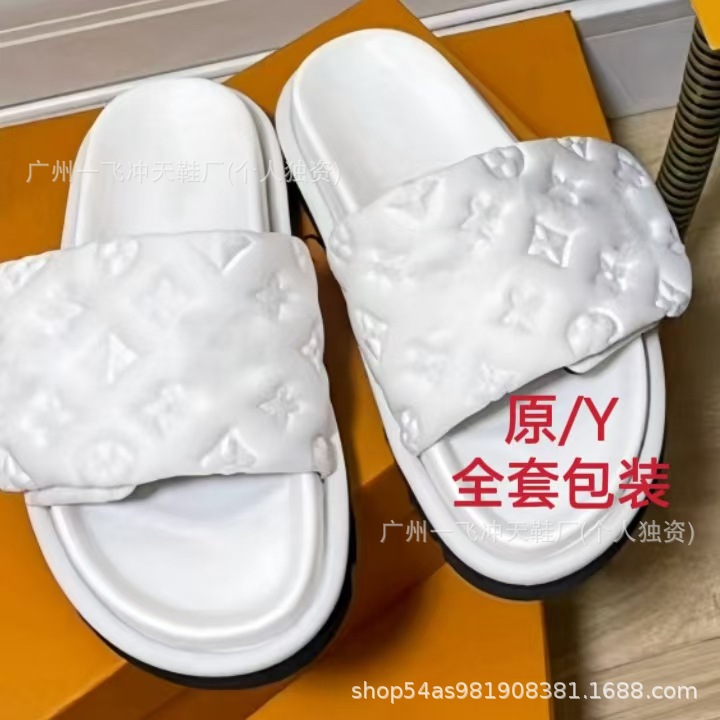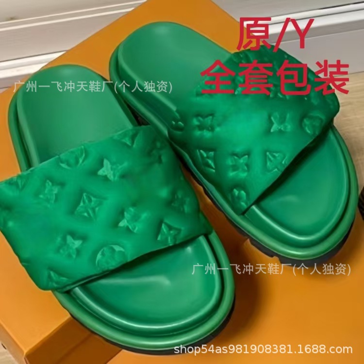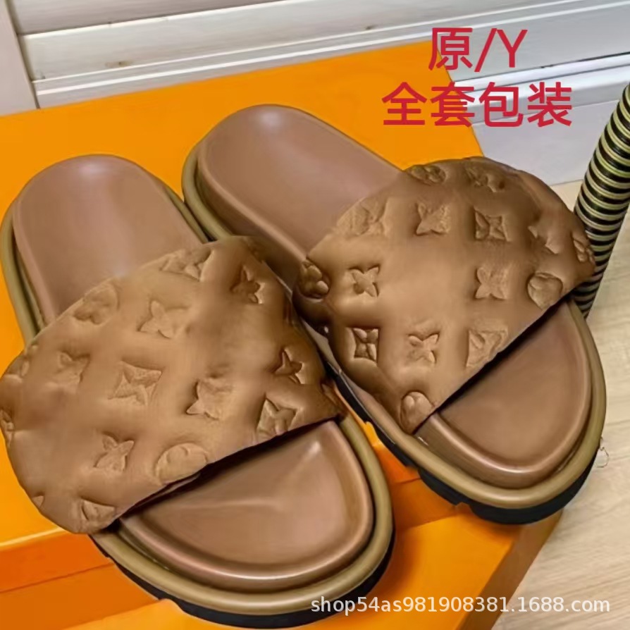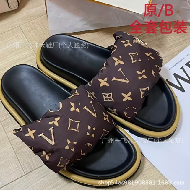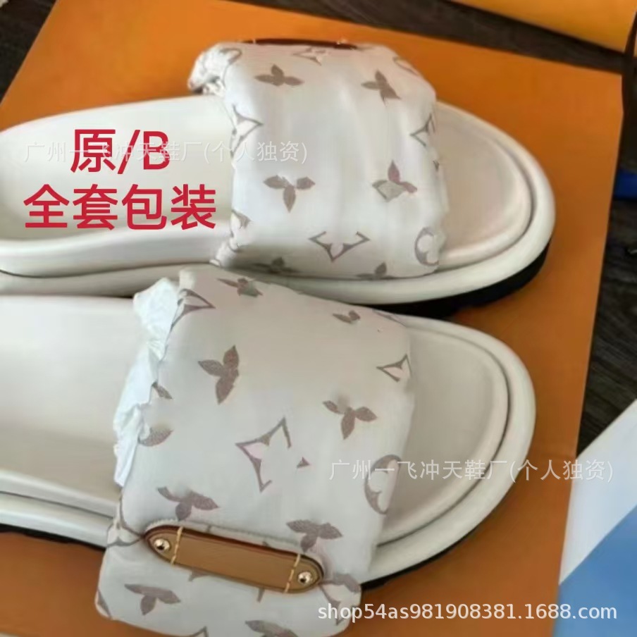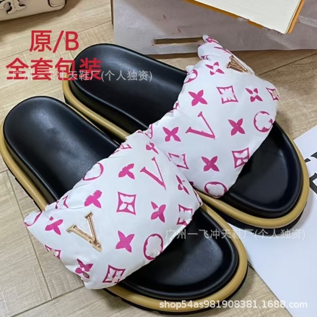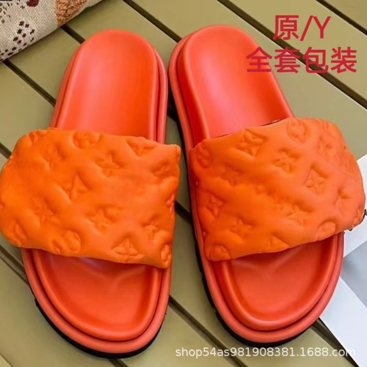 V 가족 두꺼운 바닥 벨크로 슬리퍼 여성의 2024 캐주얼 의상 유행 비 슬립 데님 편지 여성 신발스토어 가기
