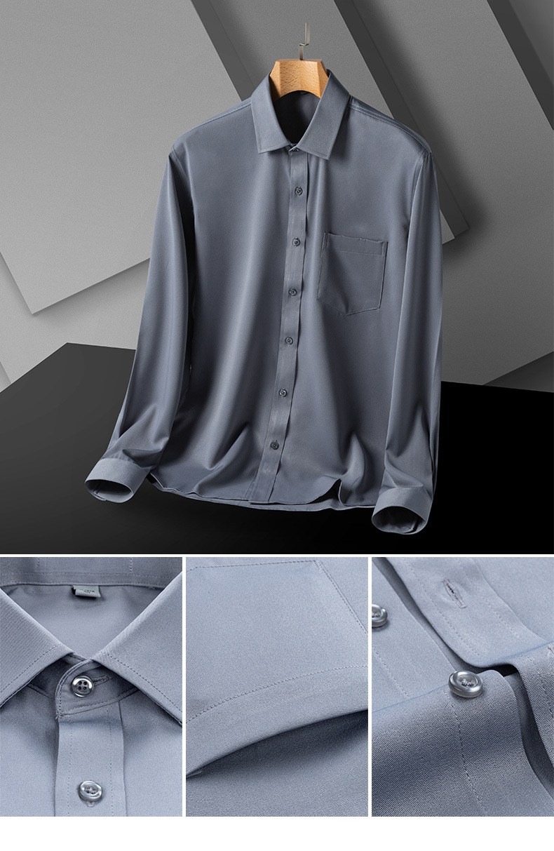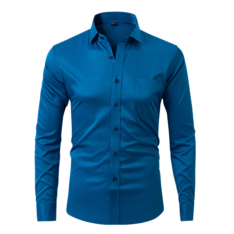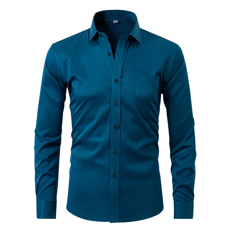 국경 간 남성 긴팔 셔츠 새로운 핫 판매 탄성 솔리드 컬러 비즈니스 셔츠 남성 패션 슬림 남성상의