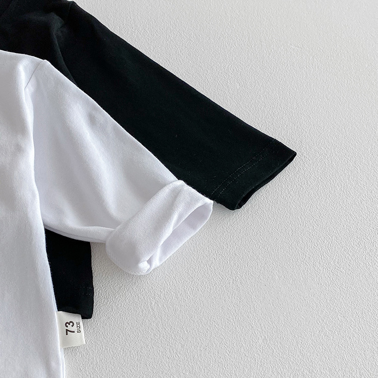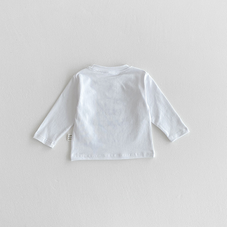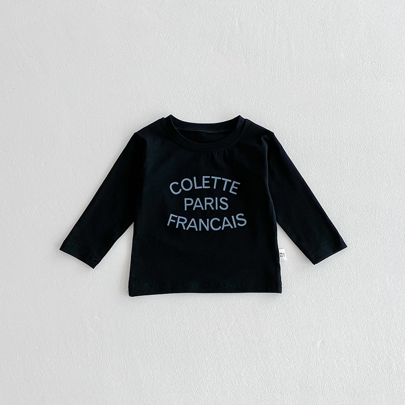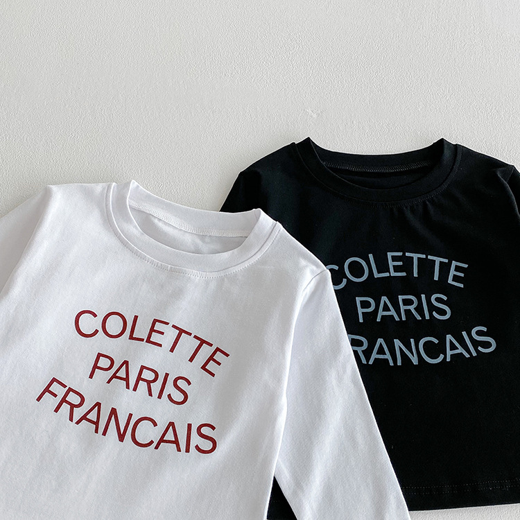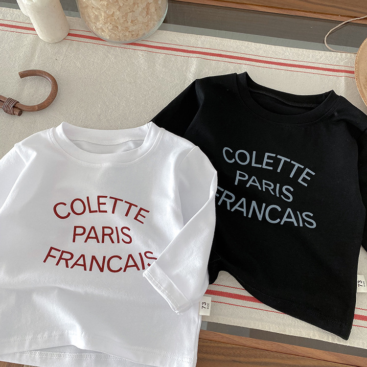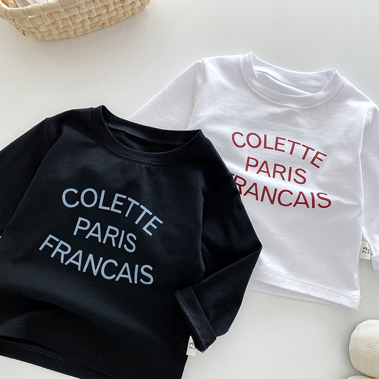 2025 봄, 가을 새로운 스타일 유아 및 아동 의류 흑백 문자 순수 코튼 캐주얼 긴팔 티셔츠 봄, 가을스토어 가기