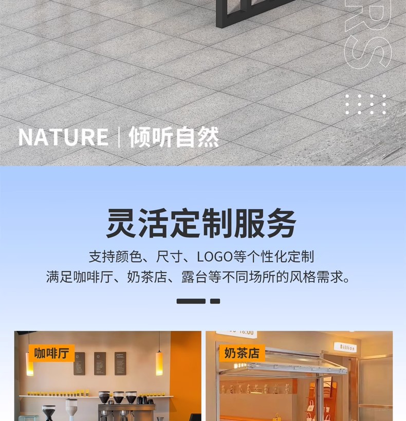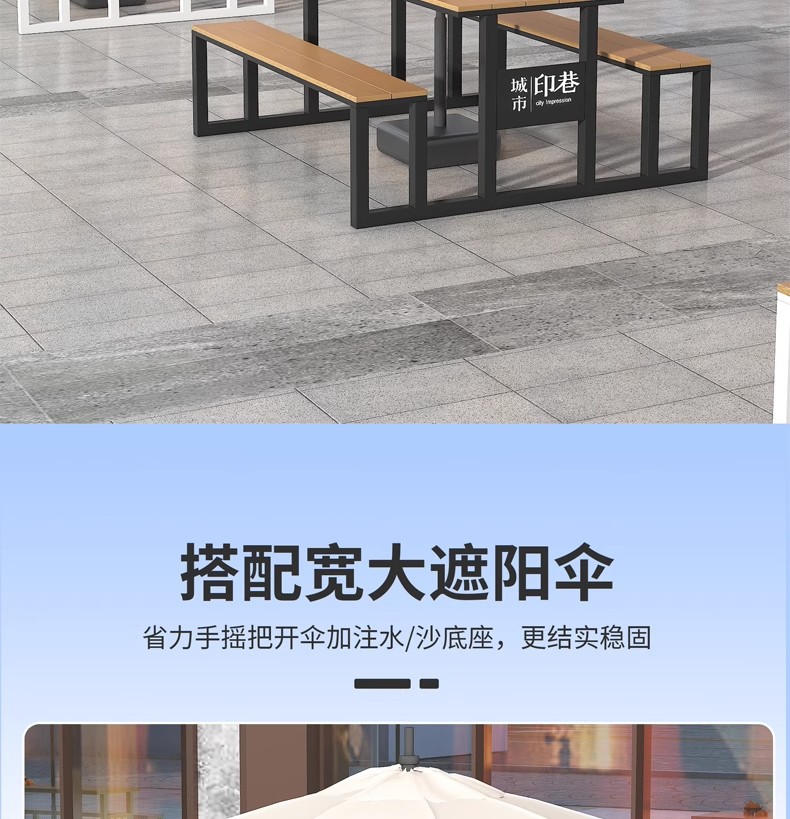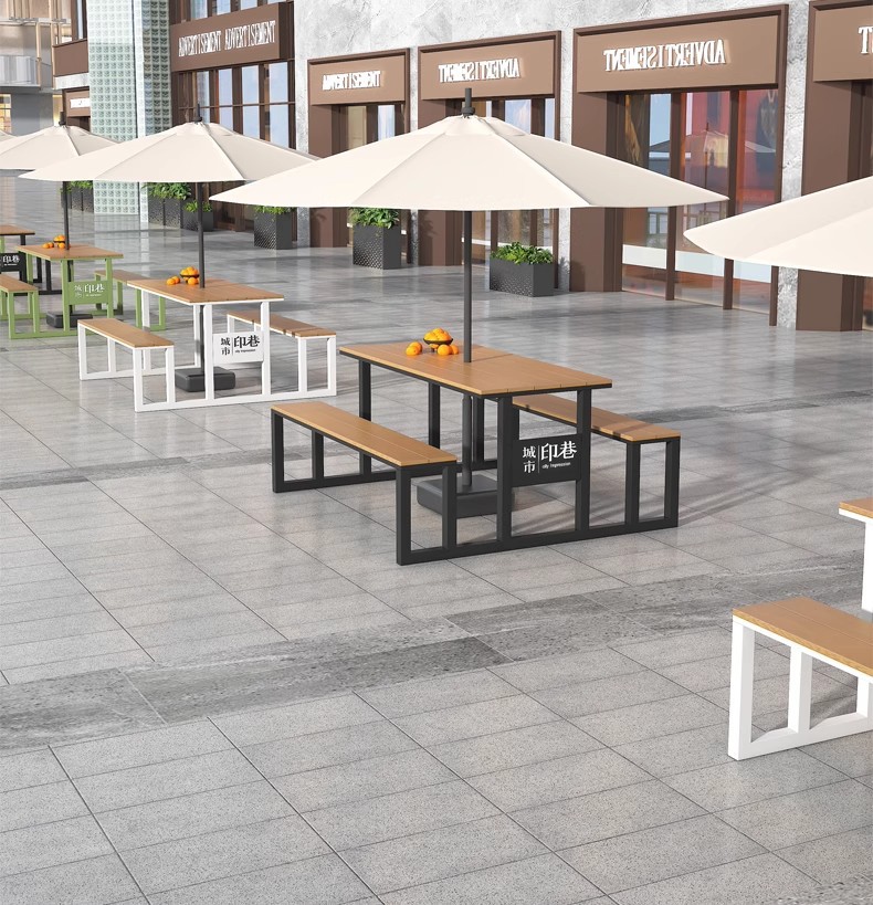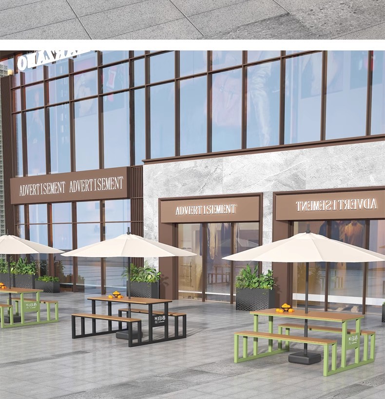 우산이 포함된 야외 일체형 테이블과 의자 조합, 시민상업 거리 광장, 창의적인 레스토랑, 밀크티 가게, 야외 의자 식탁
