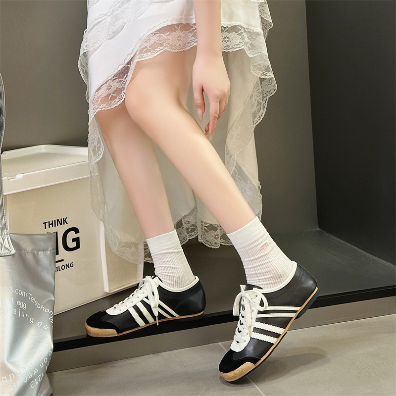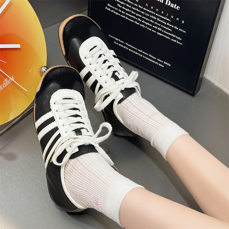 Dieao 2025 새로운 레이스 업 플랫 스니커즈 컬러 매칭 정품 가죽 복고풍 육군 훈련 신발 다목적 라운드 투 캐주얼 스니커즈스토어 가기
