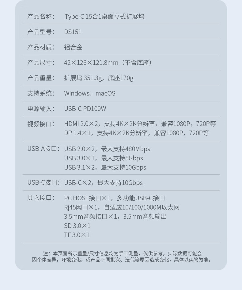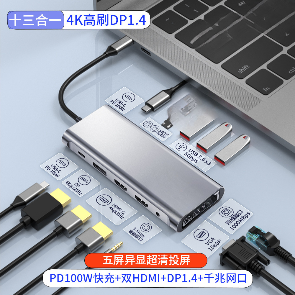 • 13-in-1 [DP1.4+듀얼 HDMI+VGA+기가비트 네트워크 포트] 노트북에서 4개 화면 동시 디스플레이