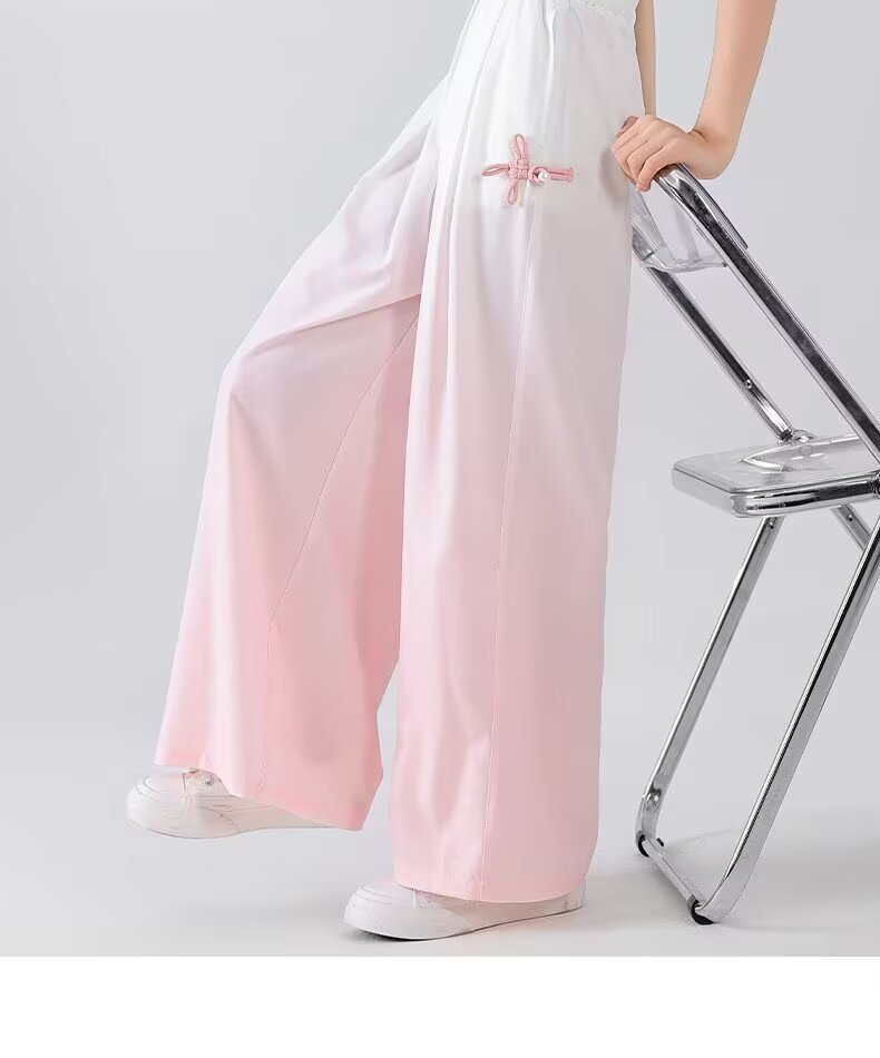 여아 바지 여름 어린이 2025 새로운 스타일 중국 스타일 여름 얼음 실크 와이드 레그 팬츠 큰 어린이 여름 모기 방지 바지스토어 가기