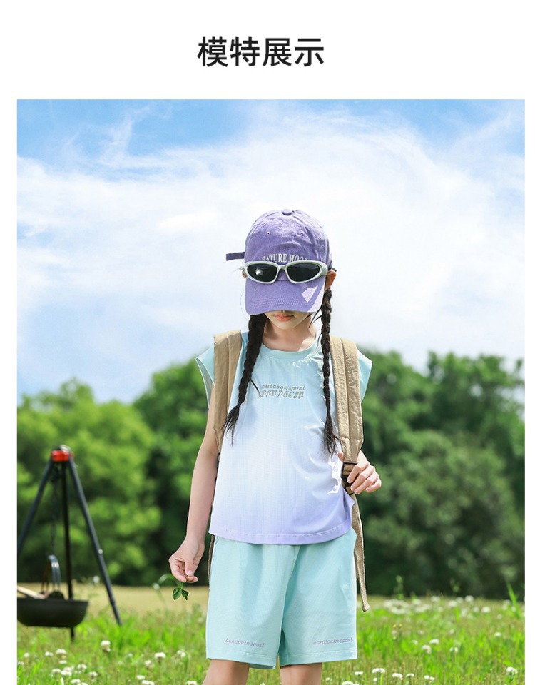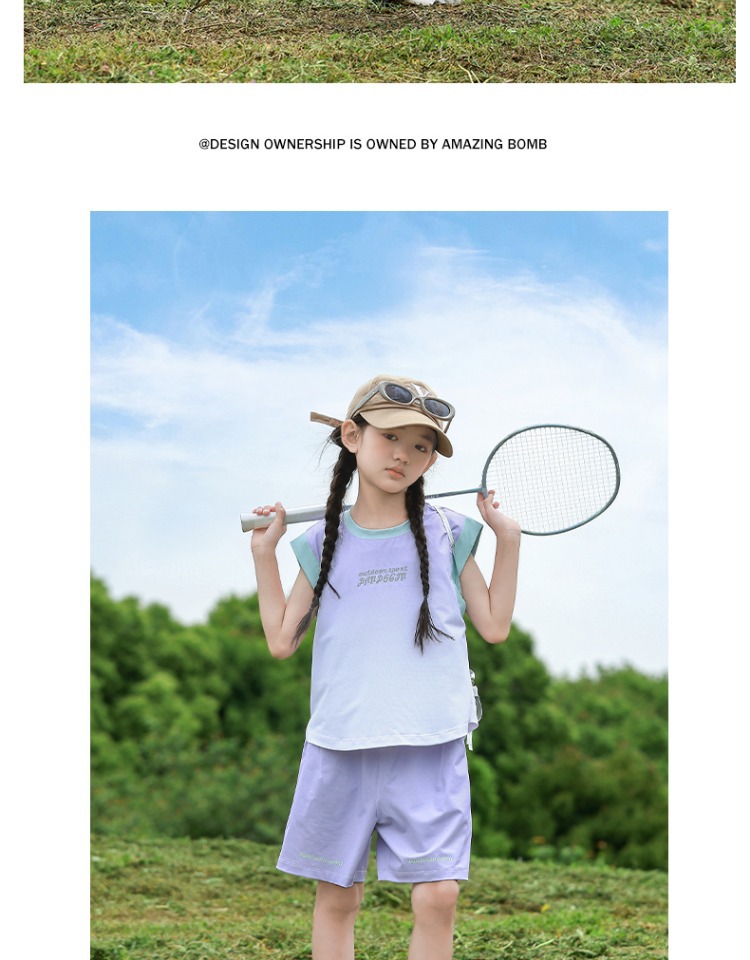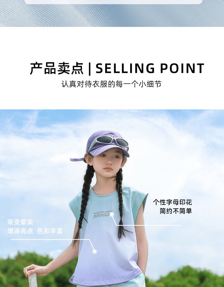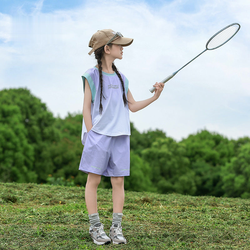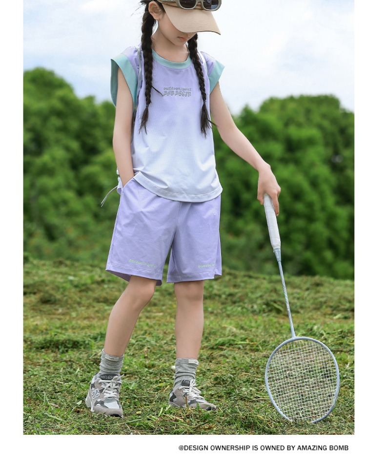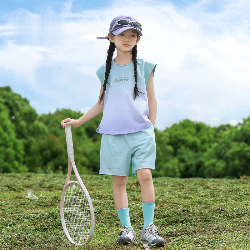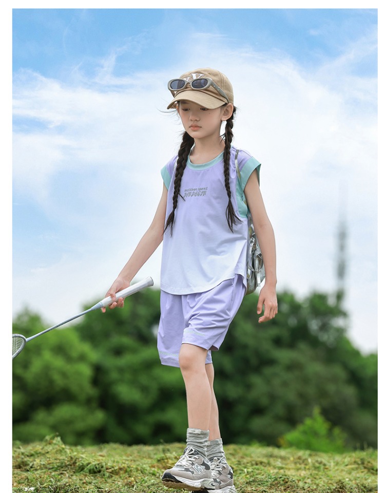 여아용 속건성 스포츠 조끼 세트, 여아용 패셔너블한 여름 옷, 중대형 아동용 여름 투피스 세트