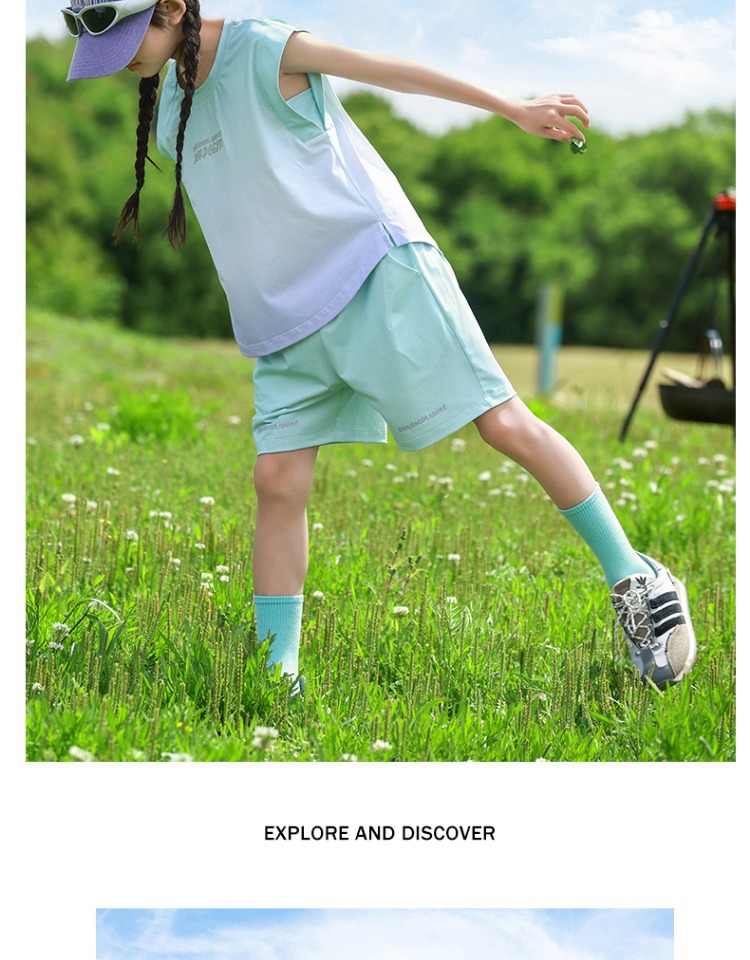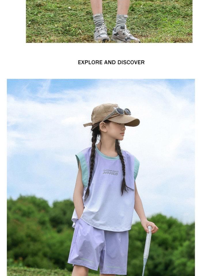 여아용 속건성 스포츠 조끼 세트, 여아용 패셔너블한 여름 옷, 중대형 아동용 여름 투피스 세트스토어 가기