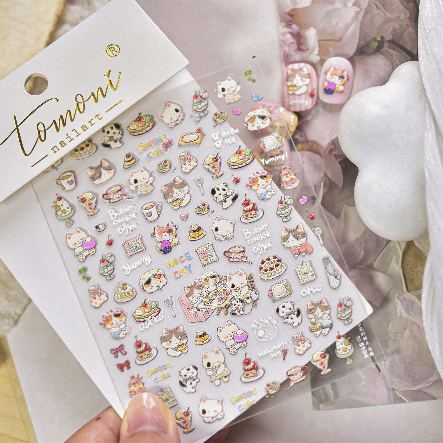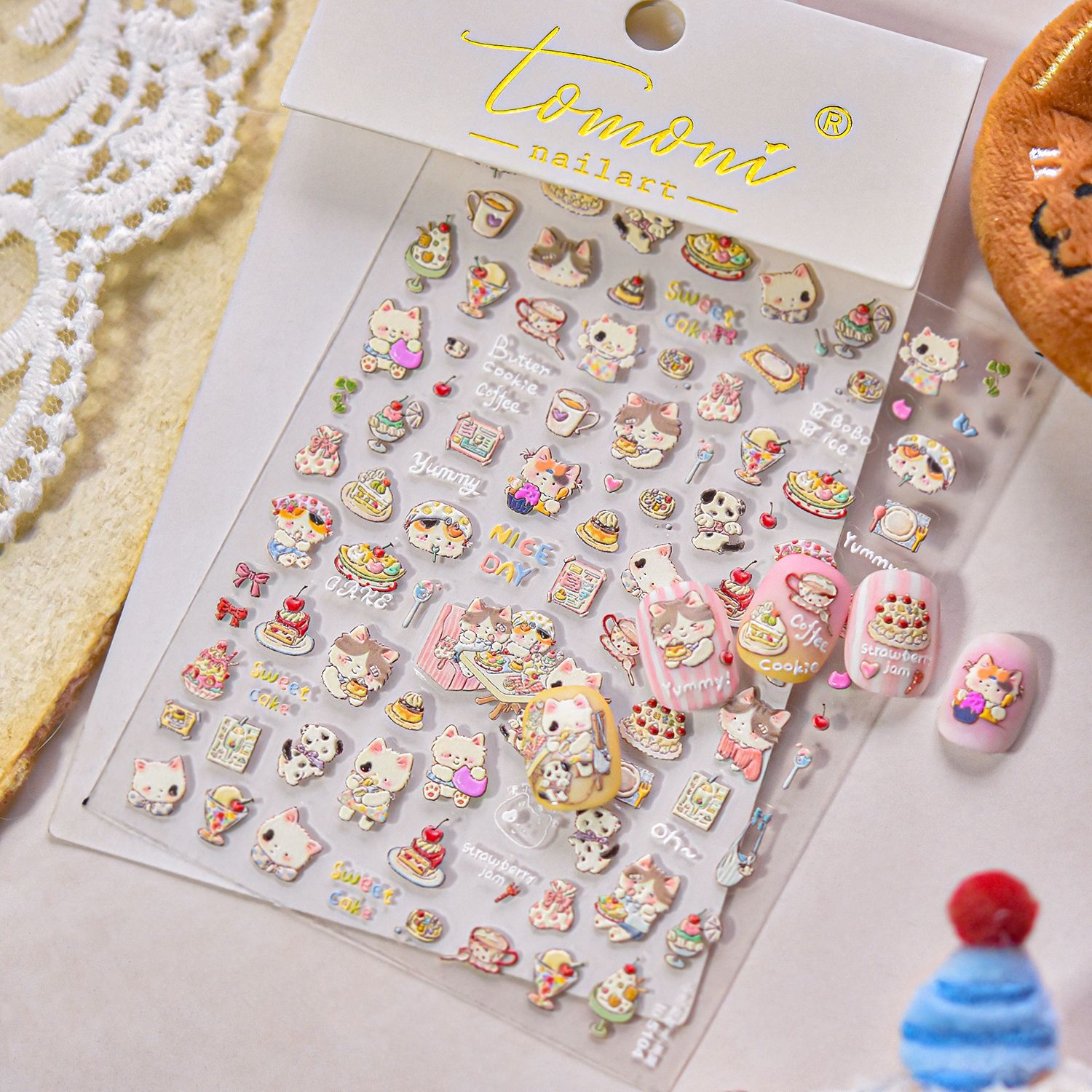 Tomoni 구호 네일 아트 스티커 Ins 폭발 달콤한 스타일 귀여운 네일 스티커 작은 꽃 디저트 쥬얼리 스티커