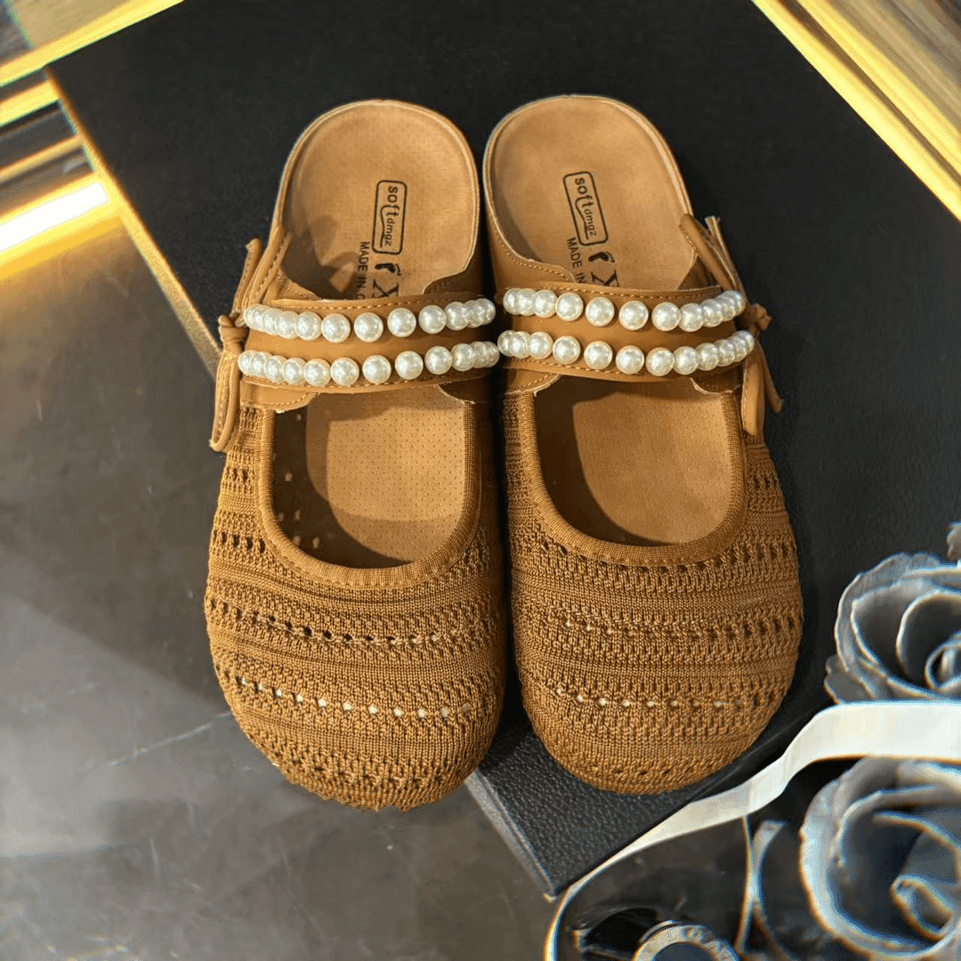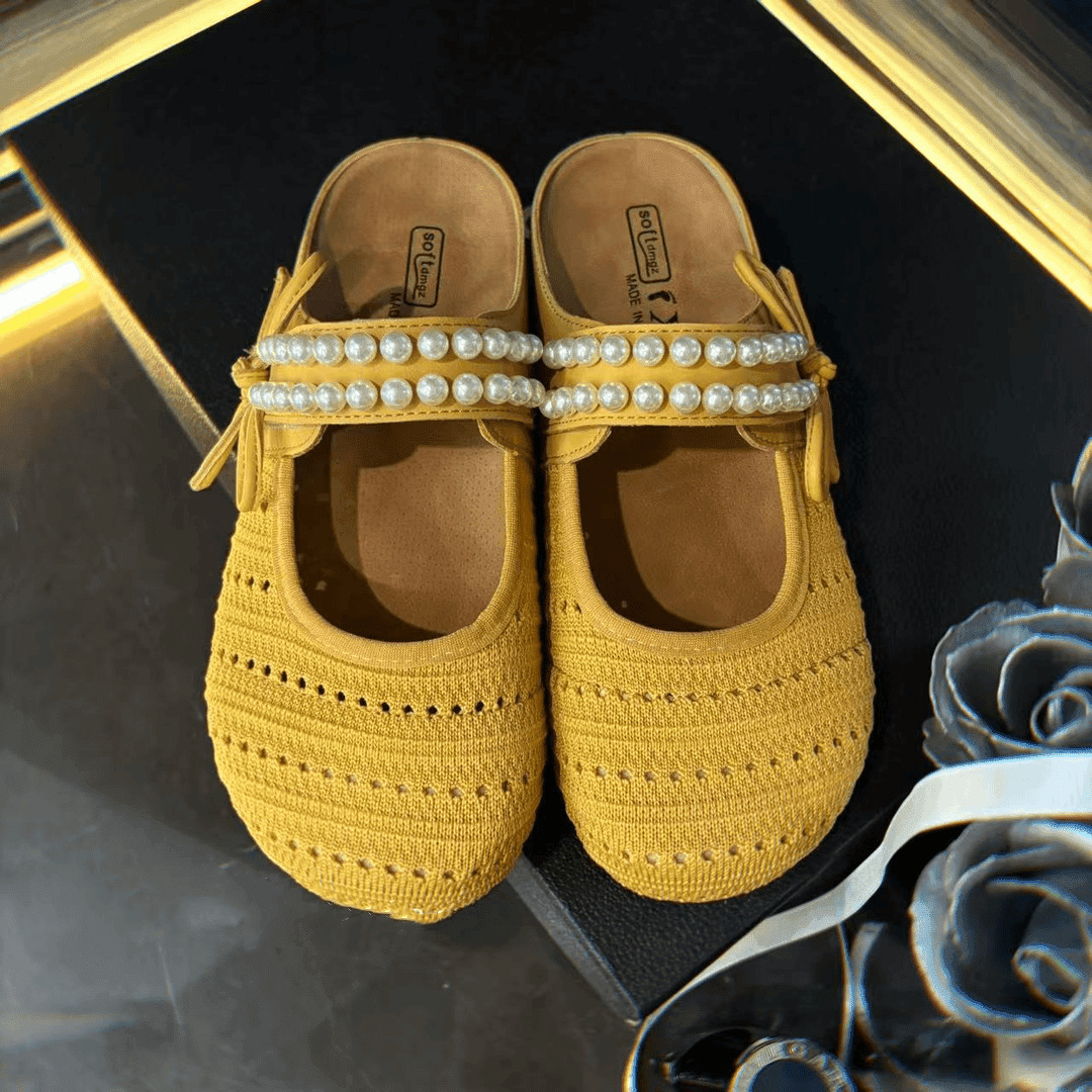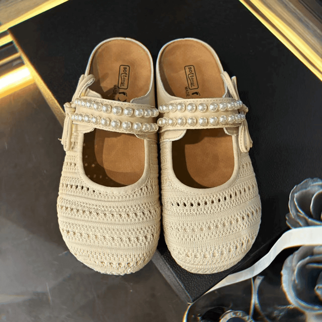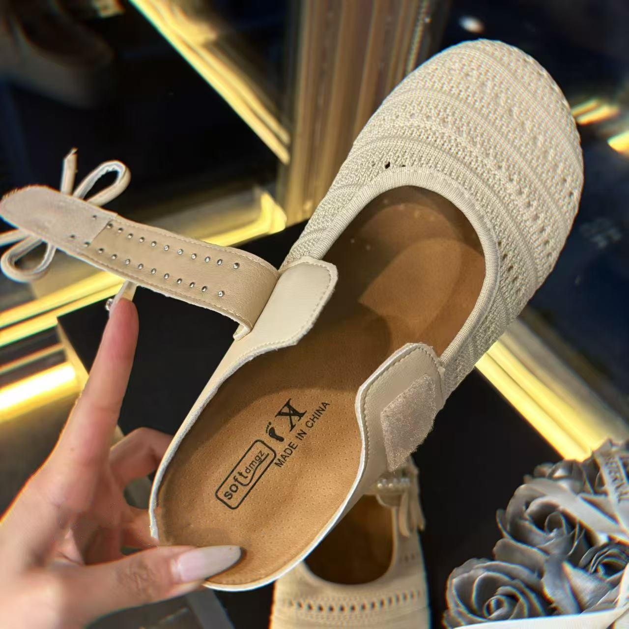 여름 아우터용 여성용 리본 진주 발가락 반슬리퍼, 스커트, 두꺼운 밑창, 패셔너블한 짠 게으른 샌들스토어 가기