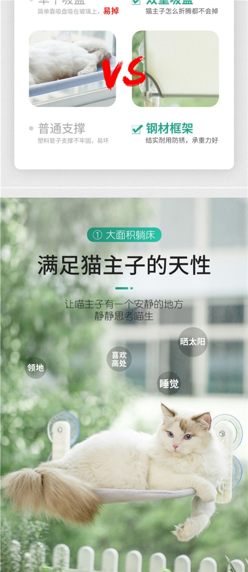 고양이 해먹, 고양이 랙, 창문 유리, 발코니, 공중에 매달린 흡입 컵, 걸이 둥지, 햇빛을 즐기는 고양이 용품