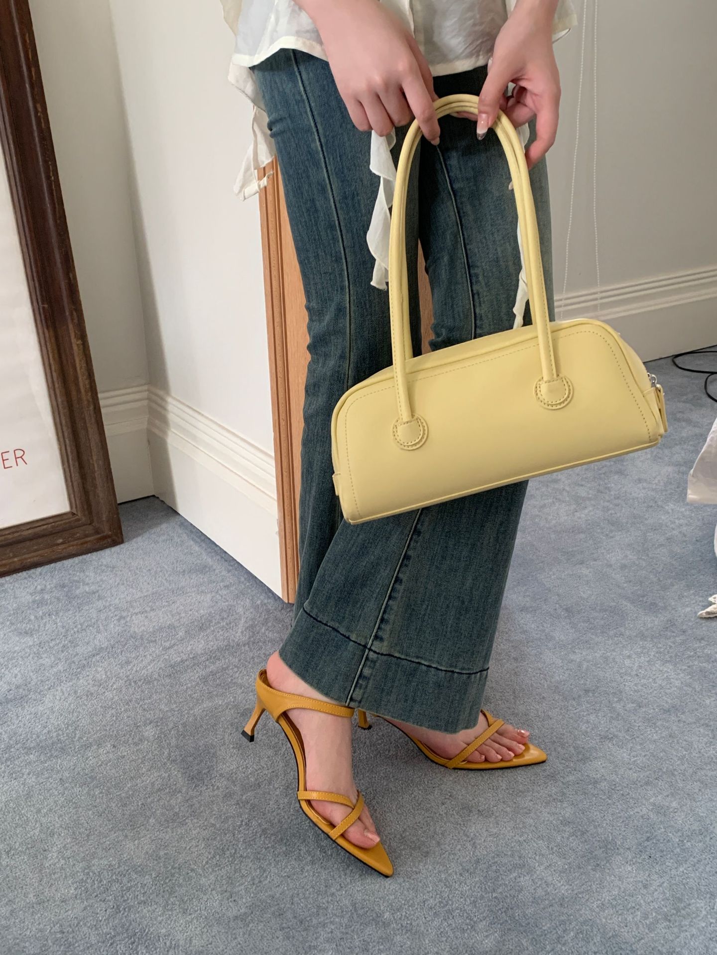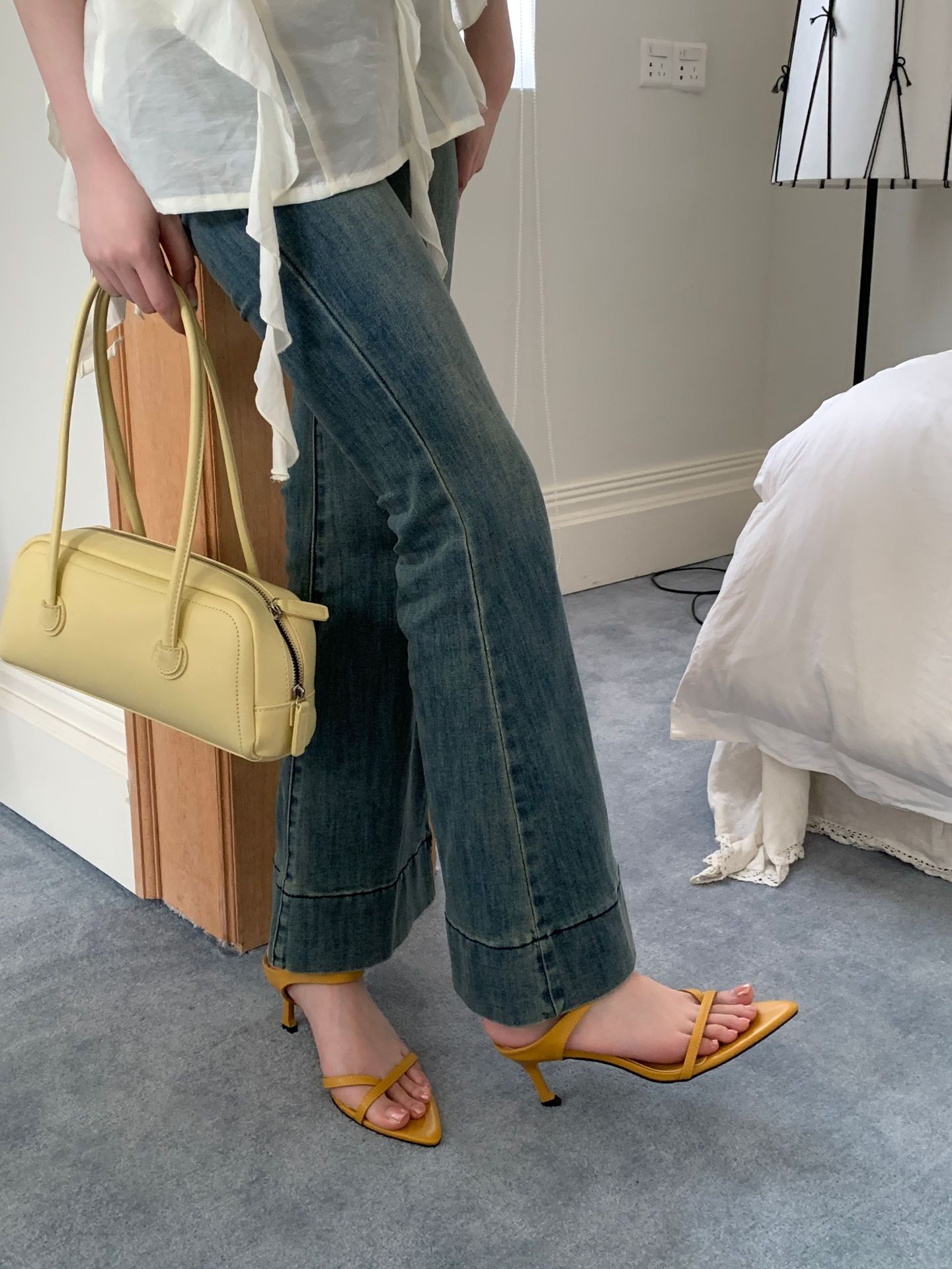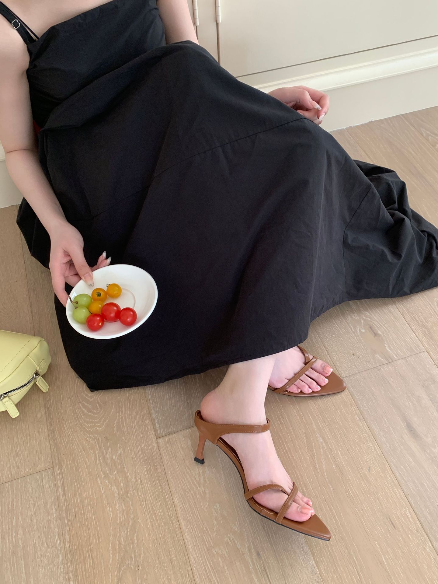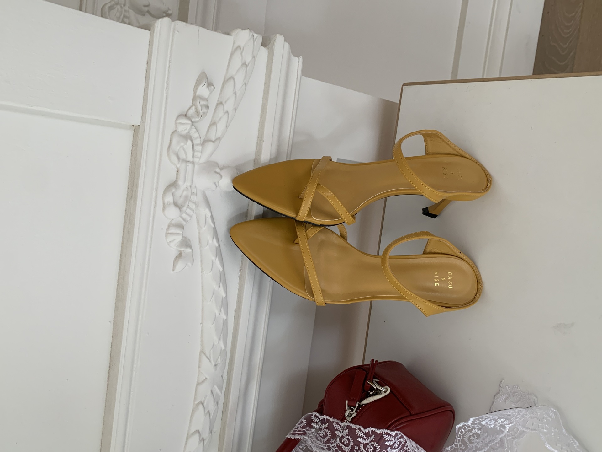 여성용 섹시한 연예인 스타일 샌들, 2025년 신형 슬립온 샌들, 오픈토 하프 슬리퍼, 노란색 하이힐스토어 가기