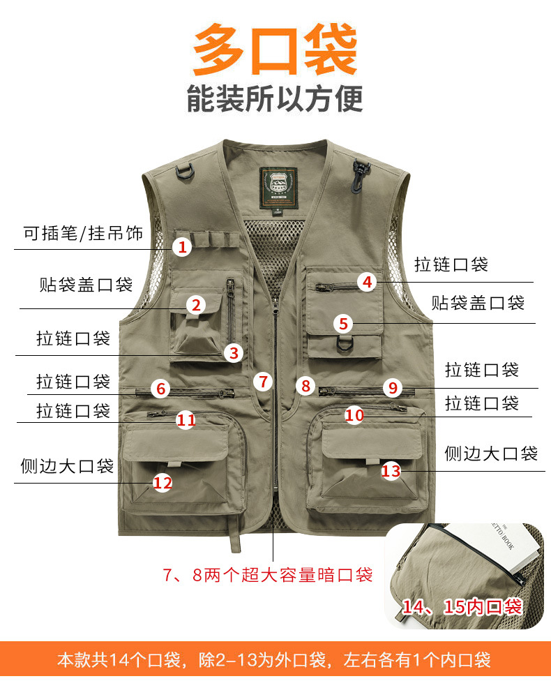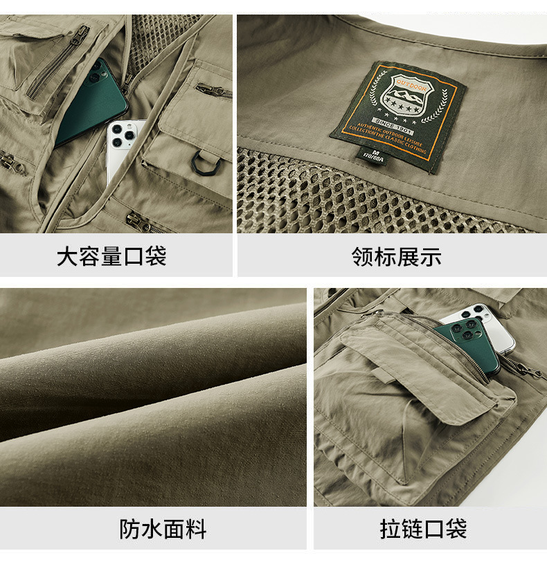 야외 남성용 멀티 포켓 조끼, 작업복 조끼, 등산 낚시 사진 조끼, 캐주얼 다기능 메쉬 통기성스토어 가기