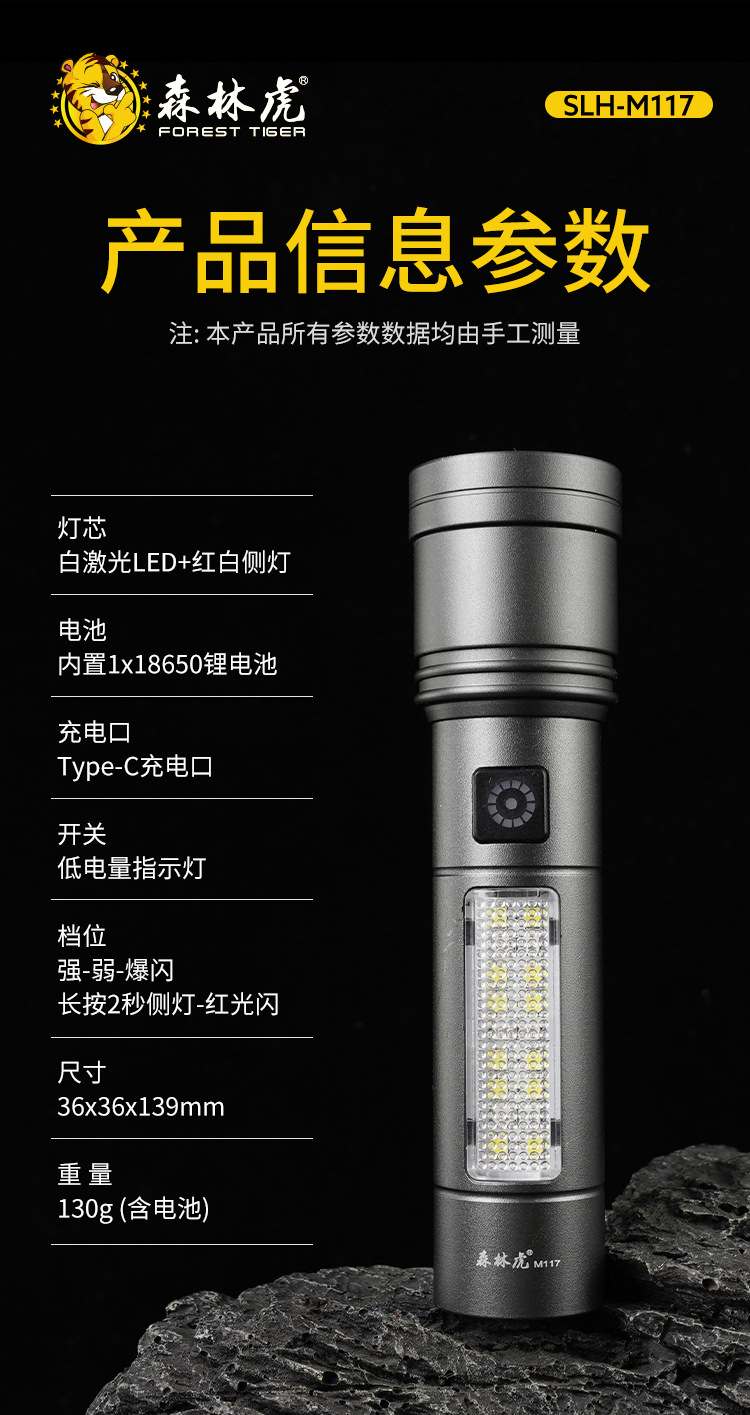 SLH-M117 레이저 총 텔레스코픽 다기능 하이라이트 화이트 레이저 장거리 Tpcy-c 리튬 배터리 핸드 램프스토어 가기