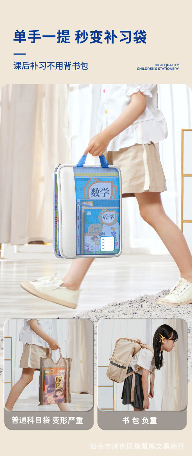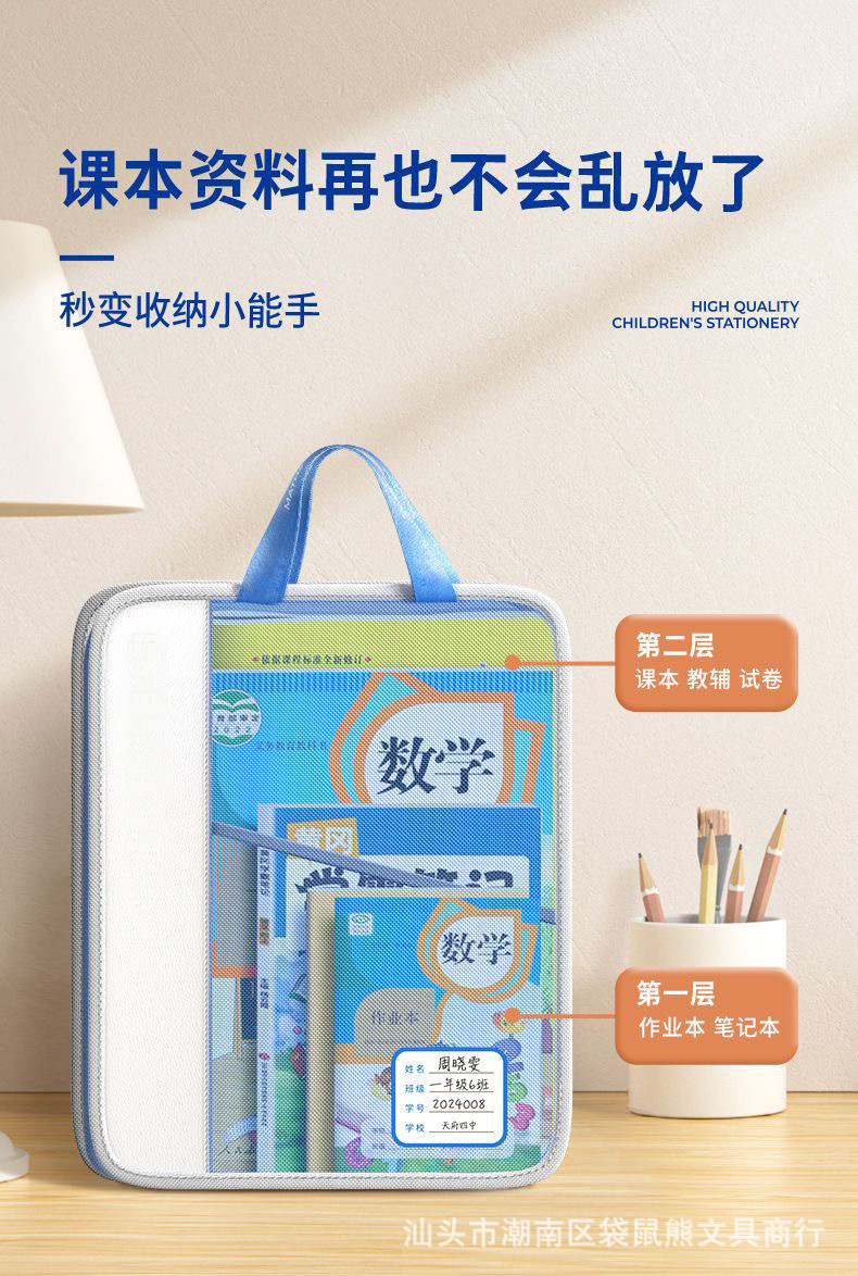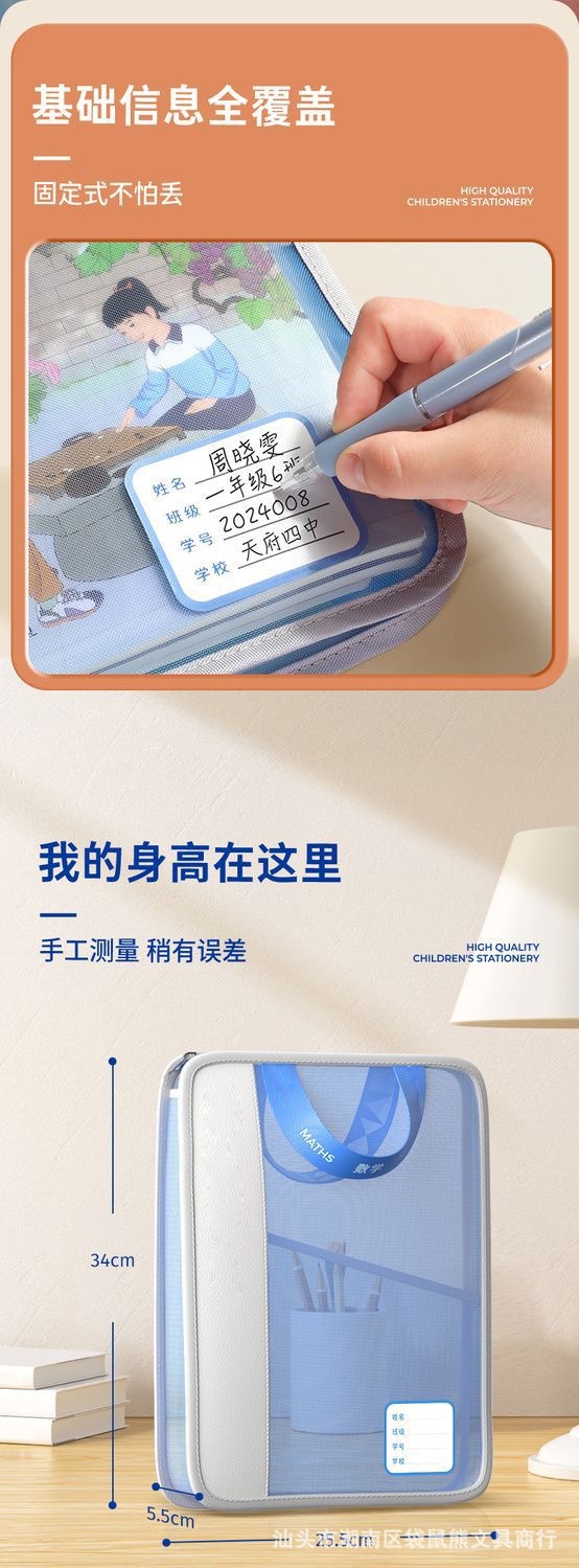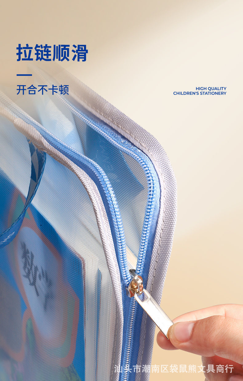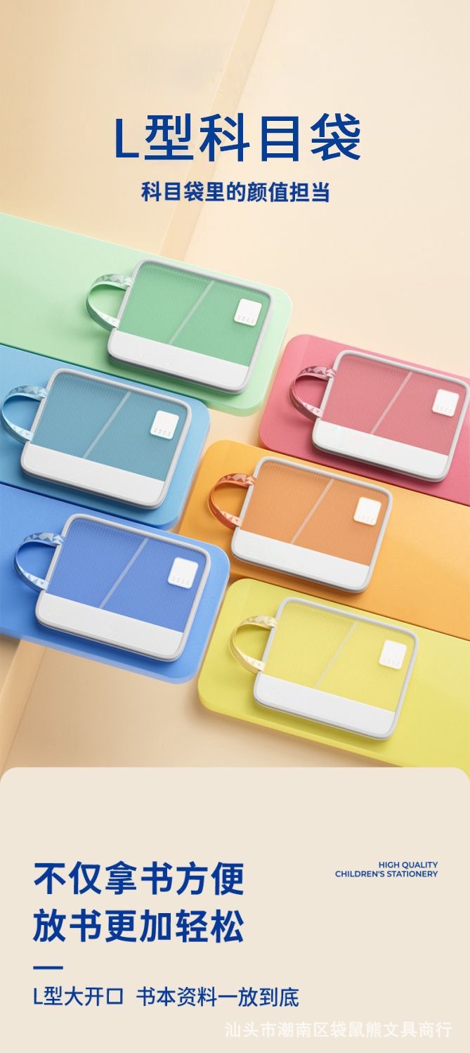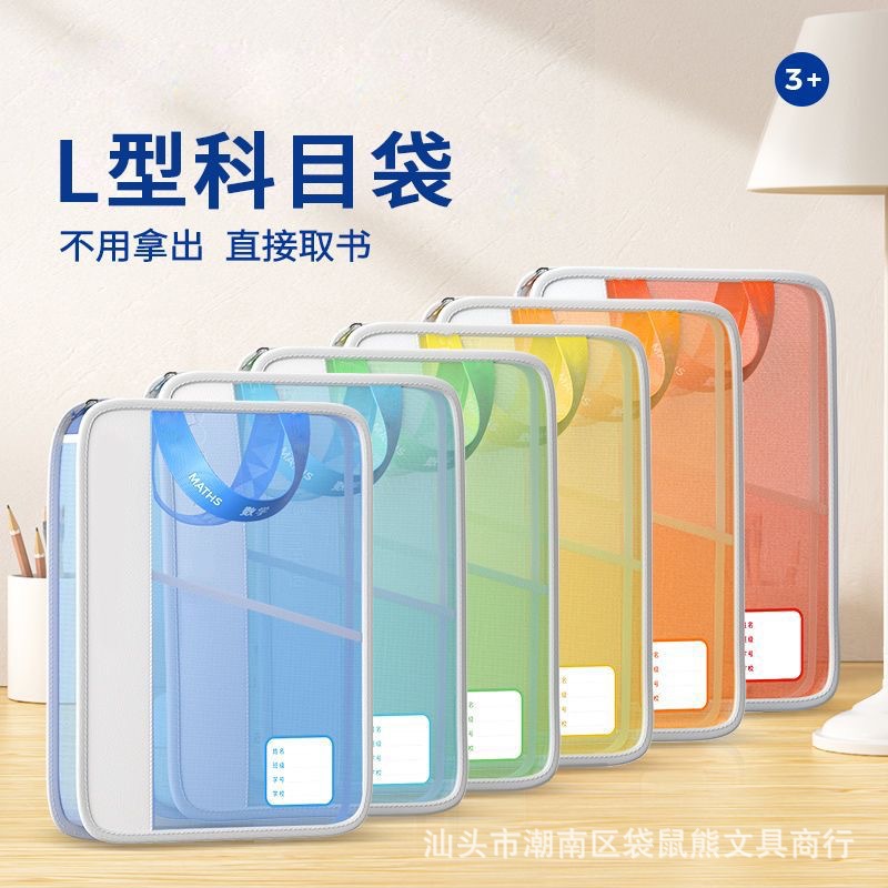 더블 휴대용 두꺼운 학생 L 자형 투명 파일 가방 메쉬 휴대용 책 가방 제목 분류 저장 가방스토어 가기
