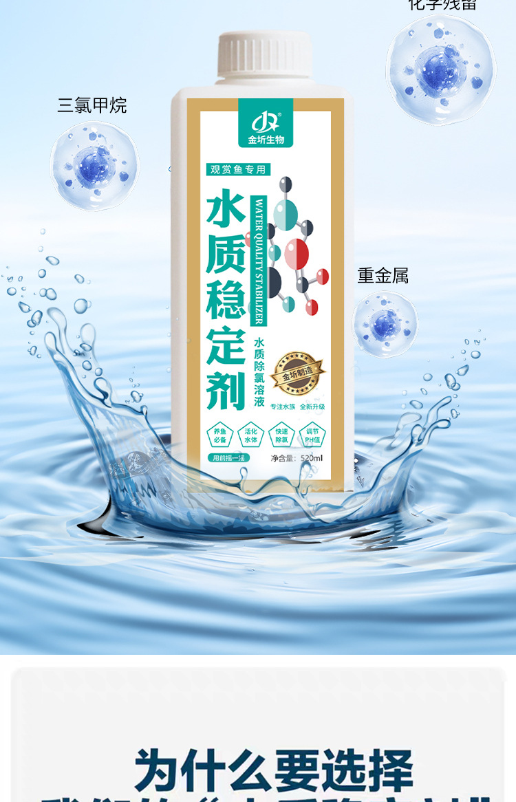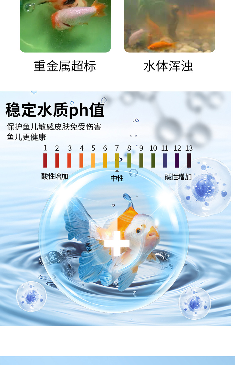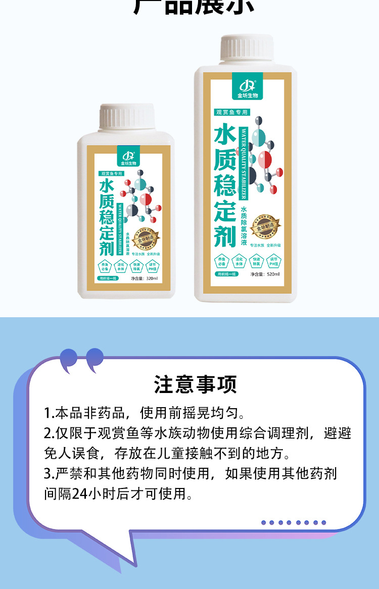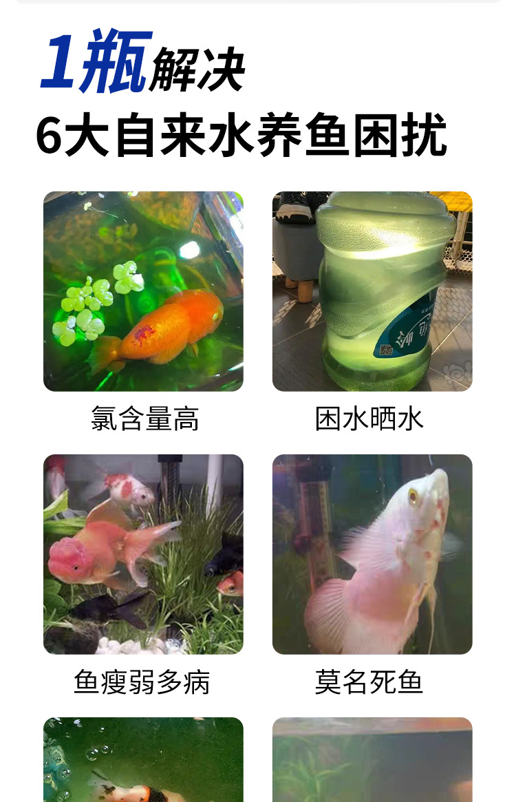 수질안정제, 수돗물의 빠른 염소제거, 물고기의 잠, 햇빛에 노출 방지, 수질관리 및 유지관리, 물고기 질병 및 냄새 방지