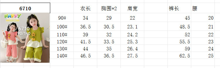 여자 여름 정장 2025 새로운 스타일 어린 소녀의 세련된 입체 꽃 플라잉 슬리브 레이스 탑과 바지 투피스 세트스토어 가기