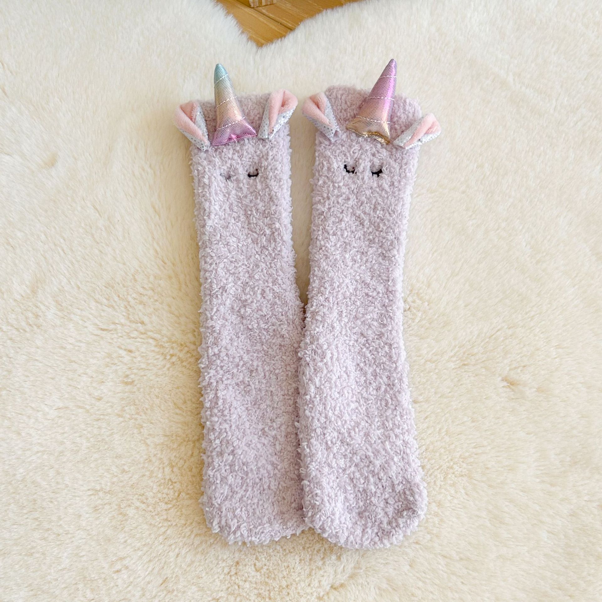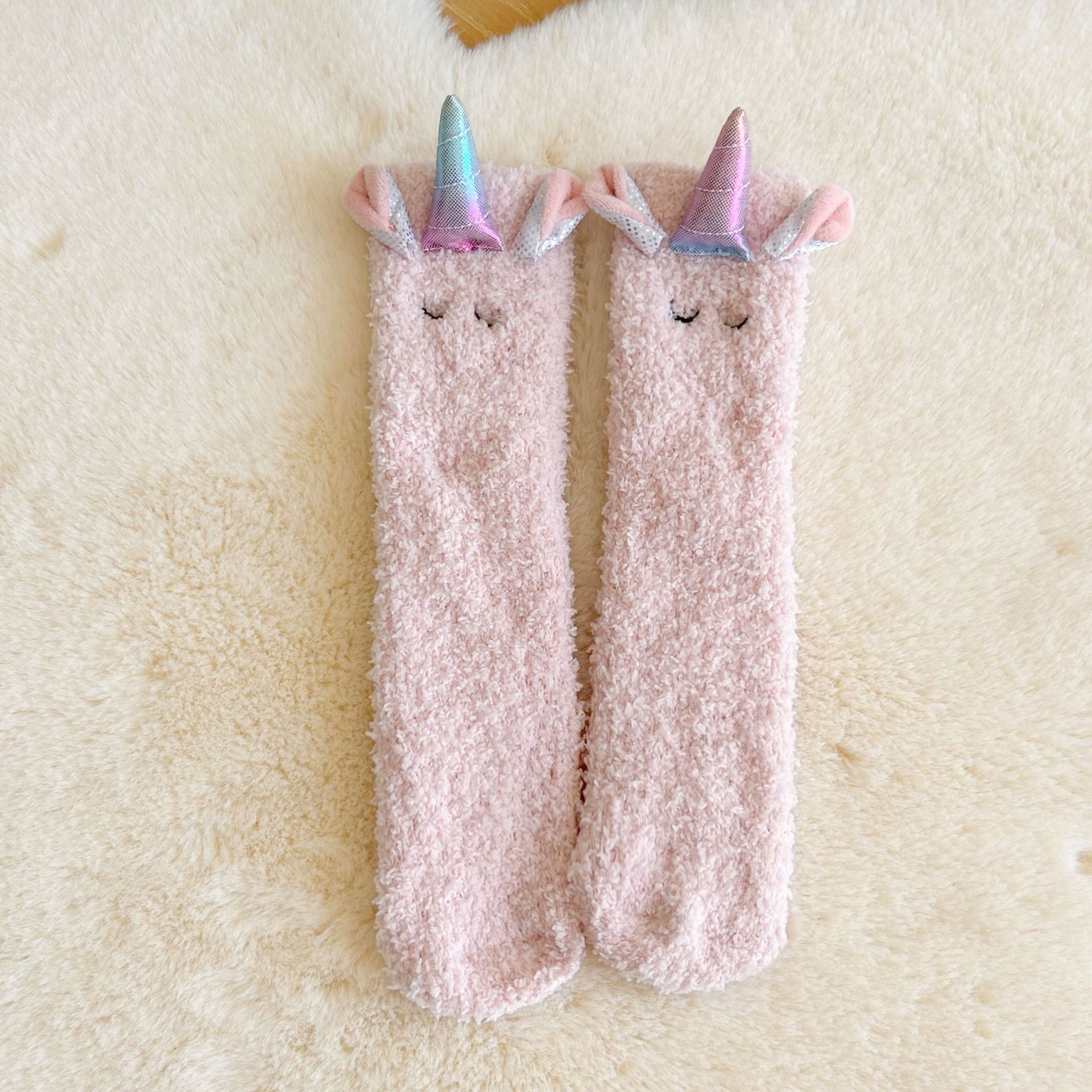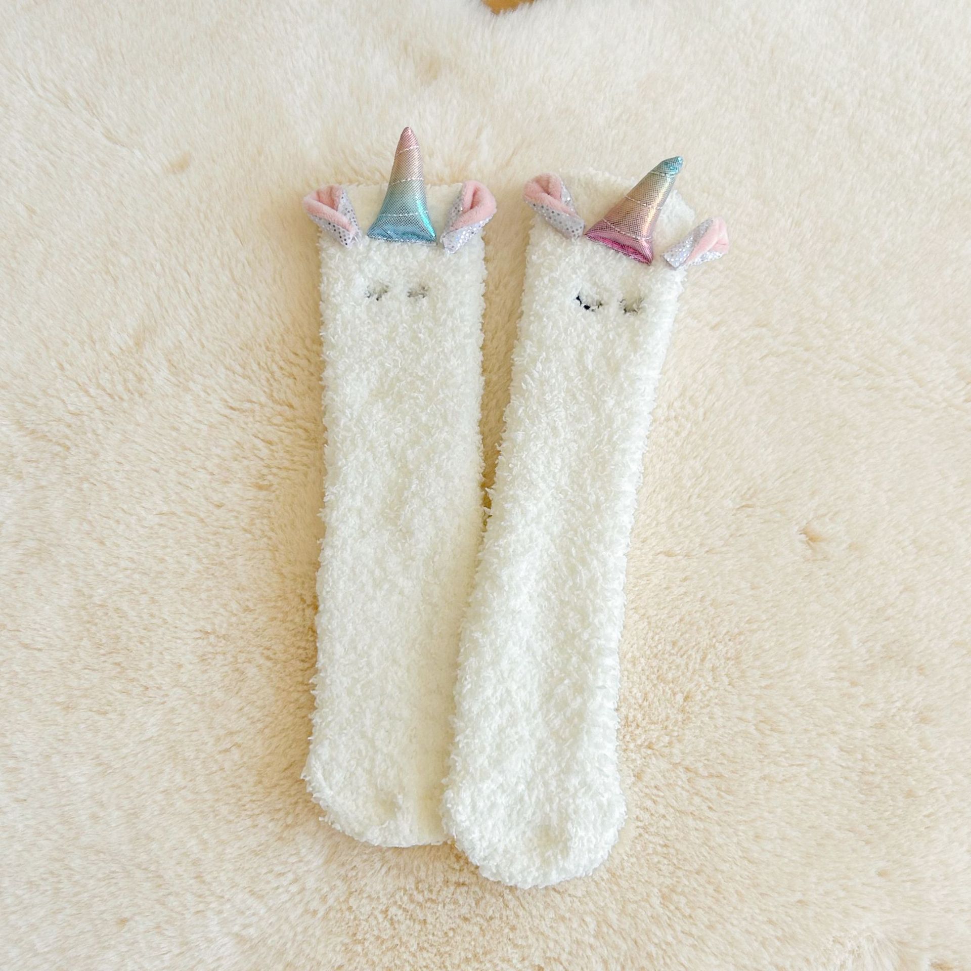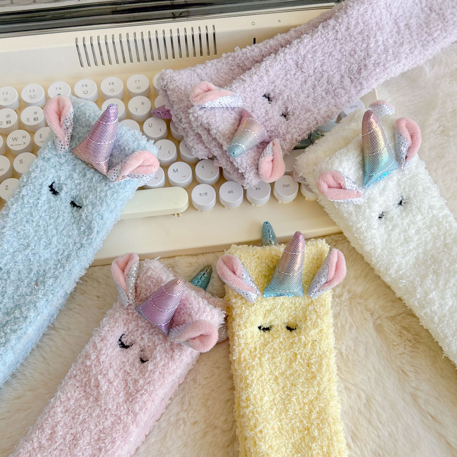 여자 양말 겨울 두꺼운 따뜻한 어린 소녀 아기 산호 양털 양말 수면 양말 유니콘 만화 귀여운스토어 가기