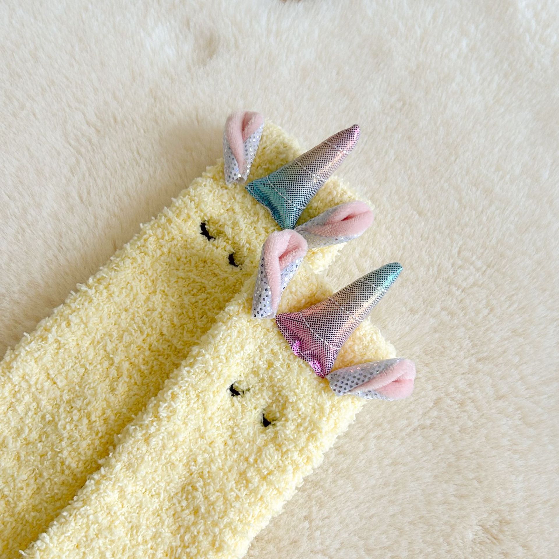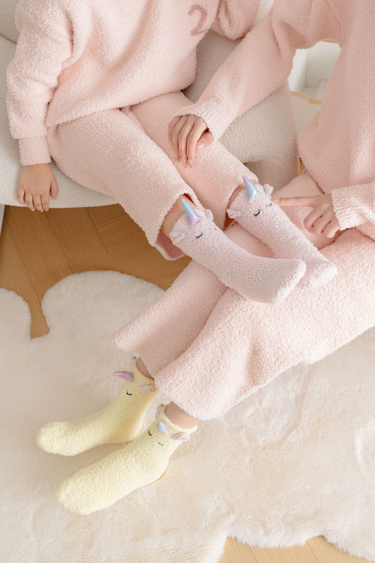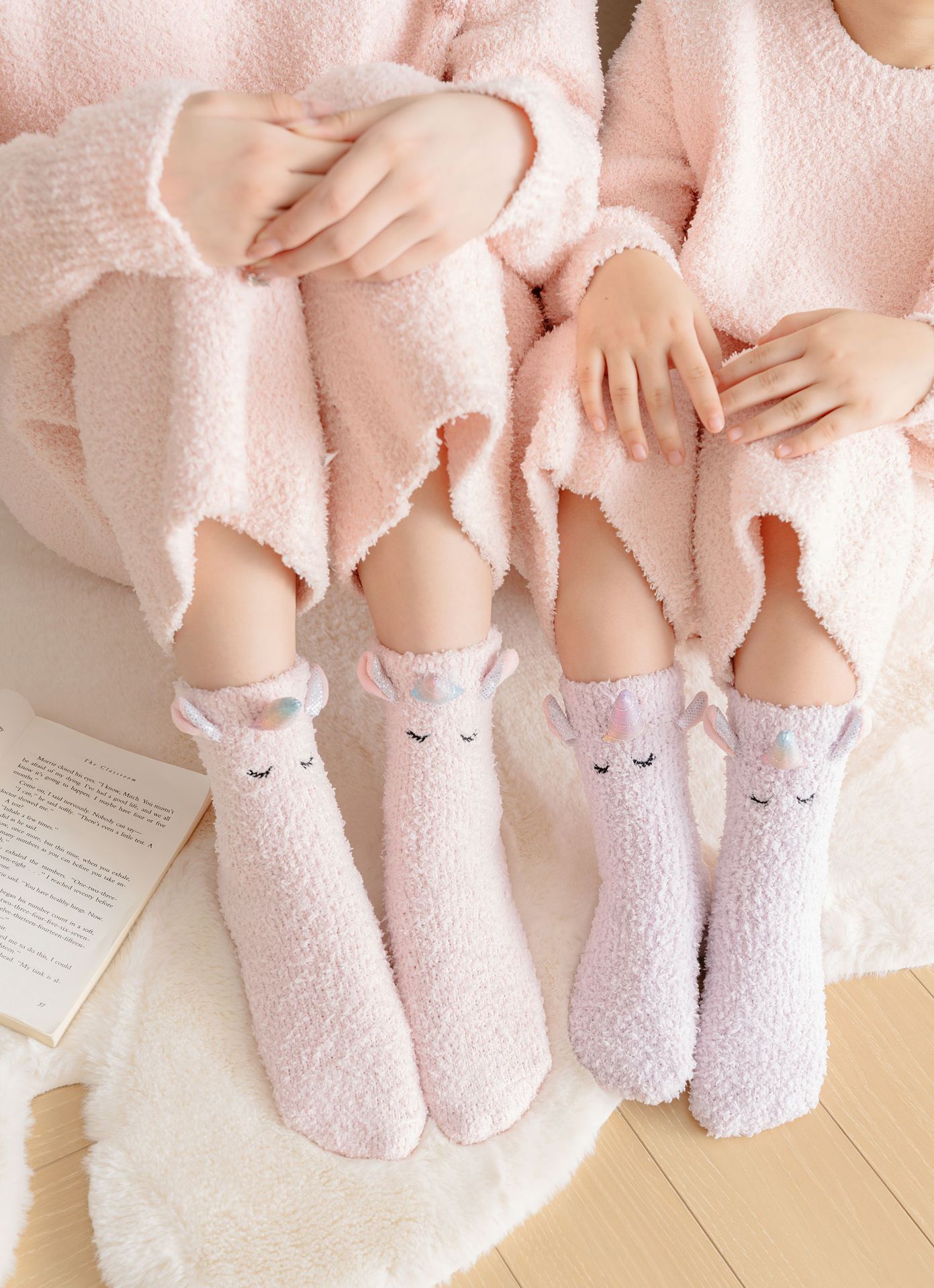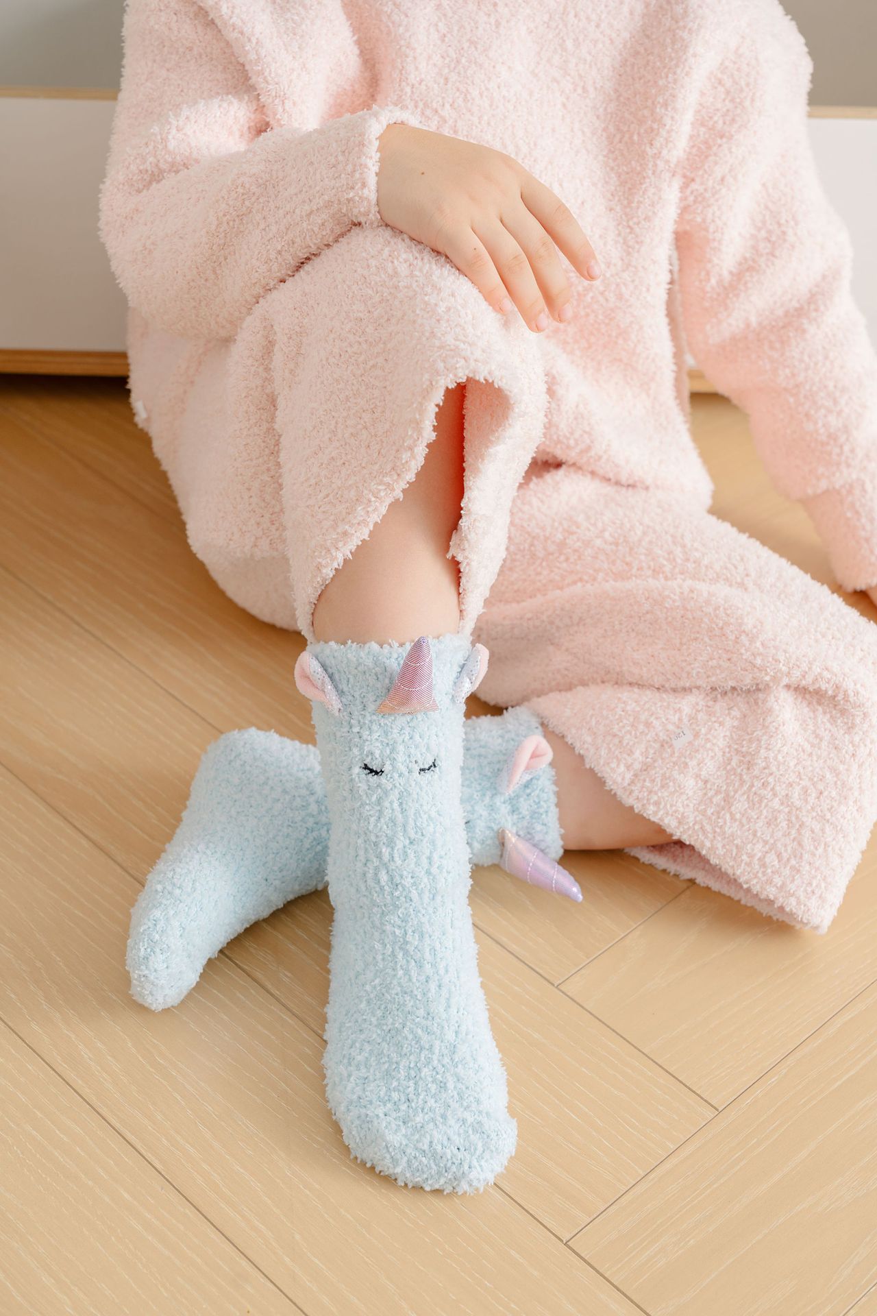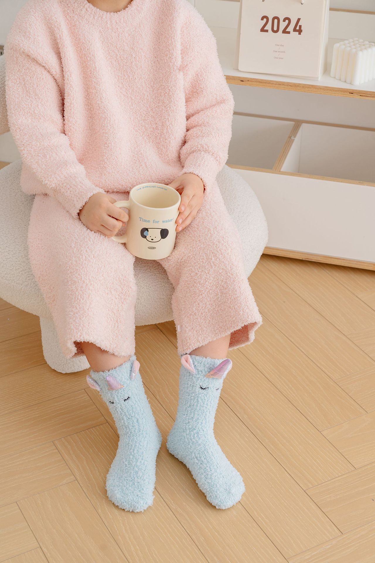 여자 양말 겨울 두꺼운 따뜻한 어린 소녀 아기 산호 양털 양말 수면 양말 유니콘 만화 귀여운스토어 가기