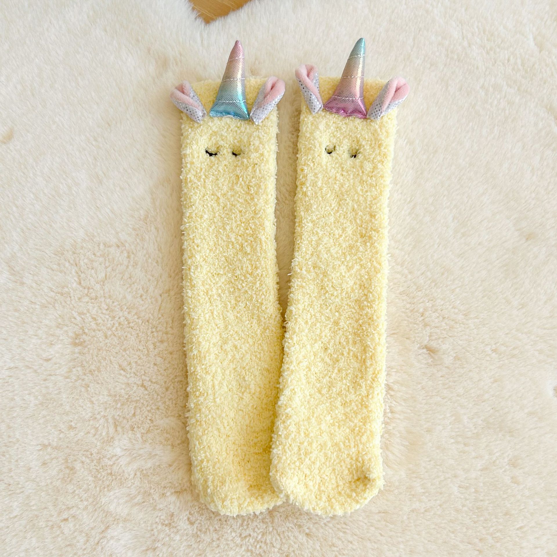 여자 양말 겨울 두꺼운 따뜻한 어린 소녀 아기 산호 양털 양말 수면 양말 유니콘 만화 귀여운