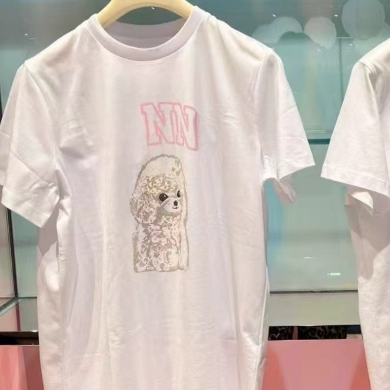 2025 여름 새로운 틈새 디자이너 페리그리노 프린트 라운드 넥 퓨어 코튼 루즈 반소매 티셔츠 여성용스토어 가기