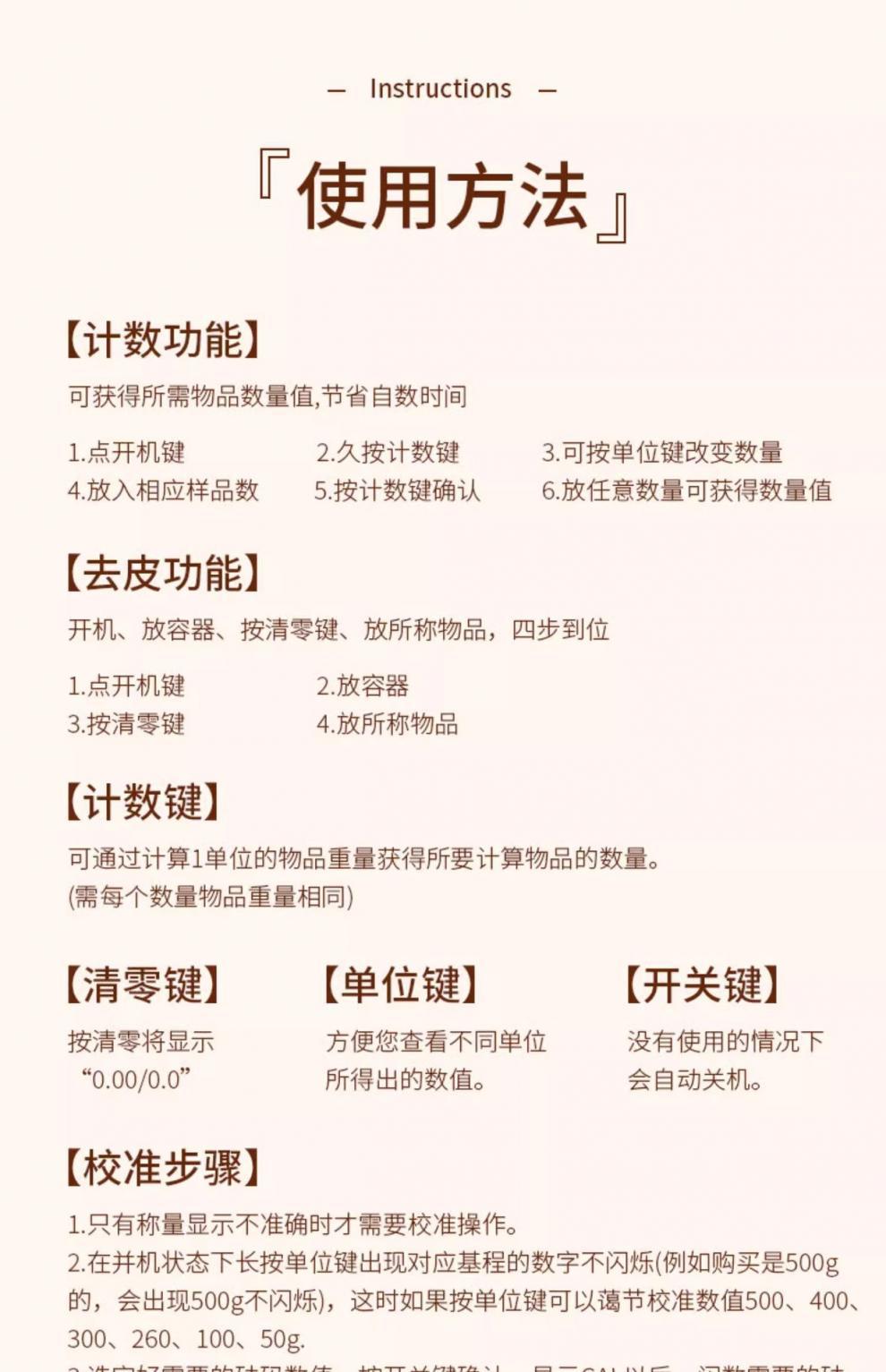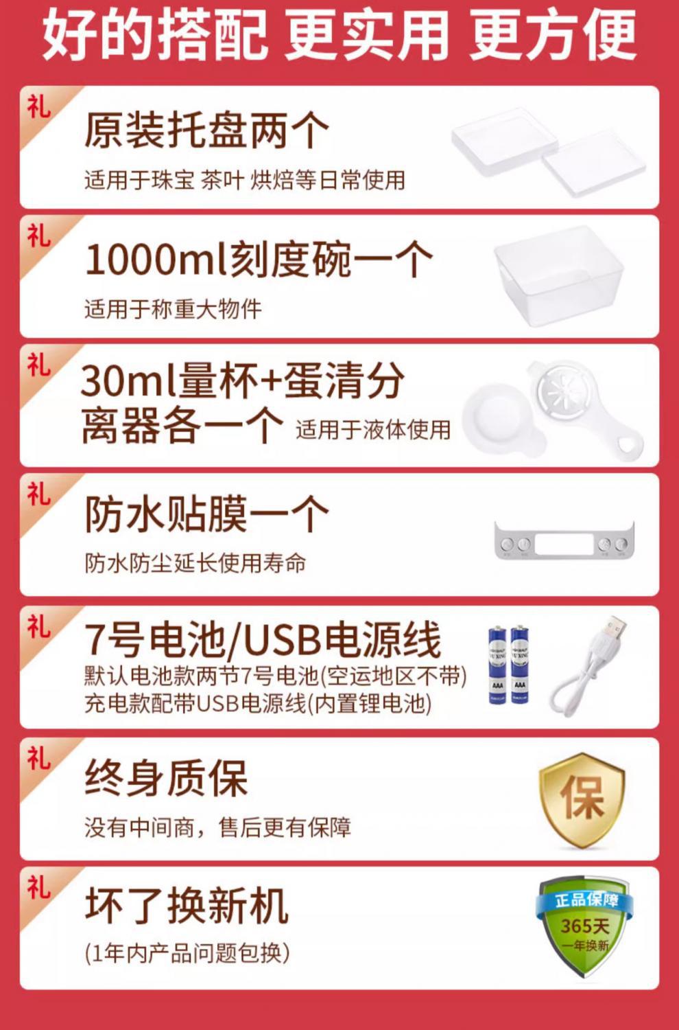 • 인기 판매 추천 충전 모델 3kg/0.1g에는 이중 트레이 + 충전 케이블 + 방수 스티커 7개가 함께 제공됩니다.