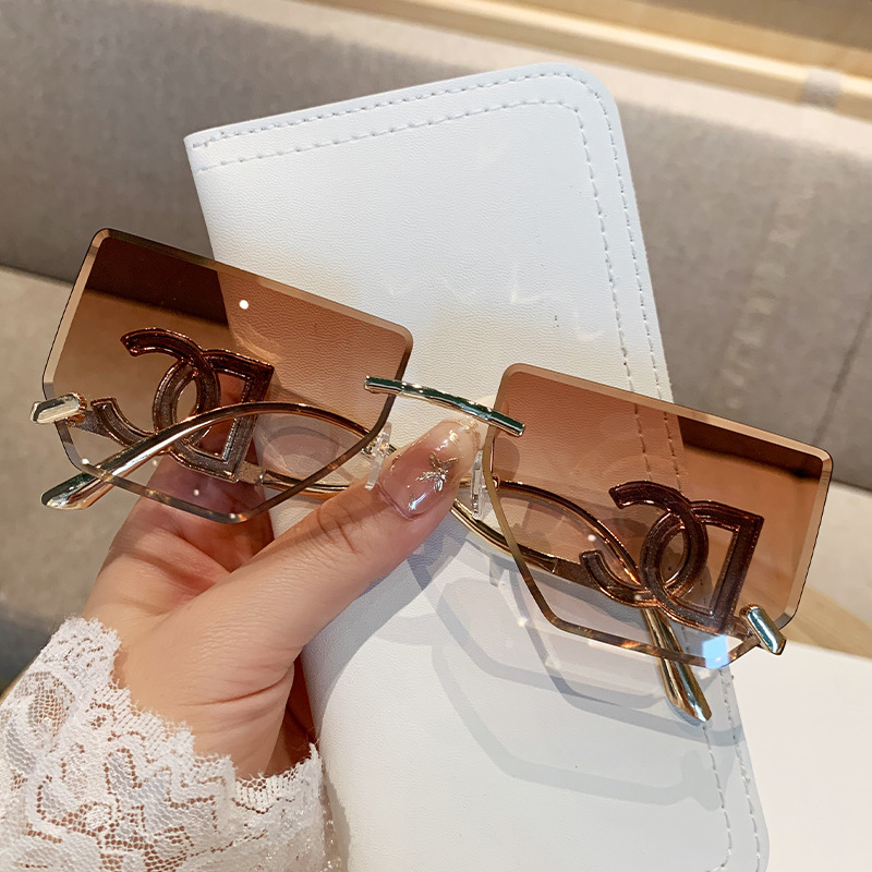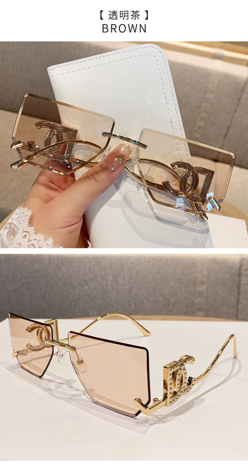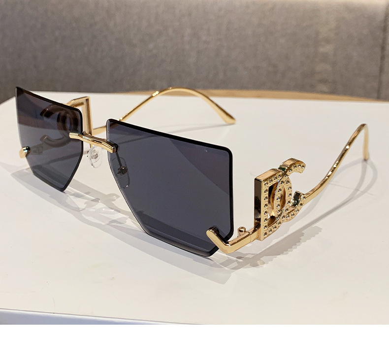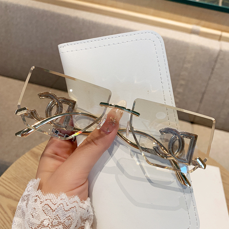 새로운 관대 한 프레임 선글라스 여성의 프레임리스 트리밍 선글라스 디자인 편지 금속 사원 대외 무역 핫 셀러 안경스토어 가기