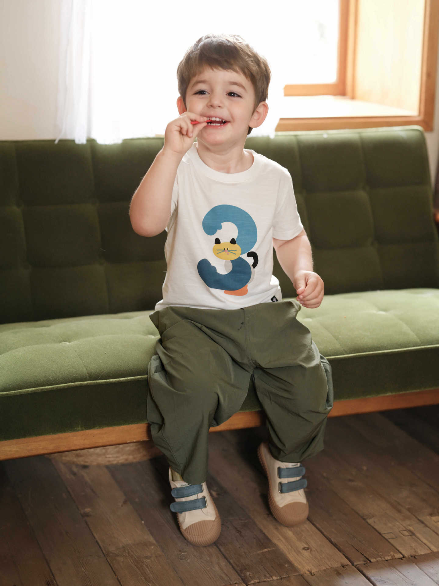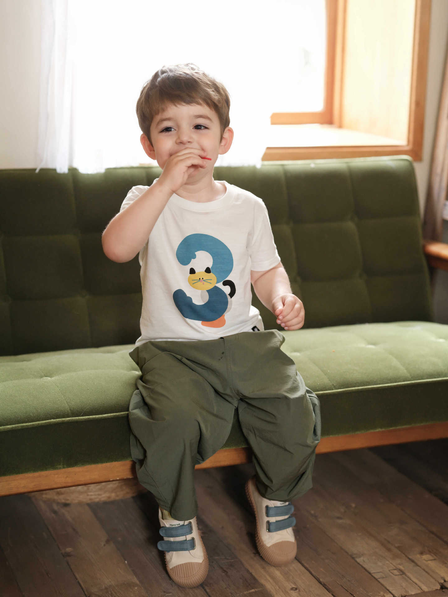 어린이 순면 첫 번째 생일 북유럽 스타일 프린트 반팔 티셔츠 여름 베이비 베이비 탑스토어 가기