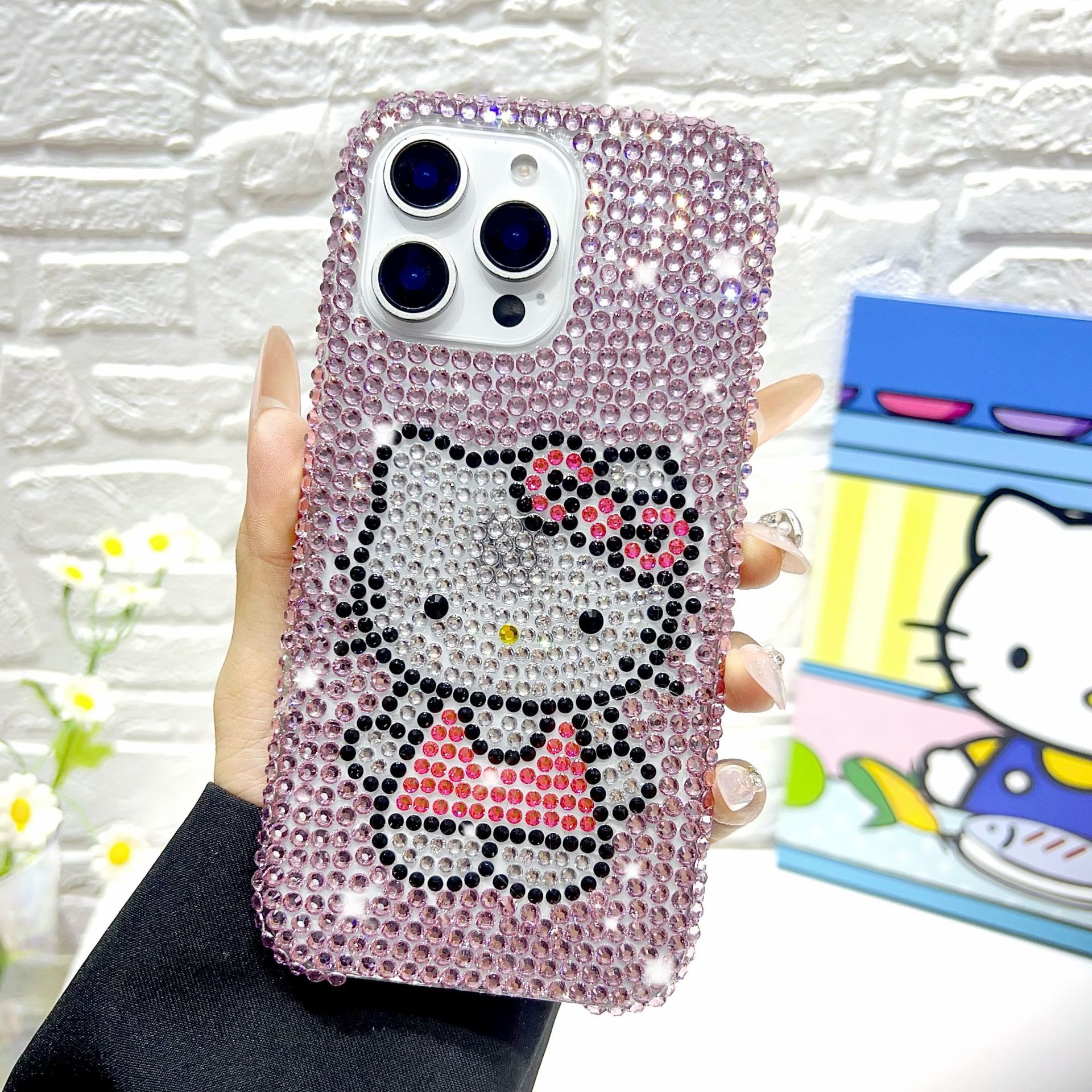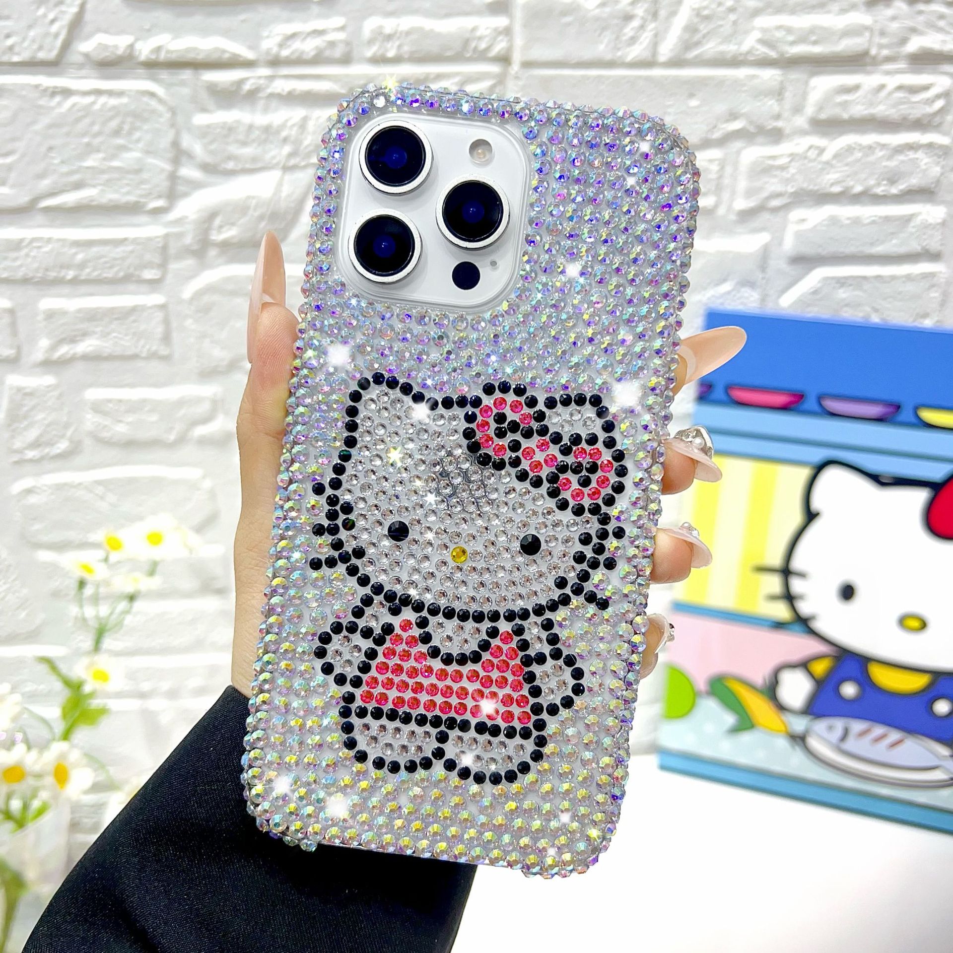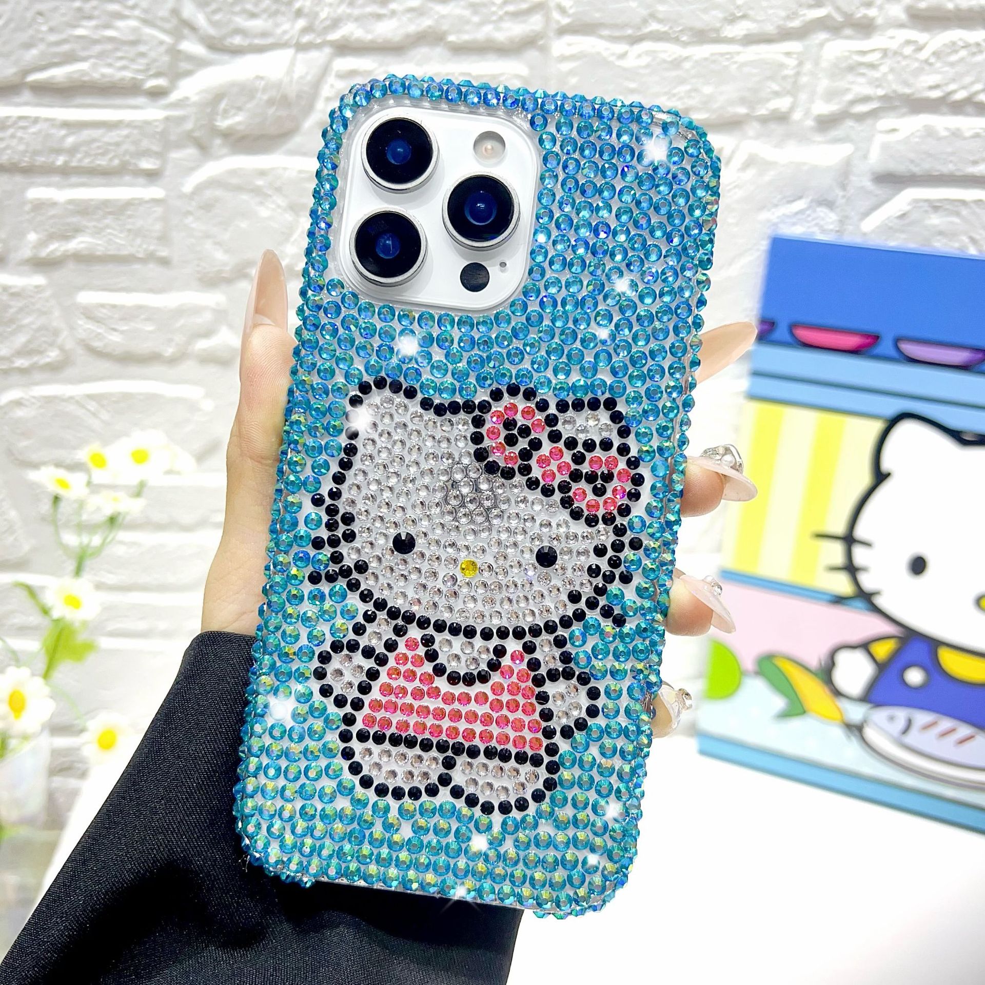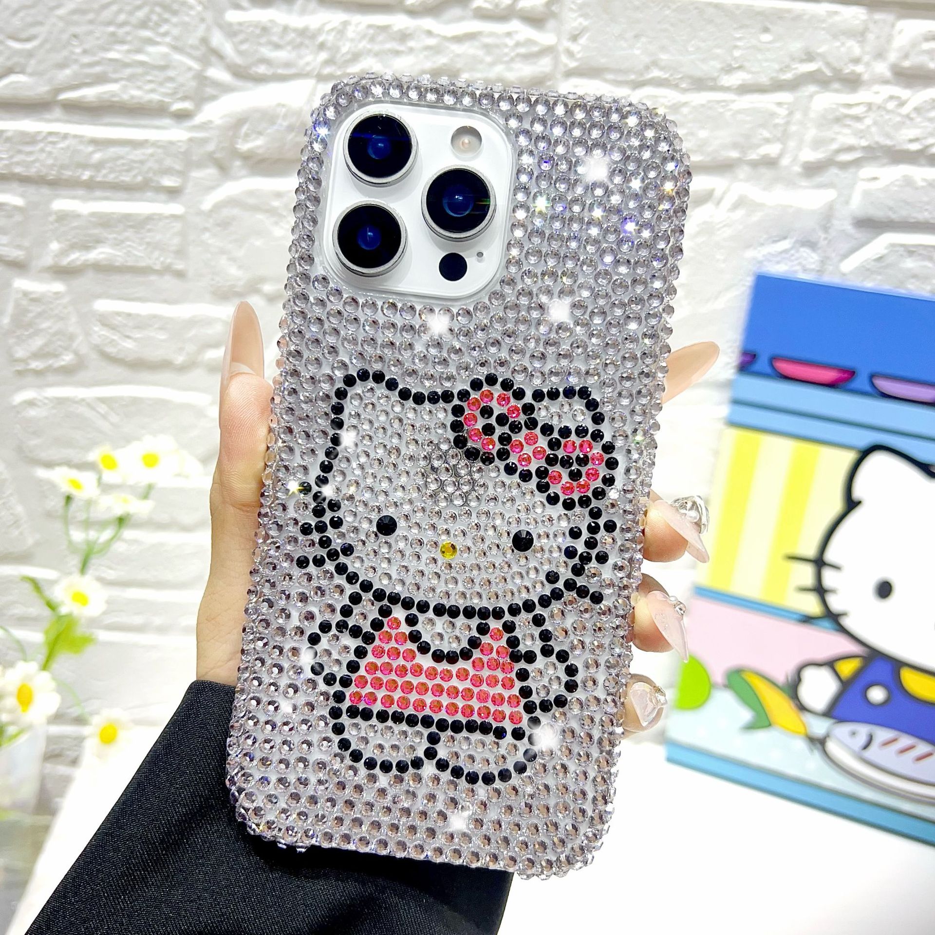 고급스러운 풀 다이아몬드 귀여운 만화 고양이 디자인, 애플 17프로맥스 휴대폰 케이스, 16 보호 케이스, 1513 소녀용