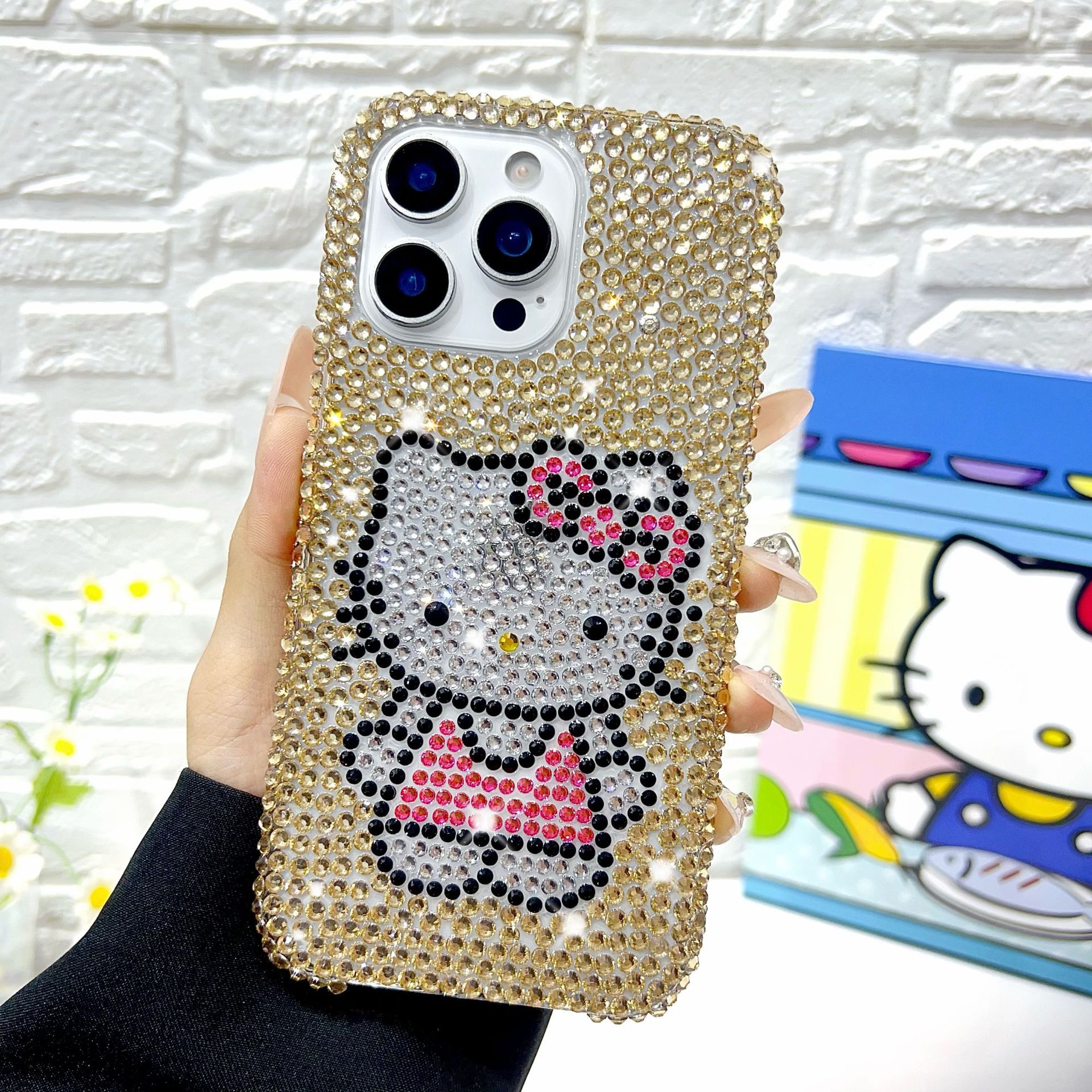 고급스러운 풀 다이아몬드 귀여운 만화 고양이 디자인, 애플 17프로맥스 휴대폰 케이스, 16 보호 케이스, 1513 소녀용스토어 가기